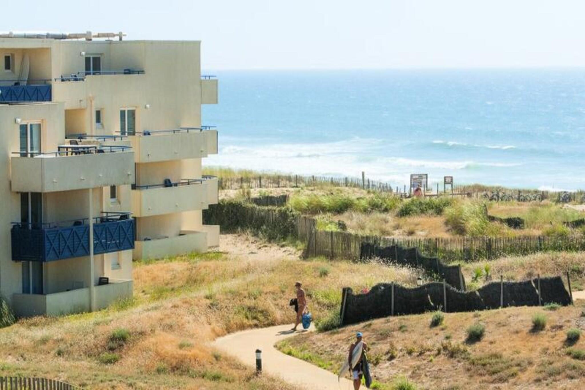 Denne lejlighed på 30 m² er bekvemt placeret ved Lacanau Bleu Marine-residensen, kun 300 meter fra Atlanterhavet. Gæsterne kan nyde forskellige aktiviteter i området, herunder tennis, ridning, sejlads, surfing og meget mere. Selve boligen har 3-etagers bygninger med elevatorer og balkoner i de fleste enheder, med udsigt over Atlanterhavskysten. Byen Lacanau Océan er tilgængelig til fods, selvom cykling er den foretrukne transportform. Mens der i øjeblikket er en del byggearbejder på ejendommen, er der gratis og sikker udendørs parkering til rådighed. Den kæledyrsvenlige lejlighed har en stue med en sovesofa og en udtræksseng, et soveværelse med en dobbeltseng, et badeværelse med badekar og separat toilet samt et køkkenområde, der er åbent til stuen. Den møblerede balkon omfatter et bord med 3 stole. Yderligere faciliteter (betales på stedet) inkluderer et babysæt (35 EURO for barneseng, klapvogn, bad eller høj stol), sengetøj, håndklæder og slutrengøring. Boligen tilbyder også en uopvarmet swimmingpool med en lille børnepool (åben medio juni til medio september). Tv tilgængelighed varierer afhængigt af lejligheden.