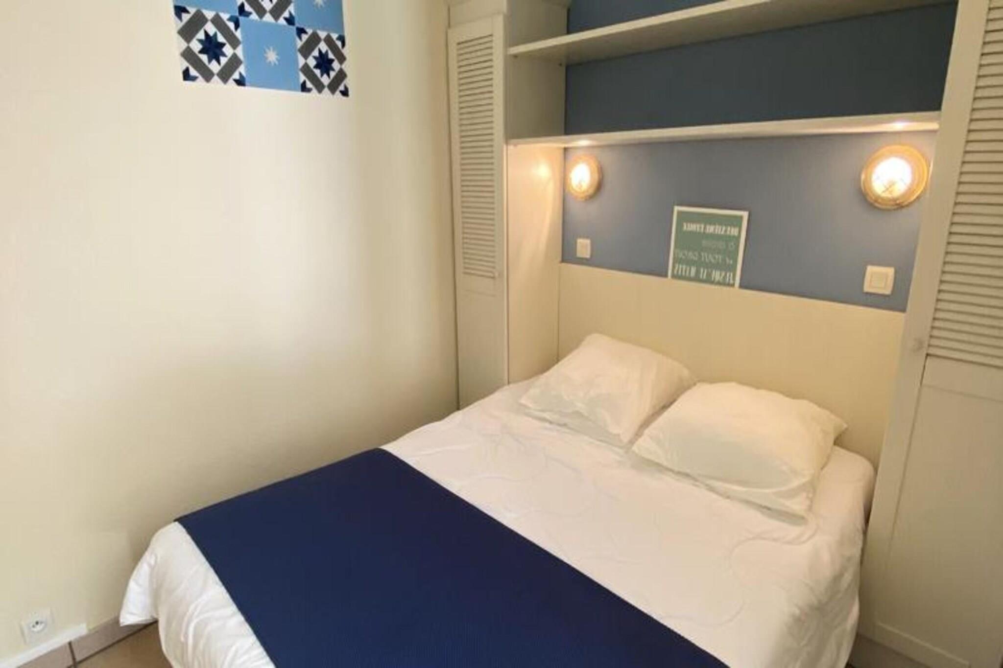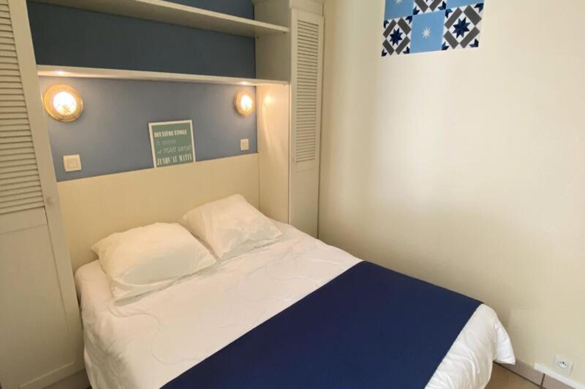 Beliggende kun 300 meter fra Atlanterhavet tilbyder denne indbydende badelejlighed et ideelt tilflugtssted for op til fire gæster. Indkvarteringen omfatter en hyggelig opholdsstue med en udtræksseng, et komfortabelt soveværelse med en dobbeltseng og et halvåbent køkken perfekt til at tilberede hurtige måltider. Gæsterne kan nyde den friske havbrise fra den sydvendte balkon. Ejendommen har gratis og sikker udendørs parkering, og kæledyr er velkomne i udvalgte indkvarteringer efter forudgående aftale. Bemærk venligst, at nogle enheder kan opleve mindre stilladsarbejde under dit ophold. Ejendommen er perfekt placeret nær det pulserende centrum af Lacanau Océan og tilbyder direkte adgang til stranden og er i gåafstand fra lokale attraktioner, herunder butikker, restauranter og aktivitetscentre. For en afslappet dag ude kan du udforske de nærliggende cykelstier eller nyde vandsport såsom surfing og sejlads. Tennisbaner og ridefaciliteter er også placeret i nærheden, hvilket sikrer, at der er noget for enhver type rejsende. Lejligheden er designet til komfort og bekvemmelighed, og byder på et velholdt køkken udstyret til tilberedning af lettere måltider, et lyst badeværelse med badekar og separat toilet. Yderligere faciliteter inkluderer adgang til boligens swimmingpool, åben fra midten af ??juni til midten af ??september, og muligheden for at leje et babysæt eller ekstra sengetøj. Med sin bekvemme beliggenhed og tankevækkende faciliteter lover denne ejendom en dejlig kystferie.