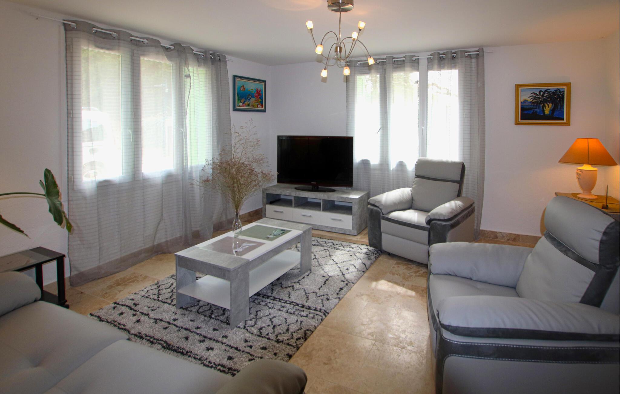 Beliggende i et grønt parklandskab byder dette provencalske naturstenshus jer velkommen, hvor I kan nyde en harmonisk pause med familien. Føl jer hjemme, mens I tilbereder lækre retter i det rummelige køkken, nyder hyggelige måltider ved det indbydende spisebord og streamer en film om aftenen i den hyggelige stue.