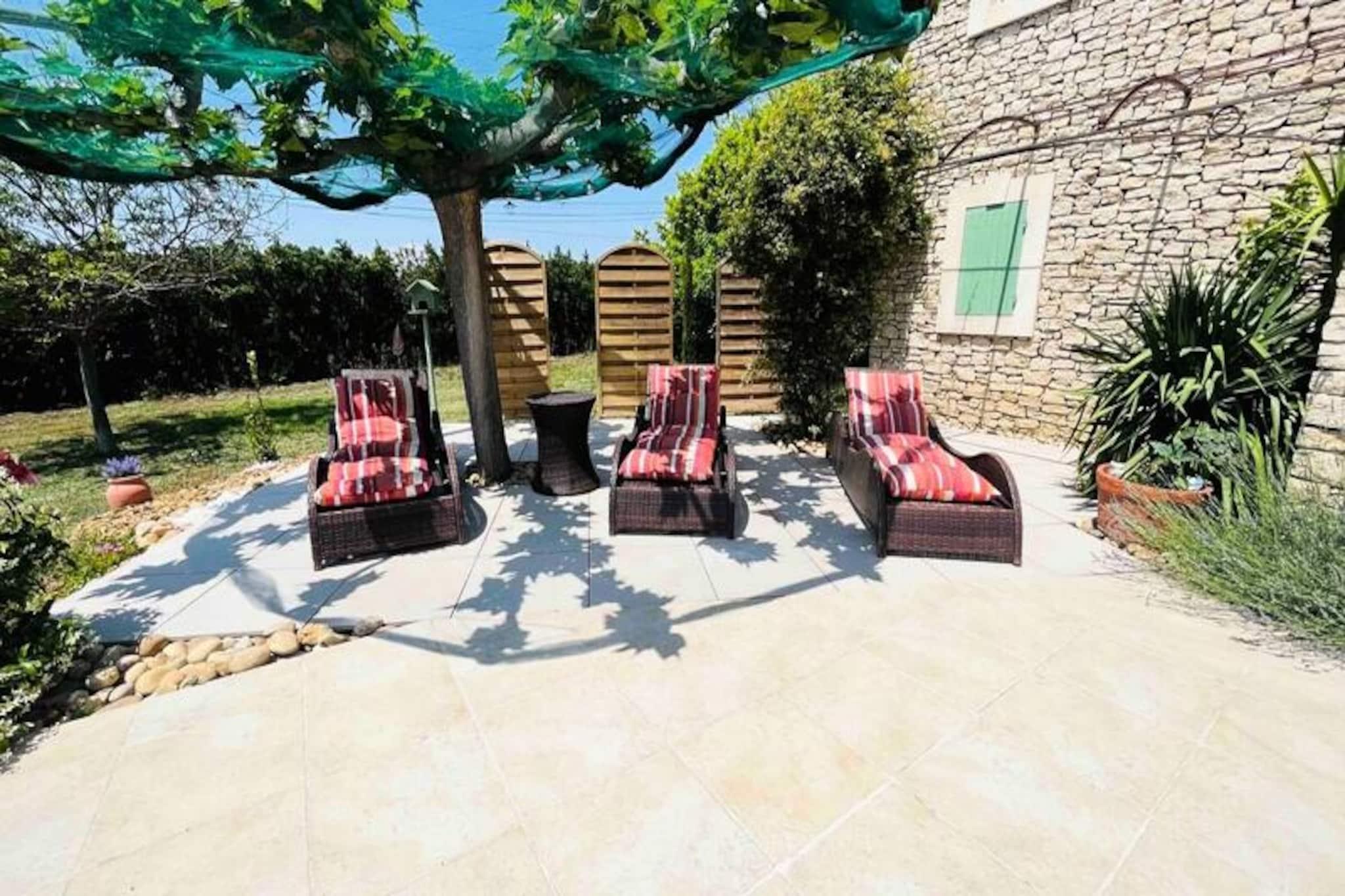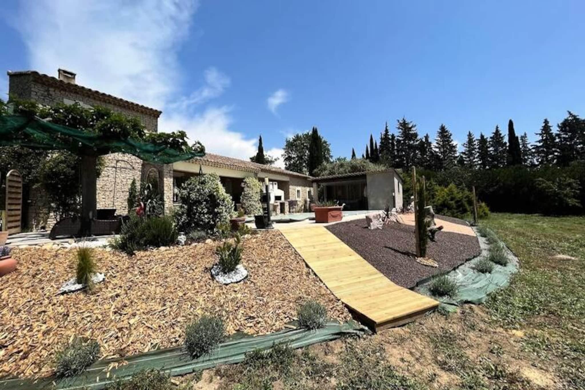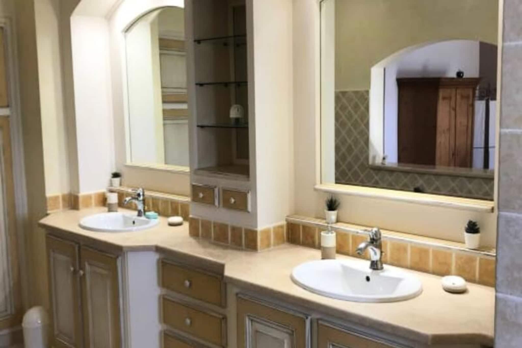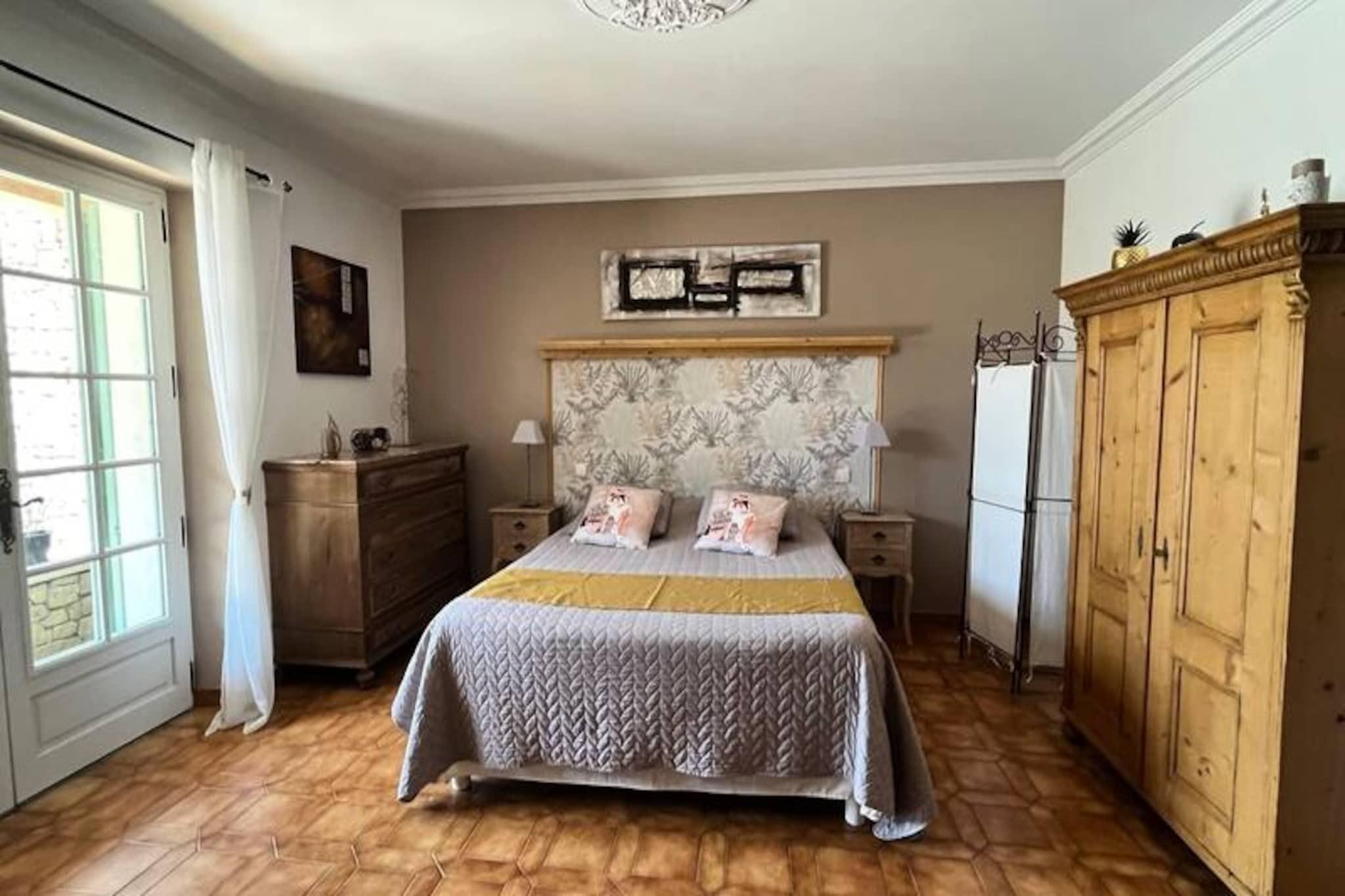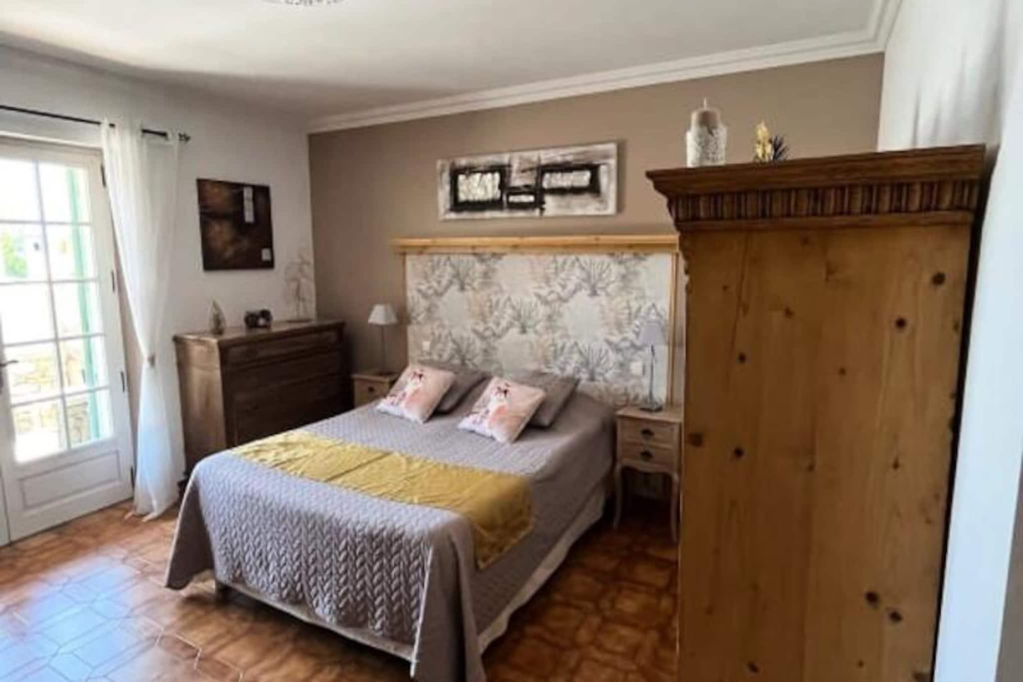 Beliggende i hjertet af Provence tilbyder denne rummelige villa p? 120 m² et fredeligt tilflugtssted med en betagende udsigt over Luberon. Villaen har 4 luksuri?se suiter, hver med en queensize seng (160x200), privat badev?relse og enten badekar eller bruser. Der er ogs? et 5. sovev?relse designet til b?rn med en Queen Size seng. Villaen byder p? rigelig plads til afslapning med privat, indhegnet grund og forskellige udend?rs spil. K?ledyr er ikke n?vnt, men villaen er ideel til familier eller grupper, der s?ger privatliv og komfort. Villaen er perfekt placeret for at udforske den fantastiske Provence-region. Kun 5 minutter i bil fra landsbyen Lagnes og 10 minutter fra Isle-sur-la-Sorgue, vil du v?re t?t p? lokale markeder, museer og vinmarker. Popul?re attraktioner omfatter den maleriske landsby Gordes, kun 15 minutter v?k, og landsbyen Roussillon p? en bakketop. For en dagstur kan du ogs? bes?ge Fontaine de Vaucluse eller kystregionerne, begge inden for en times k?rsel. Indvendigt har villaen et fuldt udstyret ?bent k?kken, perfekt til at tilberede m?ltider, der kan nydes i de rummelige indend?rs eller udend?rs spiseomr?der. K?kkenet er suppleret med moderne apparater, herunder en opvaskemaskine, og spisestuen er indrettet med et stort bord til 10. Ejendommen har ogs? en stor saltvandspool, et poolhus med loungeomr?de og flere terrasser til afslapning, hvilket sikrer en luksuri?st ophold.