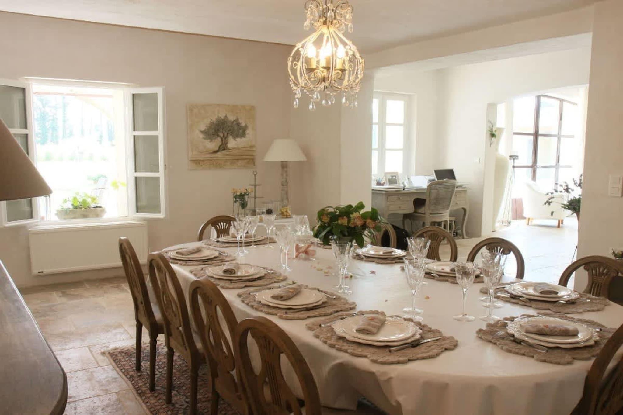 Denne imponerende enkeltstående villa tilbyder et vidtstrakt boligareal på 200 m², perfekt egnet til store familier eller grupper på op til 11 voksne, der søger plads, komfort og privatliv. Villaen har aircondition og varme, hvilket sikrer et behageligt ophold hele året rundt, og den er en exceptionel base for et luksuriøst tilflugtssted. Indkvarteringen kan prale af en omfattende planløsning med fem forskellige soveområder og fire komplette badeværelser, alle med badekar, håndvask og toilet. Soveværelserne er generøst konfigureret: Soveværelse 1 og 2 har dobbeltsenge, soveværelse 3 kombinerer en dobbeltseng og en enkeltseng, soveværelse 4 har en dobbelt kingsize-seng, og et sidste soveværelse har endnu en dobbeltseng. Det store køkken er fuldt udstyret til omfattende catering og tilbyder ovn, mikrobølgeovn, opvaskemaskine, stort køleskab og fryser, madlavningsudstyr, elkedel og kaffemaskine. Stue-/spisestuen har et tv og et stort spisebord til fælles måltider. Faciliteterne er designet til total bekvemmelighed og fritid. Gæsterne kan nyde en privat swimmingpool lige på ejendommen. Vasketøjsbehov dækkes af en inkluderet vaskemaskine og strygejern. Til indendørs underholdning er der et dedikeret legeområde. Der er sengelinned, hårtørrer, shampoo og showergel. Denne villa tilbyder den ultimative kombination af god plads, omfattende faciliteter og luksus til en stor gruppesammenkomst.