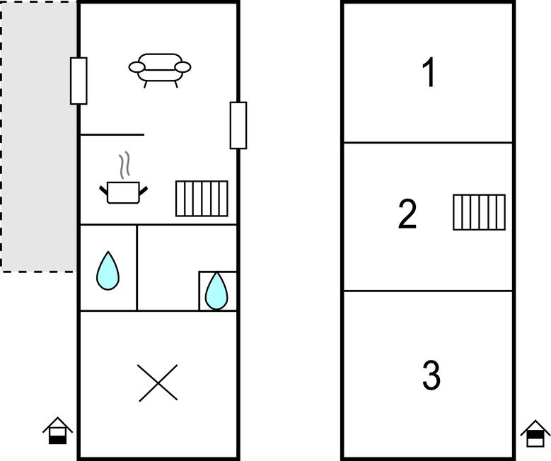 Opholdsstue 15m2 - 2 Sovepladser. (Sofa, madras eller lignende).