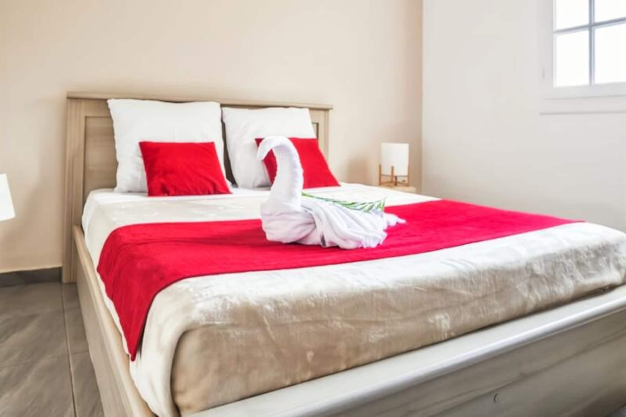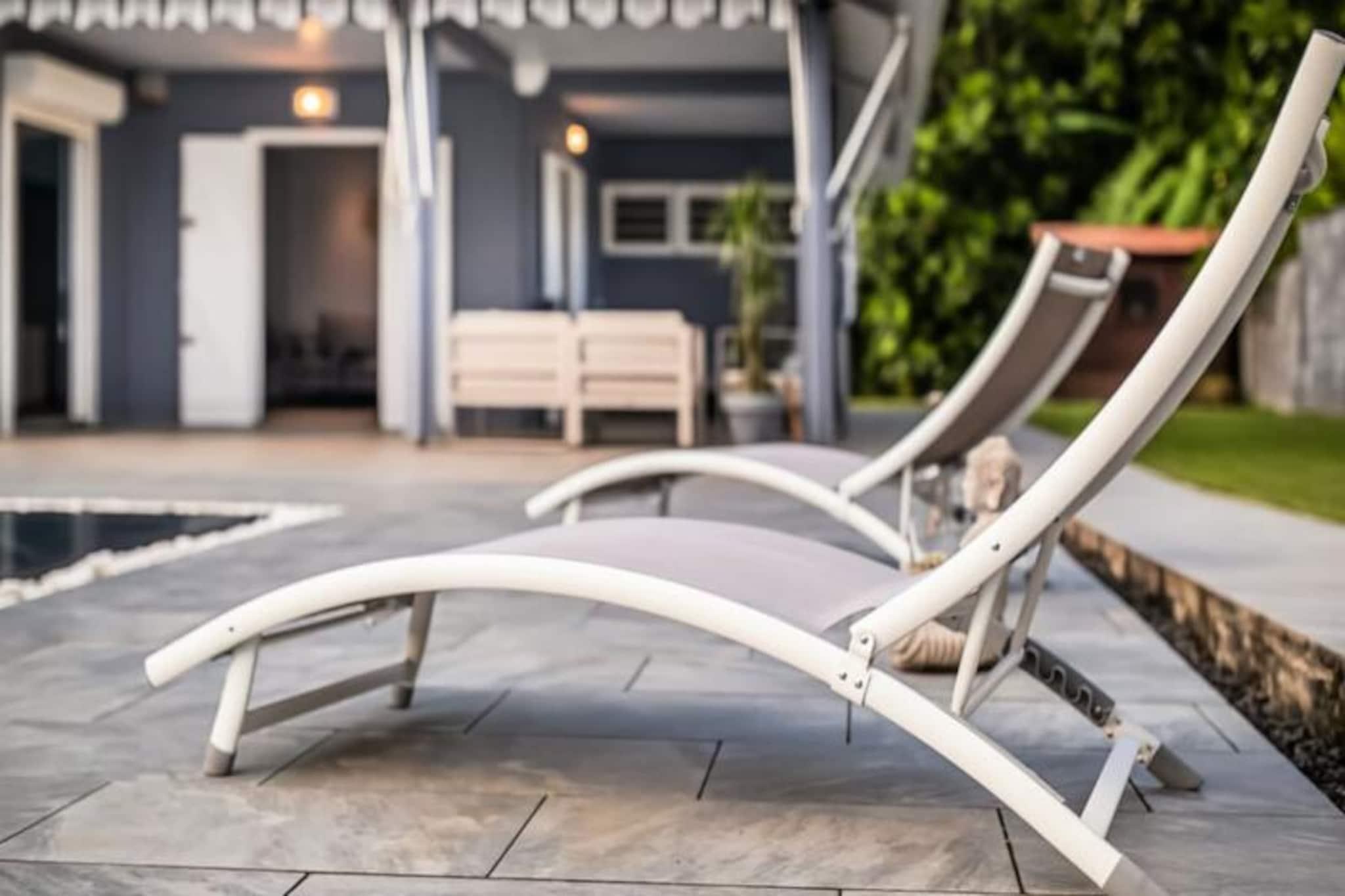 Denne smukke en-etagers villa i Lamentin tilbyder komfortabel indkvartering for op til seks g?ster. Det har tre sovev?relser med aircondition: to med 140 cm senge og et med en 160 cm seng. En privat swimmingpool tilbyder en forfriskende flugt. Fester er ikke tilladt af respekt for nabolaget. Beliggende i den vestlige del af Guadeloupe (Basse-Terre), er dette feriehus 20 minutters k?rsel fra Pointe-?-Pitre lufthavn og 10 minutters k?rsel fra Lamentin by, hvor du finder faciliteter s?som et supermarked, bageri , og apotek. Indk?bscentret Destreland ligger 10 minutters k?rsel derfra, og Marina du Gosier med sine restauranter ligger omkring 20 minutter derfra. Grande Anse-stranden i Deshaies, Deshaies botaniske have og Malendure-stranden (kendt for skildpaddedykning) ligger omkring 30 minutters k?rsel derfra. Den termiske spa Ravine Chaude ligger kun 10 minutter v?k. Villaen har et fuldt udstyret k?kken med ovn, mikroovn, br?drister, fryser, k?leskab, Nespresso-kaffemaskine og opvaskemaskine. Stuen er lys og indbydende. Der er ogs? to moderne bruserum og to toiletter. Udenfor er der en kulgrill. Internetadgang, h?ndkl?der og senget?j er inkluderet, ligesom professionel reng?ring f?r og efter dit ophold. En velkomstcocktail tilbydes ved ankomsten, og en dedikeret concierge er tilg?ngelig f?r, under og efter dit ophold for at hj?lpe med eventuelle behov, herunder udflugter, biludlejning, lufthavnstransport og information om lokale begivenheder. Ingen depositum er p?kr?vet.