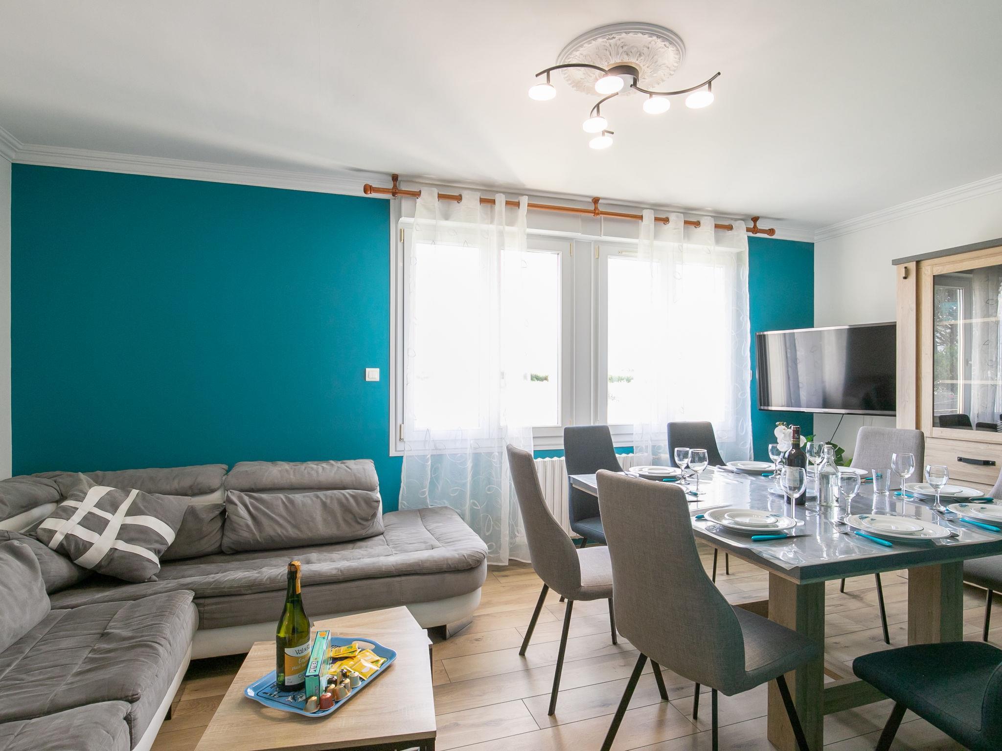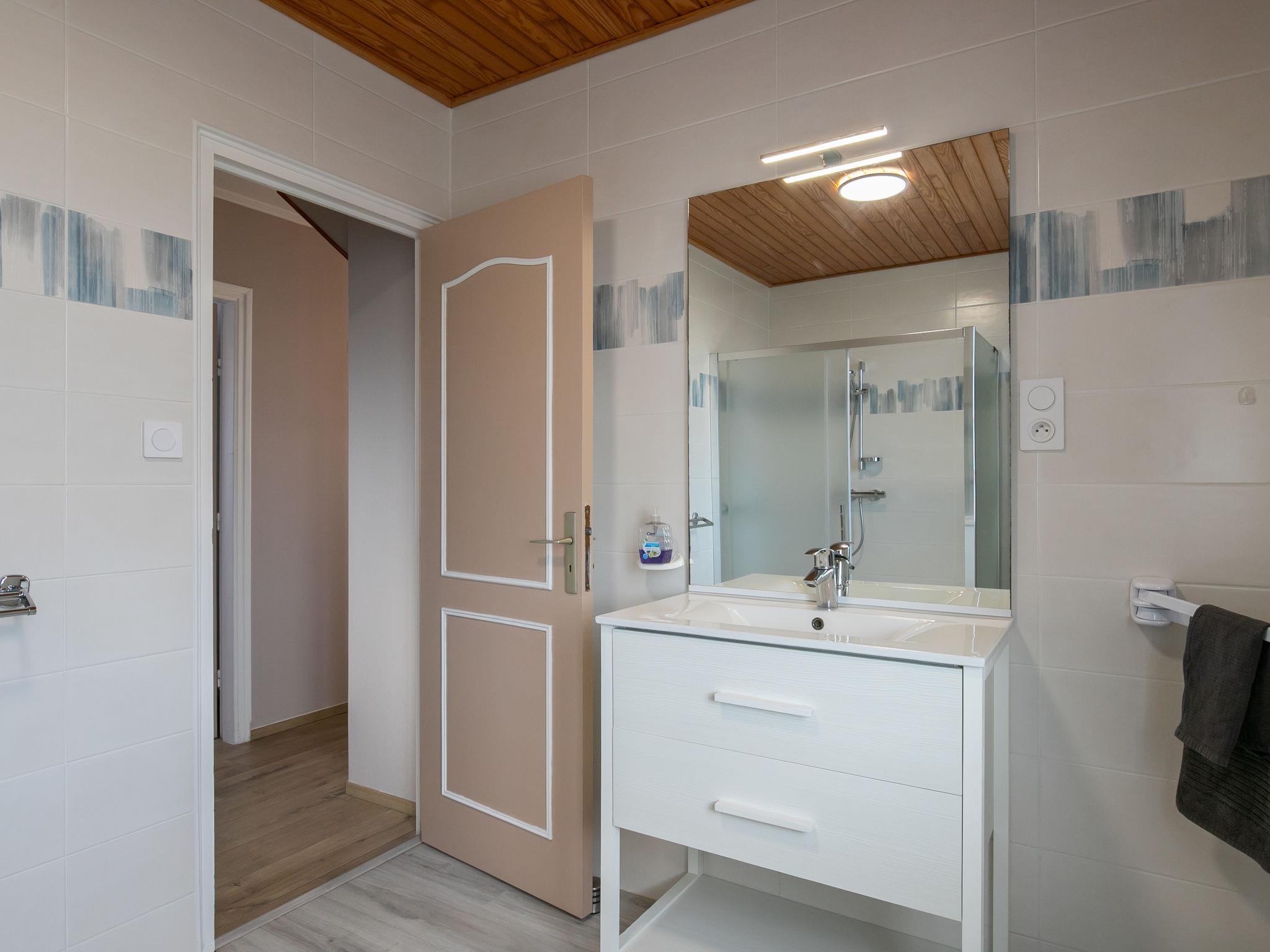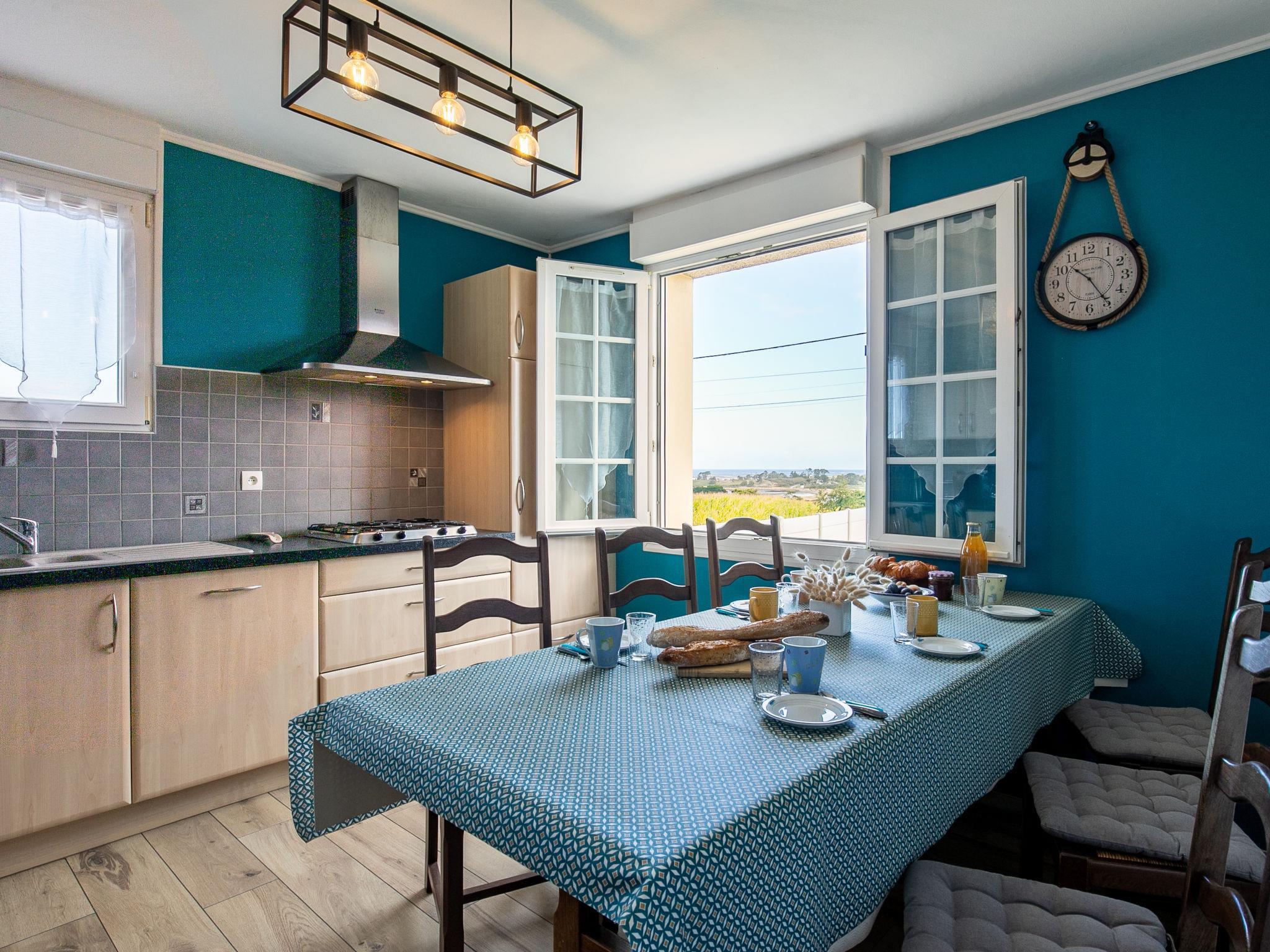 "Entre Terre et Mer", 6-room house 120 m2. Spacious and bright, beautiful and tasteful furnishings: open living/dining room 30 m2. 1 room with 1 french bed (160 cm, length 200 cm). Kitchen 16 m2 (oven, dishwasher, 4 gas rings, toaster, kettle, microwave, electric coffee machine, Capsules for coffee machine (L'Or Barista) extra) with dining table. Shower, sep. WC. On the lower ground floor: playroom with hydro massage bath. Upper floor: 2 rooms, each room with 1 french bed (160 cm, length 200 cm). 1 room with 2 beds (80 cm, length 190 cm). Bathroom, sep. WC, double hand-basin. Oil heating. View of the sea. Facilities: washing machine, dryer, iron, children's high chair, baby cot for up to 2 year olds, hair dryer. Internet (WiFi, free). Please note: non-smoking house. Smoke alarm. Offer by a private individual according to Art. 155, IV of CGI.