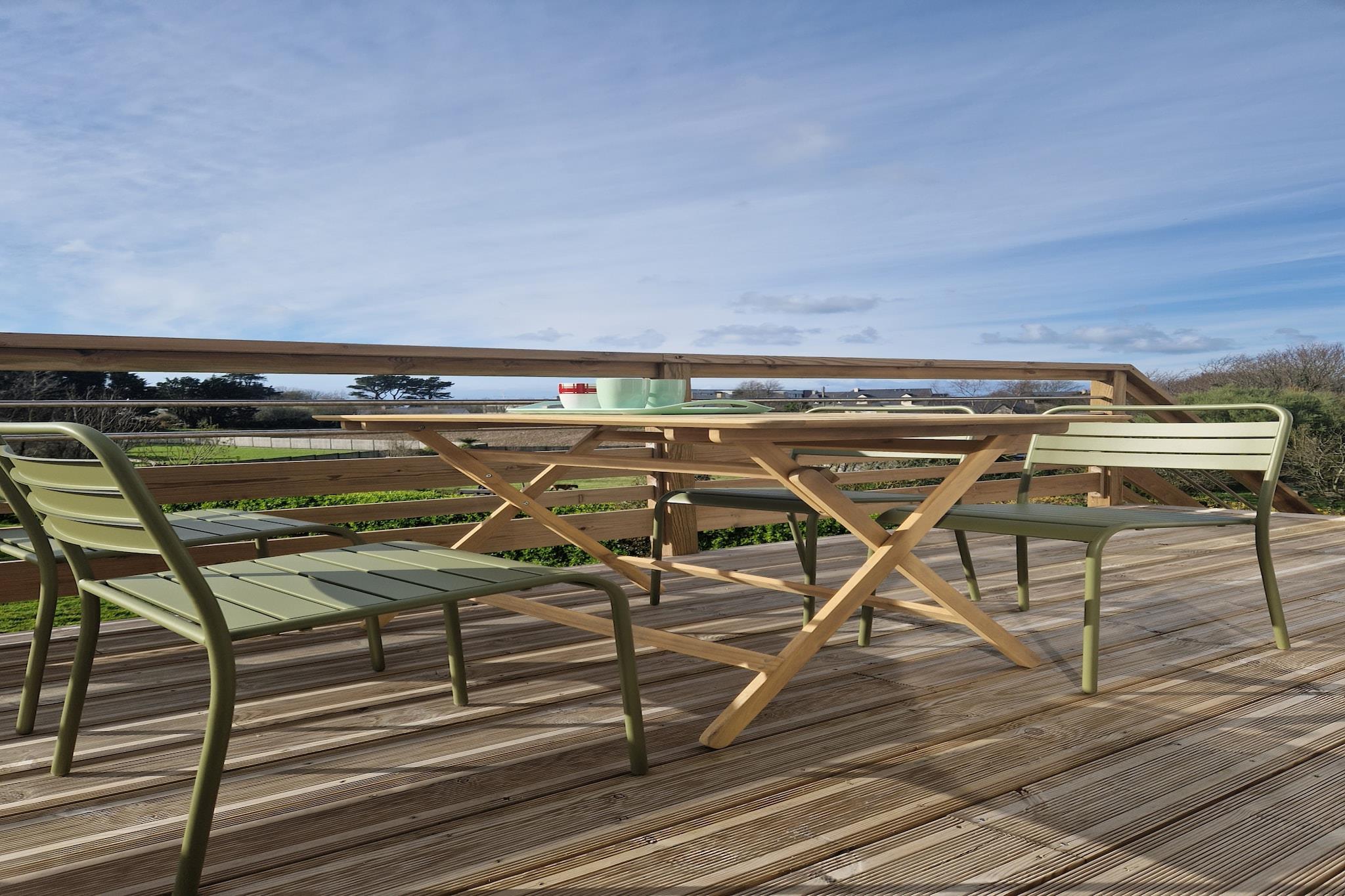 Dette rummelige feriehus i Landéda er perfekt til familier eller grupper, der søger et afslappende kysttilflugtssted. Ejendommen har en stor stue med et hyggeligt opholdsområde, en pejs og et tv, hvilket gør det til det ideelle sted at slappe af efter en dag med udforskning. Det åbne køkken er fuldt udstyret med moderne apparater, herunder en kaffemaskine, mikroovn, ovn, opvaskemaskine og endda en juicer, hvilket sikrer, at du nemt kan tilberede måltider under dit ophold. Ejendommen ligger kun en kort køretur fra kysten og tilbyder nem adgang til flere strande, herunder sandstranden "Plage de Landéda", perfekt til strandgæster. Gæster kan udforske den maleriske by Landéda eller vove sig til nærliggende attraktioner såsom "Phare de l"Ile Vierge" fyrtårnet eller byen Brest, kendt for sin maritime historie og pulserende kulturscene. Dette rummelige hus er den ideelle base for at nyde skønheden og charmen ved Bretagnes kystlinje. Boligen byder på masser af plads med tre soveværelser, heraf et med eget badeværelse med bruser, håndvask og toilet. Anden sal har yderligere to soveværelser med dobbeltsenge samt et moderne badeværelse med bruser, håndvask og toilet. Der er også to separate toiletter for ekstra bekvemmelighed. Udenfor finder du en smuk have, en terrasse og et grillområde, perfekt til at nyde udendørs måltider i den friske luft. Ejendommen har også en balkon, havemøbler, parkering og væsentlige faciliteter såsom en vaskemaskine, tørretumbler og hårtørrer.