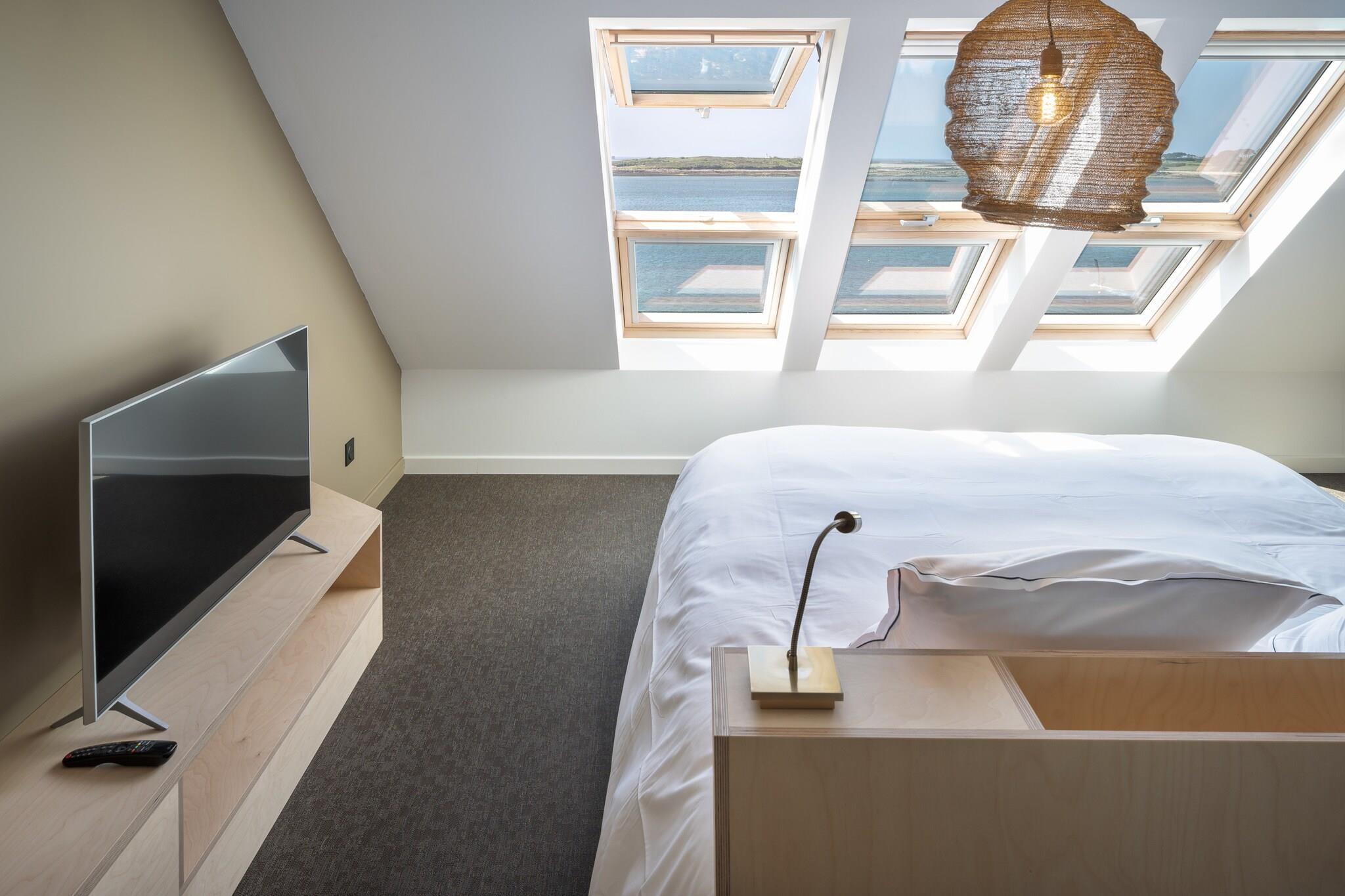 Denne rummelige lejlighed på 135 m² i Landéda tilbyder en moderne og hjemlig atmosfære, perfekt til familier eller grupper på op til 8 personer. Beliggende lige ved stranden med en fantastisk udsigt over vandet, lejligheden har 4 soveværelser og en række faciliteter for at sikre et behageligt ophold. Ejendommen ligger kun en kort gåtur fra lokale restauranter såsom "Crêperie Captain" (10 m), "Restaurant l"Écailler des Abers" (150 m) og "Restaurant Le Pot de Beurre" (300 m), der tilbyder en rækkevidde af spisemuligheder Den smukke "Plage des Anges" strand ligger kun 300 meter væk, ideel til solbadning og svømning. For dem, der ønsker at udforske området, er lejligheden godt placeret i et familievenligt område. Landédas bymidte ligger 2 km væk, og tilbyder butikker og supermarkedet "Supérette Utile de Landéda". Større byer som Brest (29 km) og Lannilis (7 km) er inden for rækkevidde. Besøgende kan også nyde familievenlige attraktioner såsom forlystelsesparken "La Récré des 3 Curés", der ligger 18 km væk. Placeringen er også tæt på golfbaner såsom "Golf de Pen Ar Bed" og "Golf de Brest les Abers." Med en lufthavn og togstation i nærheden er det praktisk at rejse. Lejligheden er udstyret med et komplet udvalg af moderne faciliteter, herunder et åbent køkken med induktionskomfur, køleskab, mikroovn, ovn, fryser og opvaskemaskine. Køkkenet er fuldt udstyret med tallerkener, redskaber, kaffemaskine, brødrister, kedel og juicer, perfekt til at tilberede måltider derhjemme.
