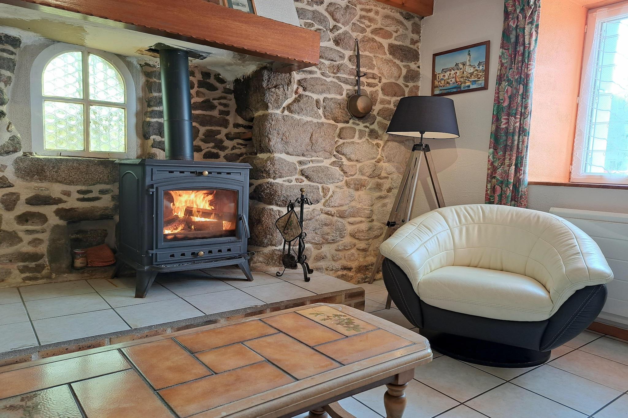 Kun 50 m fra havet! Malerisk, typisk bretonsk stenhus beliggende mellem sammenløbet af Aber Benoit og Aber Wrach, et fjordlignende kystlandskab. Fra den hævede terrasse har du en vidunderlig udsigt over det nærliggende hav. Lige bag ved feriehuset fører en lille gangsti direkte til kysten. Efter alle områdets og strandlivets seværdigheder bliver det hyggeligt under det overdækkede lysthus.Stedet ligger mellem Aber Benoit og Aber Wrach på en halvø. 15 km kyststrækning med talrige sandstrande venter dig her, den mest kendte er stranden Sainte Marguerite med sin vidunderlige fine sandstrand, det tilhørende klitlandskab er blevet erklæret et naturreservat. Det naturlige og vilde landskab i kystområdet, som er beskyttet af et væld af rev og øer, er ideelt til vandreture eller surfing. Aktiviteter i nærheden: Den nærliggende sejlhavn Aber Wrach tiltrækker med gode barer, restauranter og udstillinger. I overskyet vejr kan et besøg på Oceanographic Museum Ozeanopolis i Brest varmt anbefales.