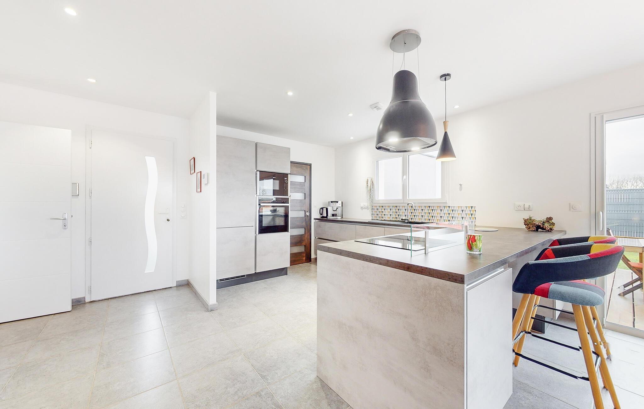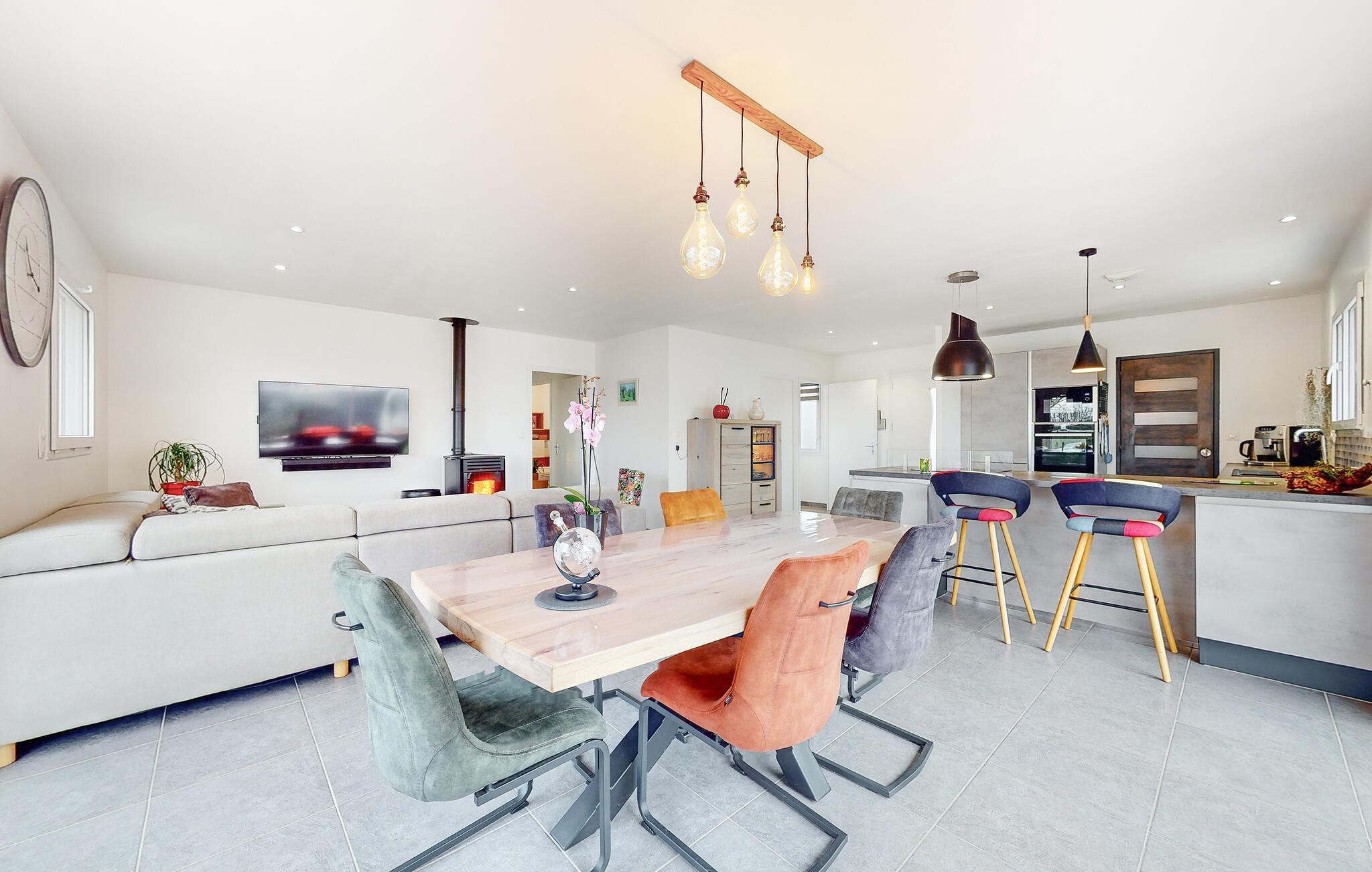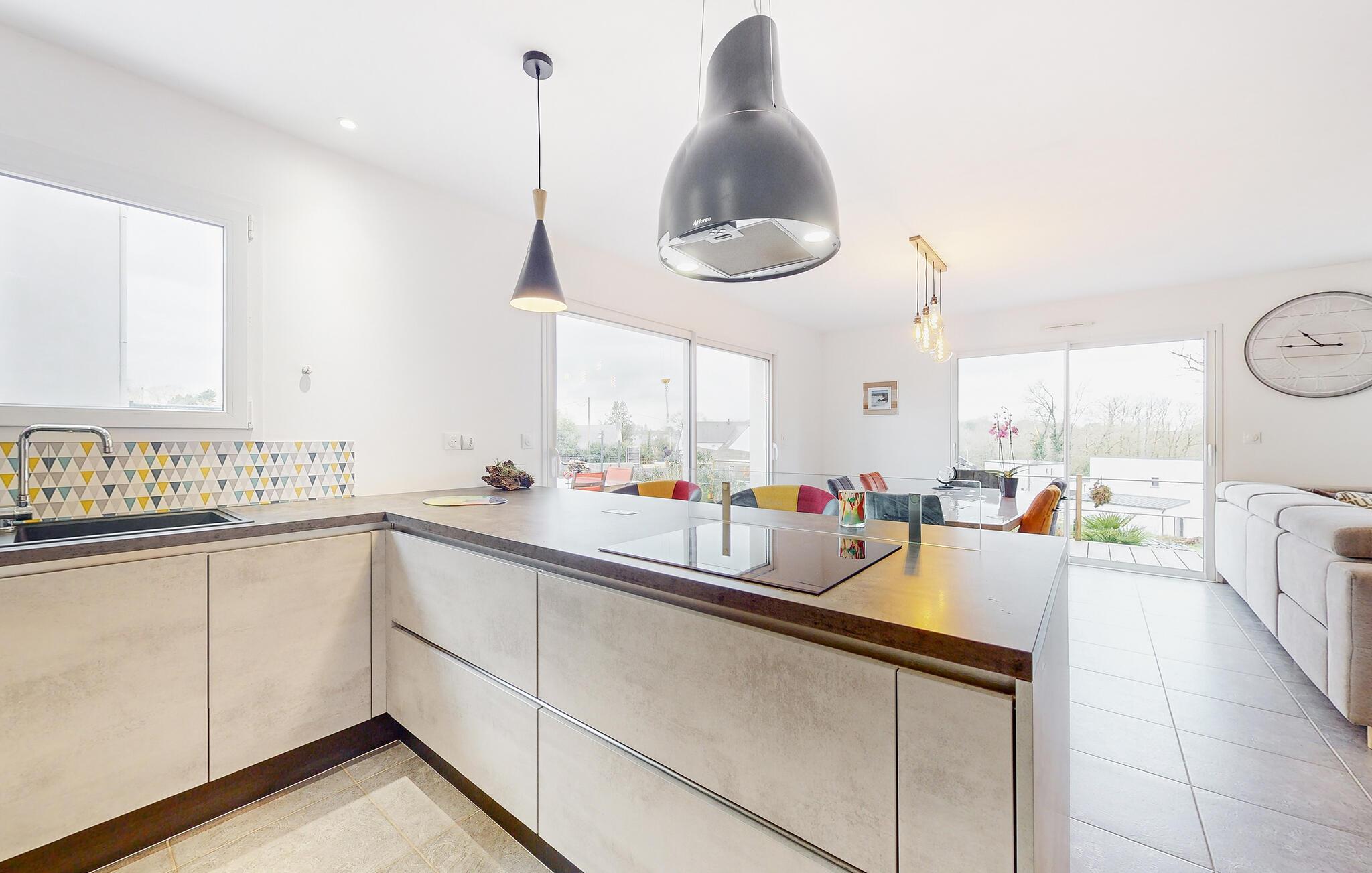 I det sydlige Bretagne ligger den lille, charmerende by Landévant, hvor der venter jer dette dejlige feriehus. Indretningen er gennemtænkt og præges af et åbent boligkoncept, så køkken, spiseplads og stue er i ét rum, hvor I kan hygge jer med dagens gøremål. Kræs om familiens livretter i køkkenet, mens andre hviler stængerne i sofaen med en god bog. Møblerne er komfortable, og udsmykningen er udført med nænsom hånd, så der venter jer en på alle måder behagelig oplevelse her.