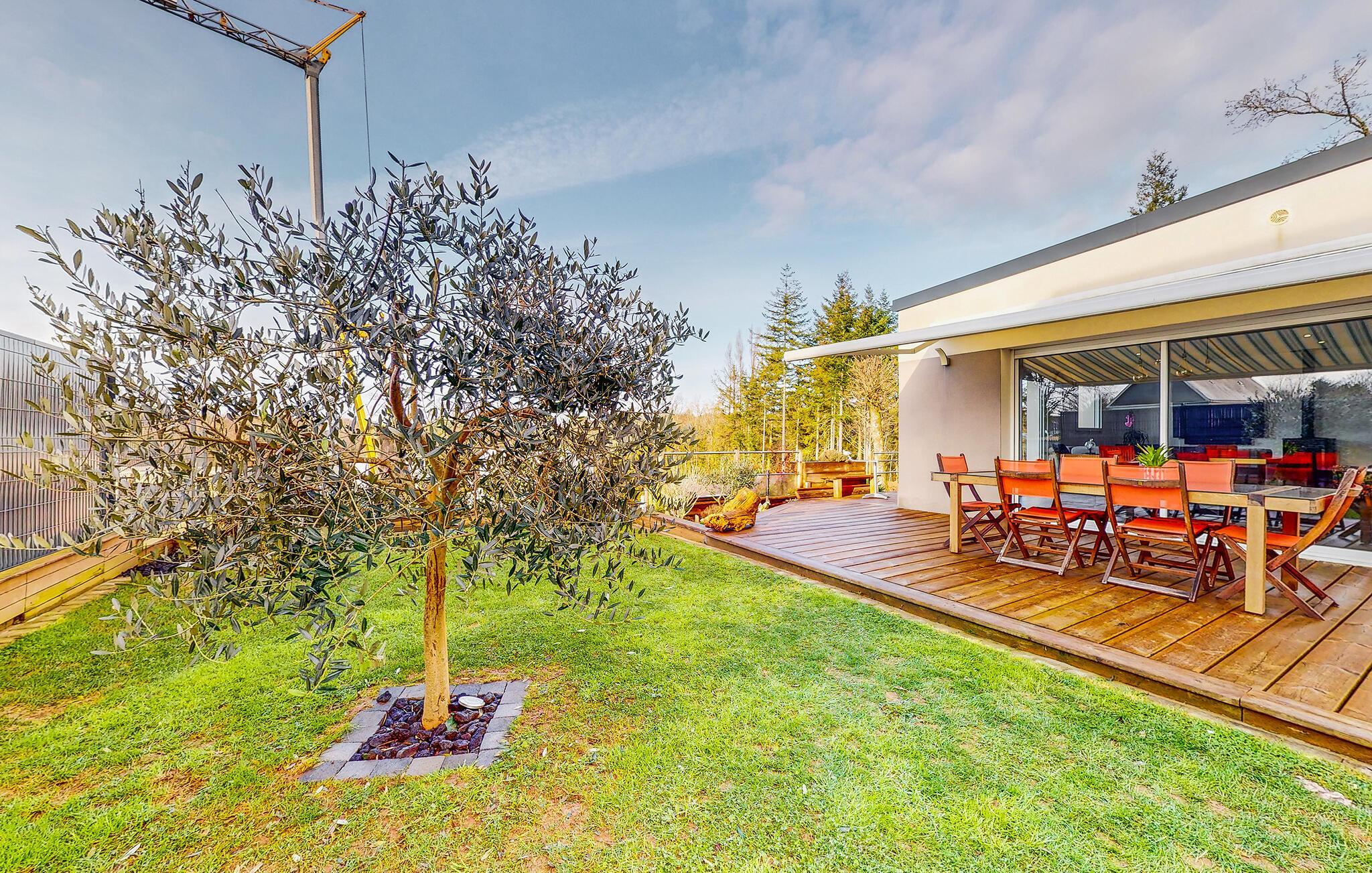 Til huset hører en dejlig have, som støder op til en skov, og hvor børnene kan løbe rundt og spille bold, lige så tosset de vil, mens I daser i havemøblerne eller tilbereder nogle lækre retter på træterrassen.