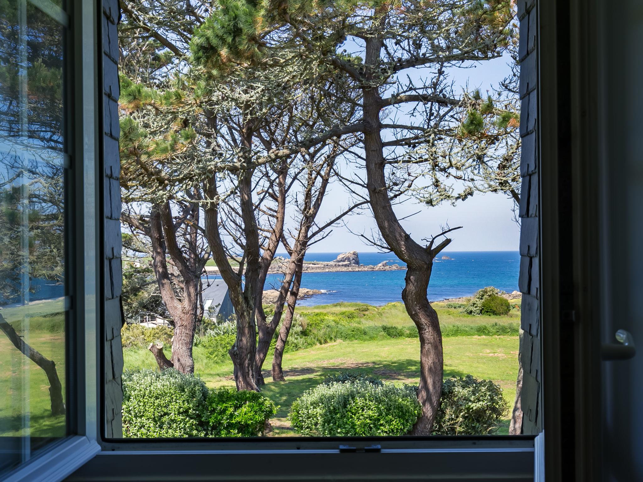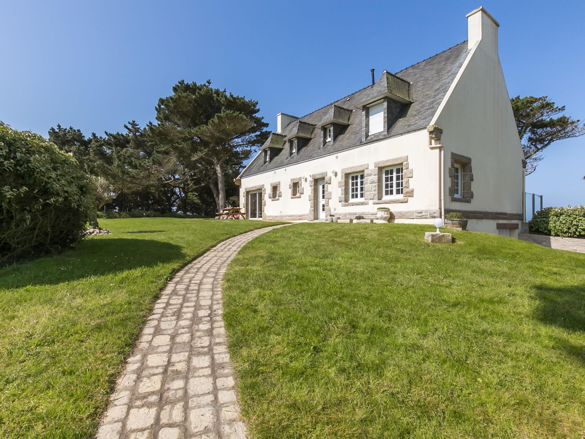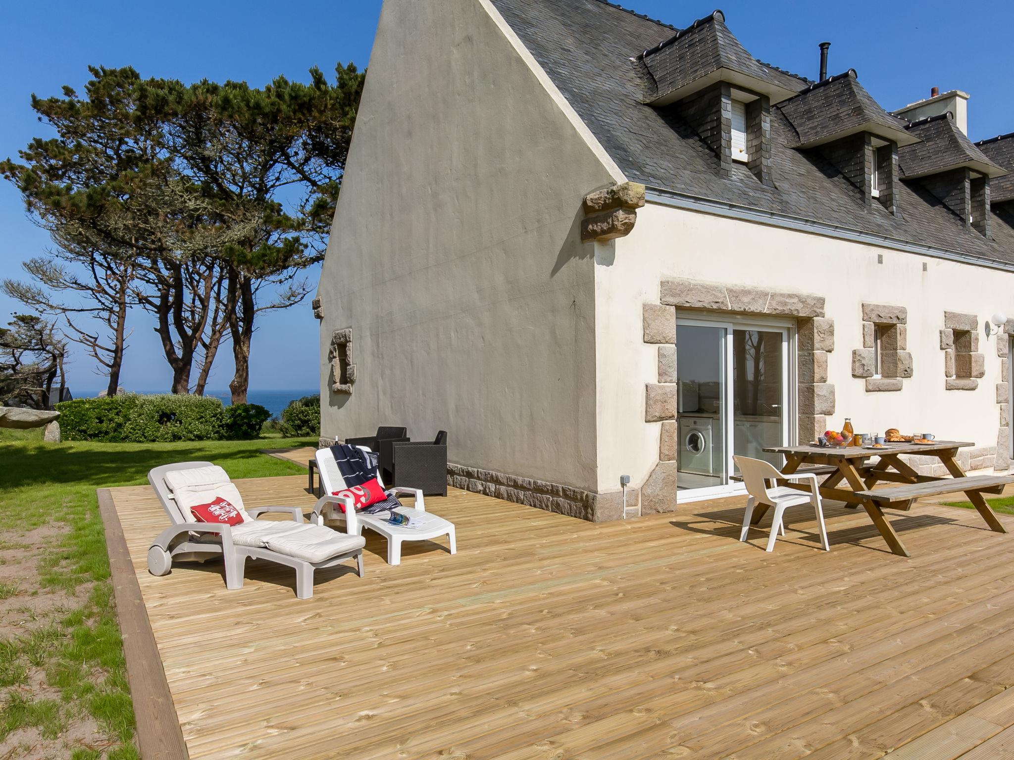 "Saint Gonvel", 6-room house 200 m2 on 2 levels. Comfortable and cosy furnishings: living/dining room with panoramic window with dining table, TV and DVD. Exit to the terrace. 1 room with 1 french bed (180 cm, length 200 cm). Kitchen (oven, dishwasher, 3 induction hot plates, toaster, kettle, microwave, electric coffee machine) with dining table. Shower, sep. WC. Upper floor: 2 rooms, each room with 1 french bed (140 cm, length 190 cm). 1 room with 1 french bed (140 cm, length 190 cm), hand-basin. 1 room with 1 bed (120 cm, length 190 cm). Shower, sep. WC. Electric heating. Parquet floors. Terrace. Terrace furniture, barbecue (portable), deck chairs (4), box-room. Marvellous panoramic view of the sea. Facilities: washing machine, iron, children's high chair, baby cot. Internet (WiFi, free). Please note: non-smoking house. Smoke alarm. Bed layout is flexible. There are more sleeping options available than the maximum number of people allowed which may, however, not be exceeded. LDZ103