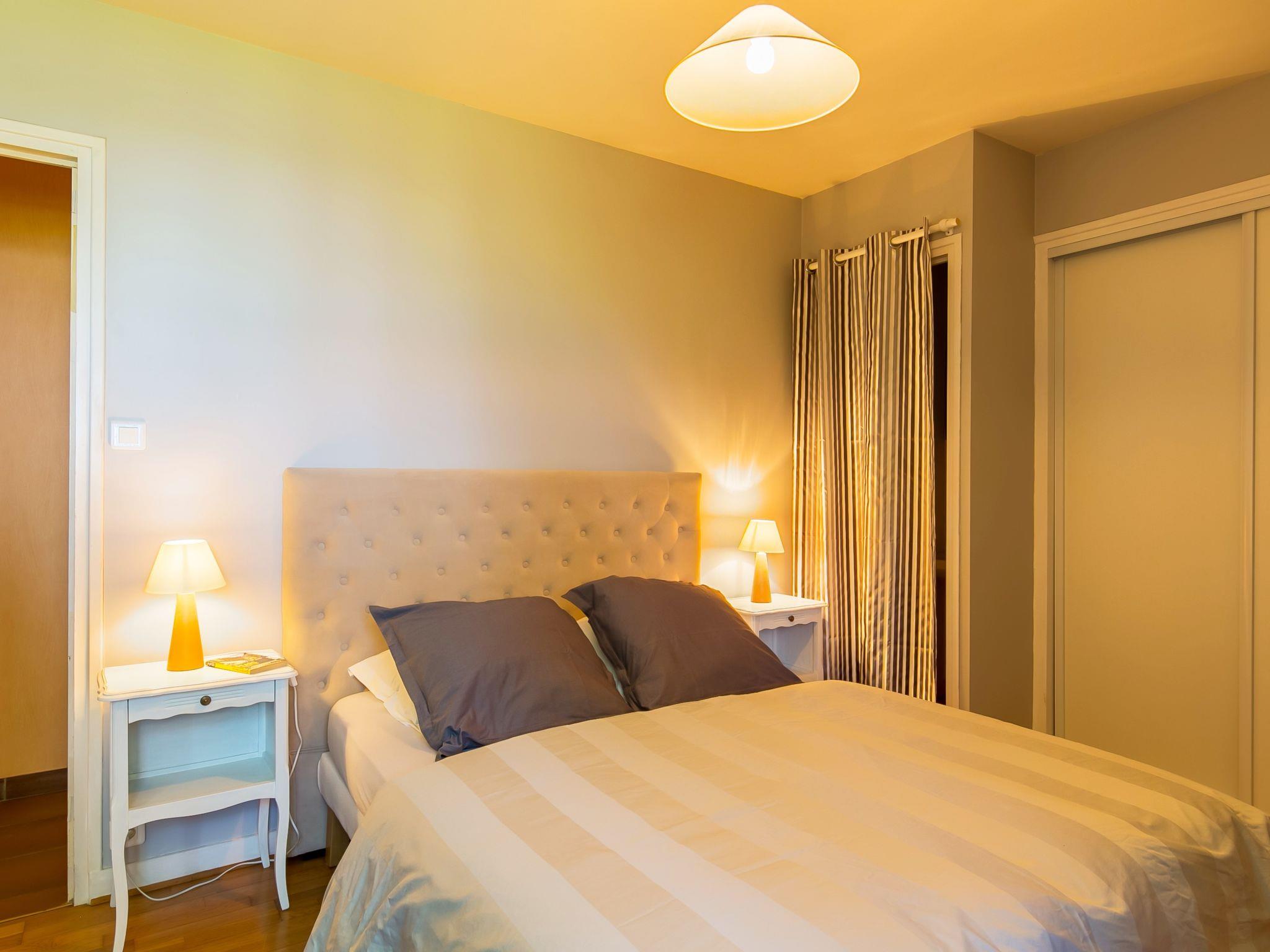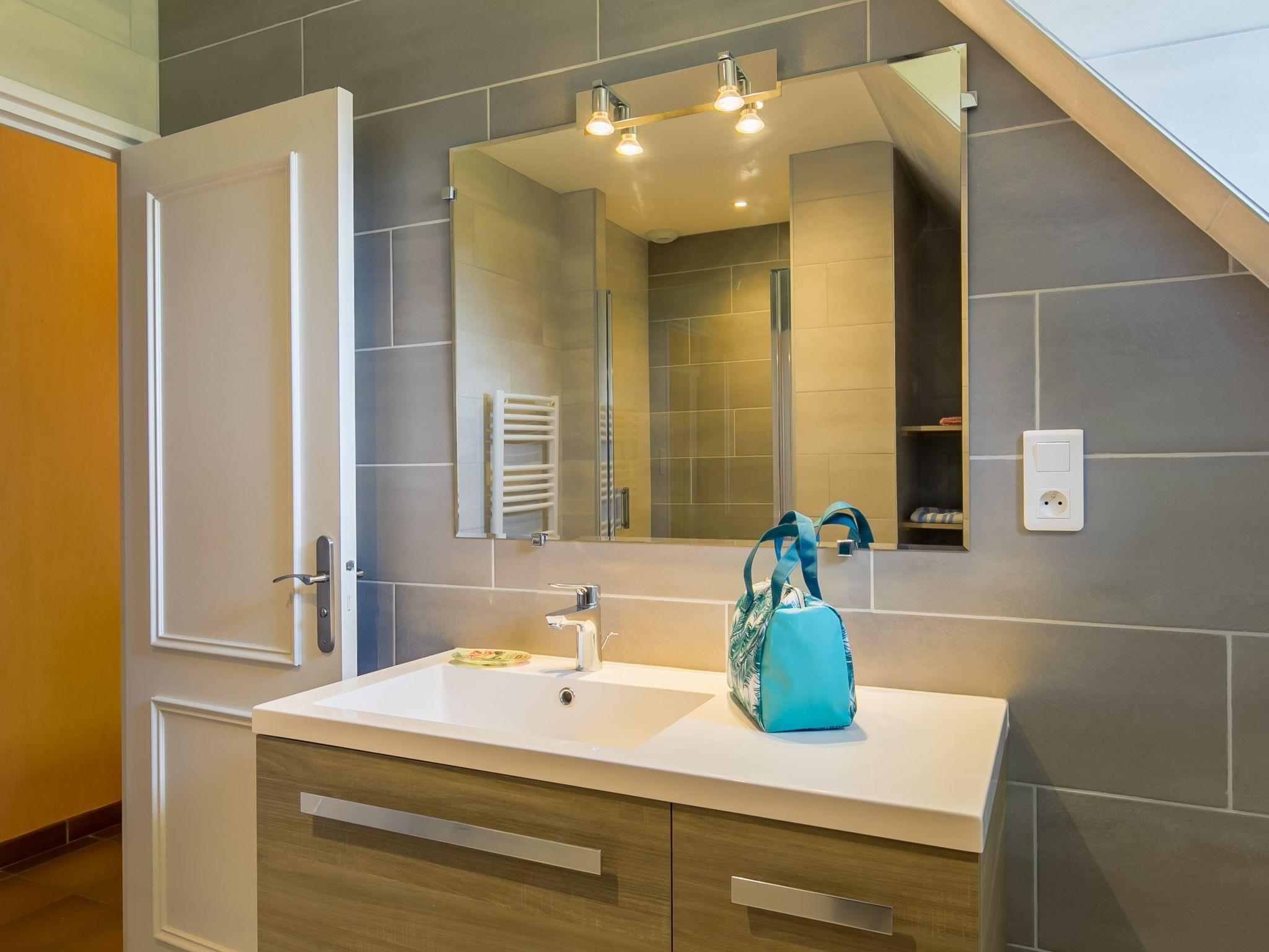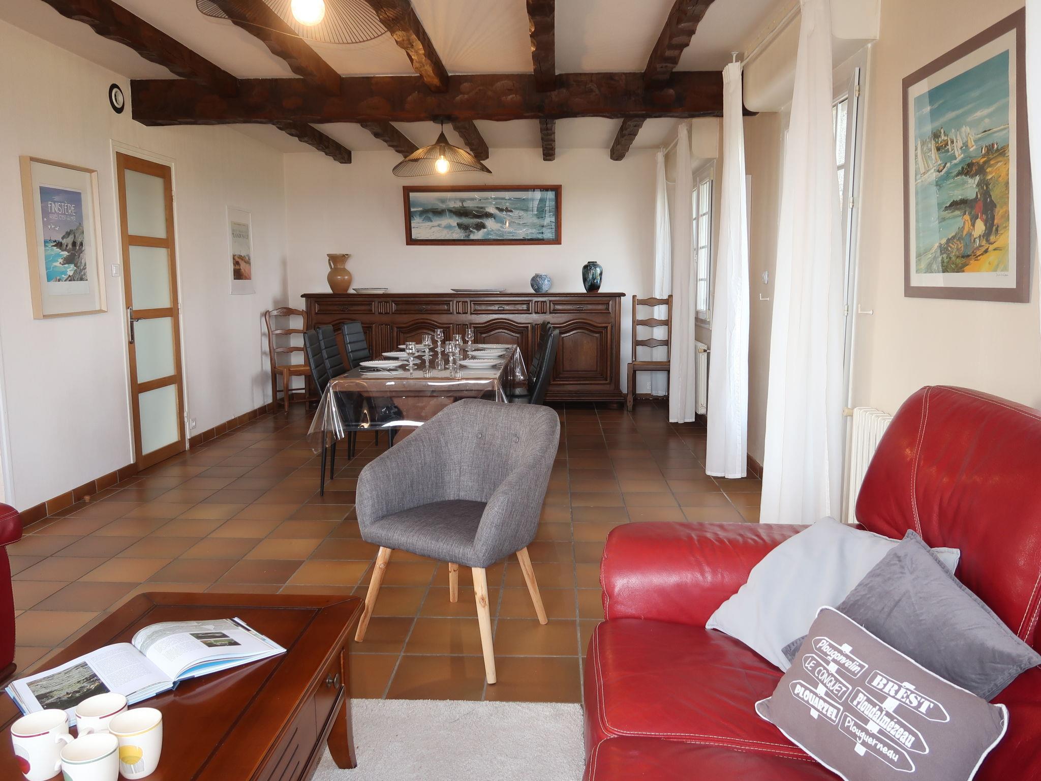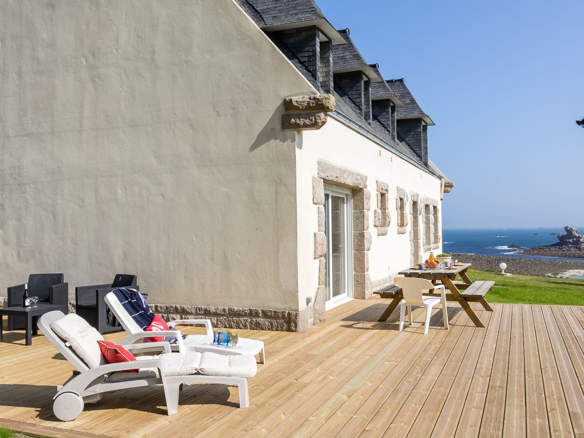 "Saint Gonvel", 6-room house 200 m2 on 2 levels. Comfortable and cosy furnishings: living/dining room with panoramic window with dining table, TV and DVD. Exit to the terrace. 1 room with 1 french bed (180 cm, length 200 cm). Kitchen (oven, dishwasher, 3 induction hot plates, toaster, kettle, microwave, electric coffee machine) with dining table. Shower, sep. WC. Upper floor: 2 rooms, each room with 1 french bed (140 cm, length 190 cm). 1 room with 1 french bed (140 cm, length 190 cm), hand-basin. 1 room with 1 bed (120 cm, length 190 cm). Shower, sep. WC. Electric heating. Parquet floors. Terrace. Terrace furniture, barbecue (portable), deck chairs (4), box-room. Marvellous panoramic view of the sea. Facilities: washing machine, iron, children's high chair, baby cot. Internet (WiFi, free). Please note: non-smoking house. Smoke alarm. Bed layout is flexible. There are more sleeping options available than the maximum number of people allowed which may, however, not be exceeded. LDZ103
