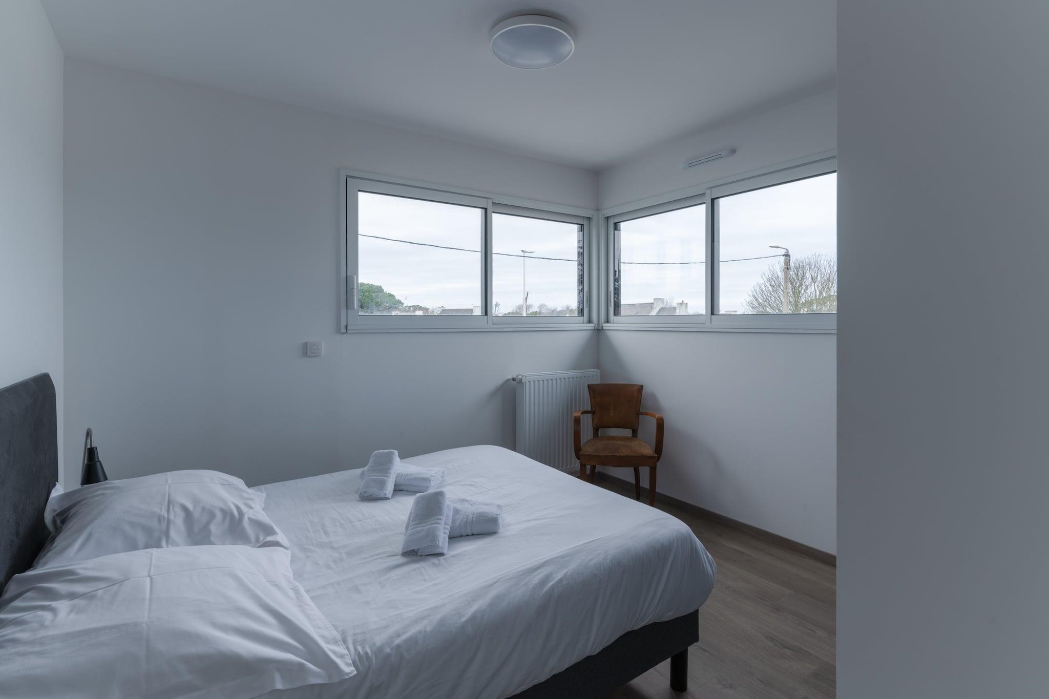 Dette charmerende hus på 127 m² i Landunvez tilbyder et rummeligt og komfortabelt tilflugtssted, perfekt til familier eller grupper på op til 8 personer. Beliggende kun 50 meter fra den smukke Plage de Penfoul, giver denne ejendom nem adgang til stranden for dem, der ønsker at slappe af ved havet. Med andre strande som Plage de Verlen kun 900 meter væk, er det et ideelt sted for strandelskere at nyde solen og surfe. Golfentusiaster vil også sætte pris på den nærliggende Golf de Pen ar Bed, kun 17 meter væk. Til spisning kan gæsterne udforske en række restauranter i umiddelbar nærhed, såsom Restaurant Les Cintrés, Crêperie Ty Gwechall og den gastronomiske Restaurant Le Château de Sable, som alle ligger inden for 2 km. Der er også praktiske supermarkeder i nærheden, herunder Supérette SPAR de Porspoder (3 km) og Supermarché Leclerc de Ploudalmézeau (8 km). For et større udvalg af shopping, restauranter og underholdning, er byen Brest kun 28 km væk, og familier kan nyde en dag ude på Parc d"attraktionen La Récré des 3 Curés (22 km). Huset har et åbent køkken udstyret med moderne induktionsapparater, herunder køleskab, mikroovn, ovn, fryser, kaffemaskine og brødrister. Gæsterne vil finde alt det nødvendige køkkenredskaber til at tilberede måltider. Ejendommen omfatter også et komfortabelt opholdsområde, der giver mulighed for afslapning efter en dag med udforskning. Med rigelig plads til alle, er dette hus en ideel base for at nyde strandene, golfen og det omkringliggende område.