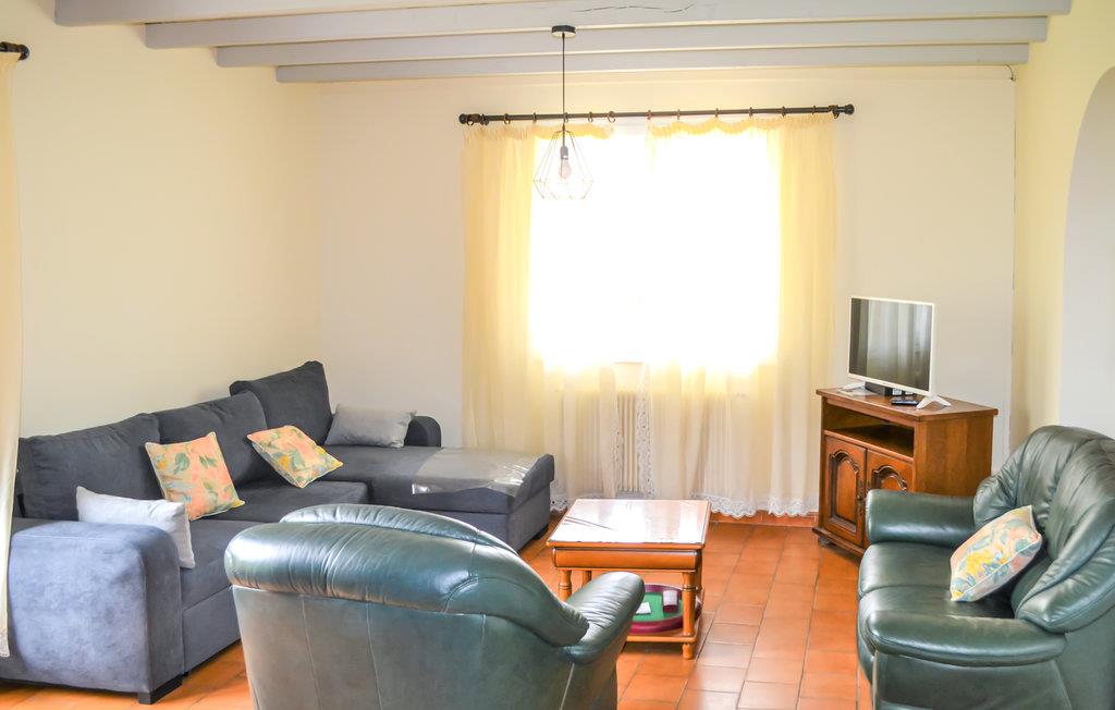 Oplev en afslappende ferie med hele familien i jeres feriehus. Nyd den fredfyldte atmosfære blandt vinmarkerne og læg hverdagen bag jer. Tilbring tid sammen i opholdsstuen, som kombinerer rustik charme med hygge. Tilbered jeres måltider i det praktisk indrettede køkken-alrum og træk jer tilbage til opholdsstuen for at slappe fuldstændigt af.