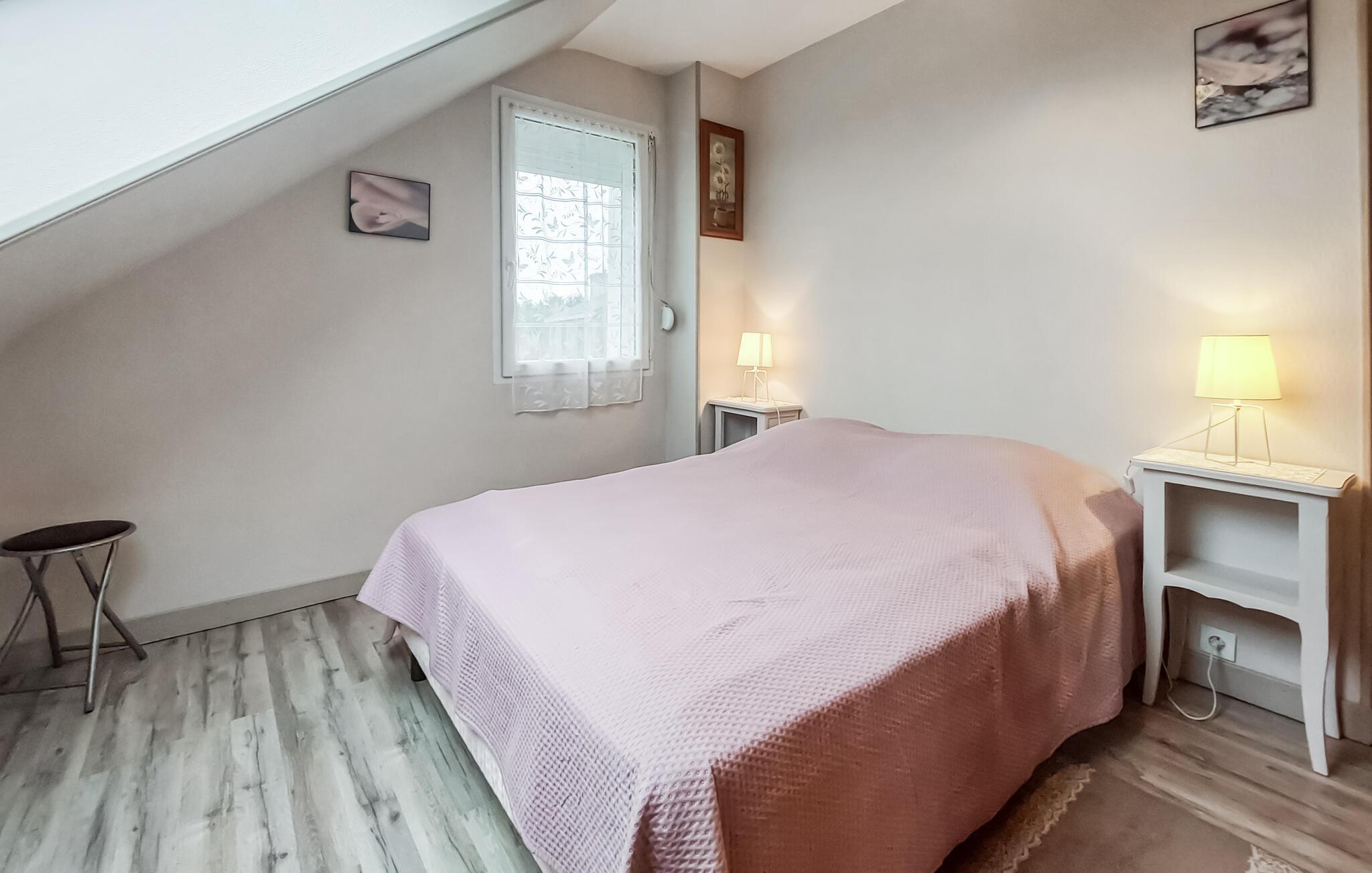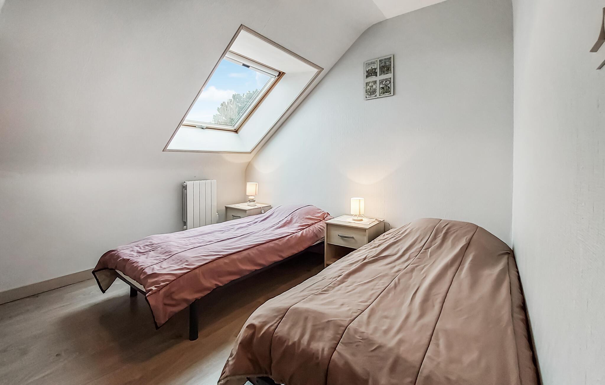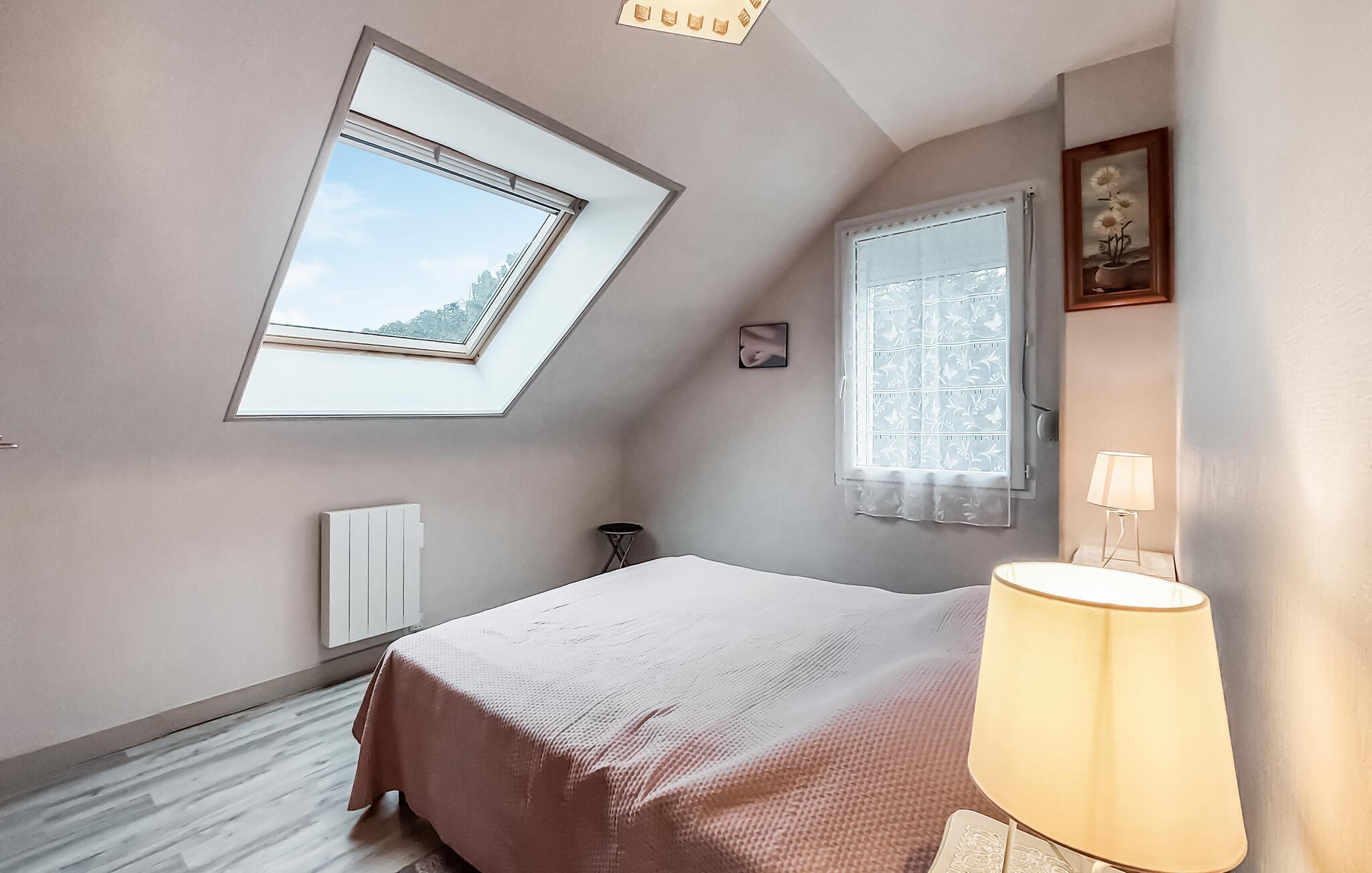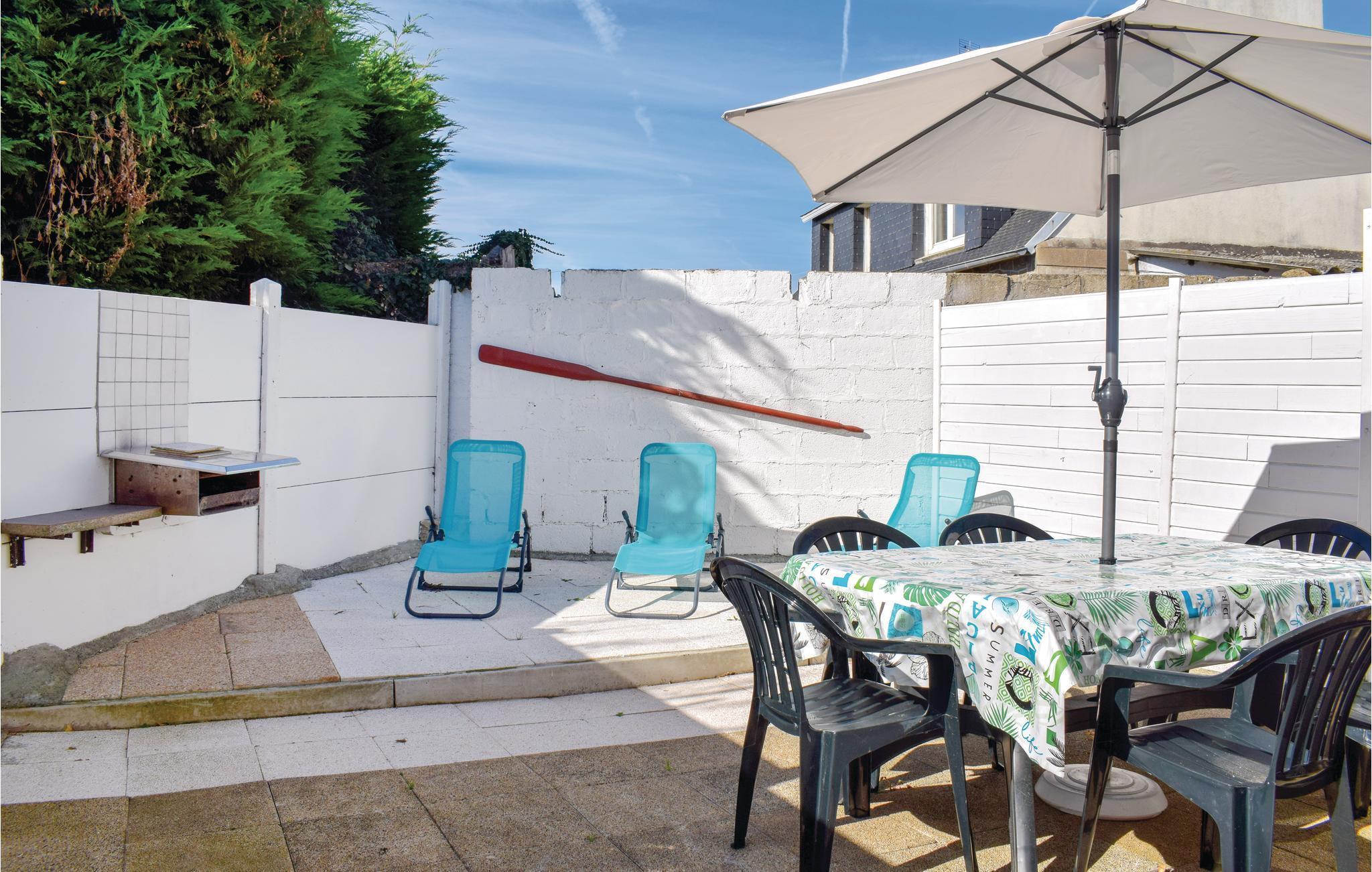 Der er adgang igennem en fælles port til grunden, som dette indbydende feriehus ligger på. Fælles indgangsområde i huset. Her nyder I godt af en rolig beliggenhed på en hovedsageligt uberørt halvø. Mod syd er der landligt område, og ved gavlen er der en græsplæne samt en møbleret terrasse med balustrade, der videre forløber ind i huset. Boligen byder på hyggelig indretning, og en gammel brødovn pynter stuen. I Pors-Guyon (2 km) med lille, uberørt strand bliver der avlet østers, der er den ideelle lejlighed til at smage dem helt frisk. Lige i nærheden ligger Sillon de Talbert. Denne 3,5 km lange odde, der er enestående i hele Europa, byder på herlige gåture i det fineste sand. Ved vandet venter en masse små, familievenlige strande som Pors Rand ved Kermagen. Fjernvandringsruten GR34 tager jer forbi mange dejlige klippebugter igennem kystområdet. Der er kun få kilometer til den historiske by Tréguier med dejlig katedral, og i Paimpol, også kaldet for islændingenes by, sker der noget året rundt: Musikfestivallen Chants des Marins, museer, regattaer, kammuslingens fest samt Fête des Vieux Gréements med koncerter, udstillinger, underholdning og loppemarkeder. I kan sejle til Bréhat-øen fra Arcouest på et kvarter. Tilbring en dejlig dag på øen, der også bliver kaldt blomsterøen grundet sin mangfoldige vegetation.