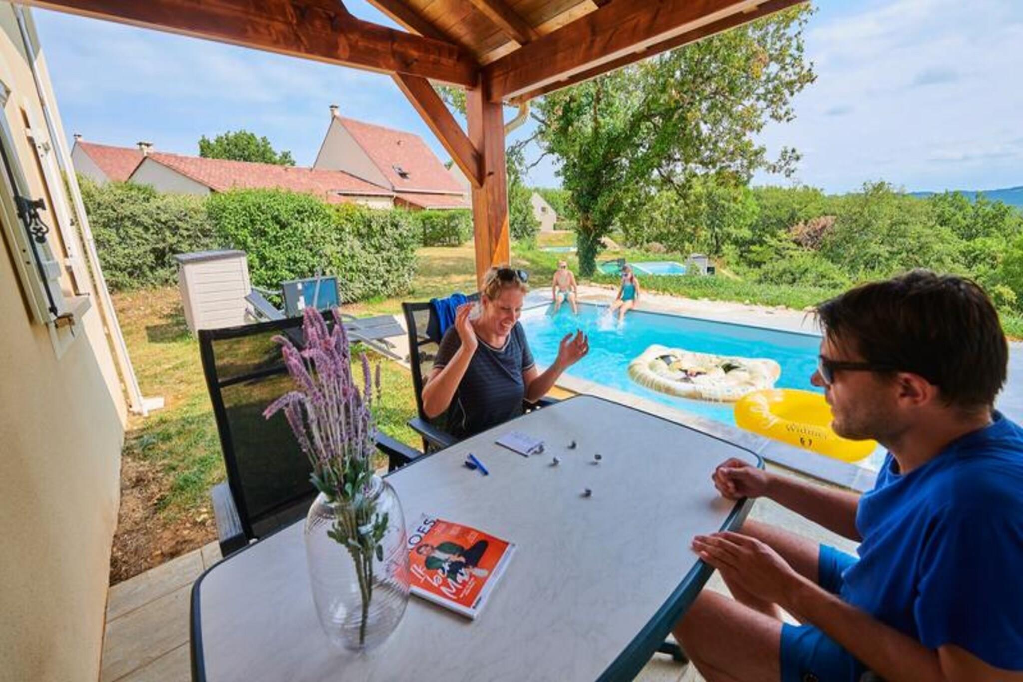 Midt i Dordognes bølgende bakker og solbeskinnede landskaber tilbyder denne luksuriøse, fritliggende bungalow en fredfyldt tilflugtssted for familier og venner. Her er hvert øjeblik fyldt med charmen fra det franske landskab, hvor rolige morgener ved din private pool og aftener under stjernerne skaber uforglemmelige minder. Ejendommens rummelige design og gennemtænkte faciliteter gør det til et perfekt tilflugtssted for dem, der søger både komfort og stil.\n\nTræd indenfor og oplev en 85 m² stor oase af moderne elegance. Stuen indbyder til afslapning med sine bløde siddepladser og digital-tv med internationale kanaler. Det fuldt udstyrede køkken kan prale af high-end apparater, herunder opvaskemaskine, induktionskogeplade og Nespresso-kaffemaskine, hvilket sikrer, at hvert måltid er en fornøjelse at tilberede. Tre hyggelige soveværelser med boxmadras lover afslappende nætter, mens det rummelige badeværelse med badekar og bruser tilføjer et strejf af forkælelse. For ekstra bekvemmelighed er der vaskemaskine og tørretumbler inkluderet, hvilket gør længere ophold ubesværede.\n\nUdenfor har den store overdækkede terrasse udsigt over din private pool, der er åben fra midten af ??april til slutningen af ??oktober, og giver uendelige muligheder for solrige eftermiddage og forfriskende svømmeture. Det omkringliggende område er rigt på naturlig skønhed og kulturskatte, med charmerende landsbyer, historiske slotte og naturskønne vandrestier kun en kort køretur væk. \n\nUanset om du udforsker Dordognes vidundere eller blot slapper af i din private oase, lover denne bungalow en ferie fyldt med afslapning, eventyr og værdsatte øjeblikke. Book dit ophold nu og oplev magien i det franske landskab.