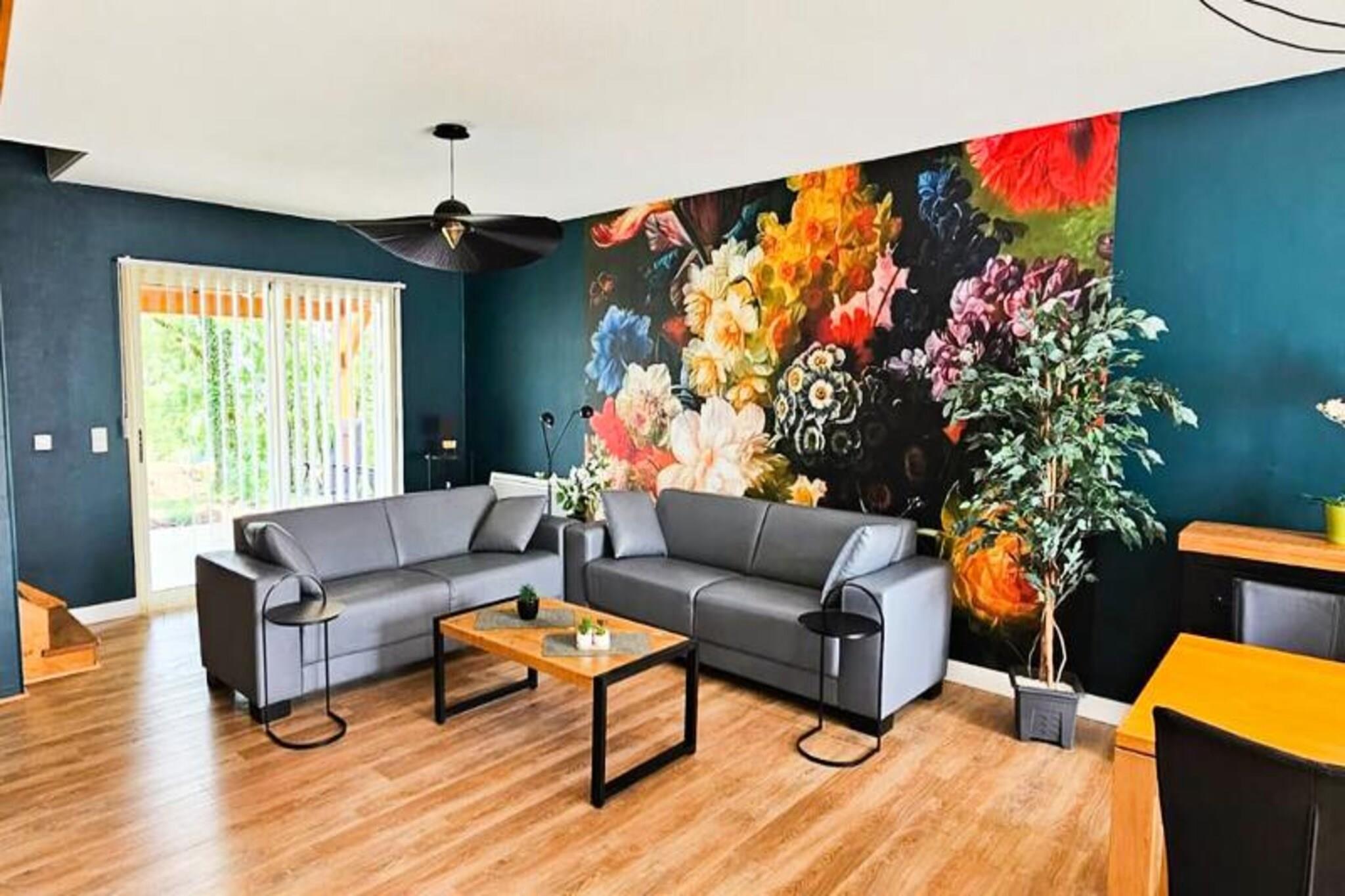 Midt i Dordognes bølgende bakker og frodige landskaber tilbyder denne rummelige villa et roligt tilflugtssted for familier og venner, der søger ro og komfort. Forestil dig at vågne op til naturens blide lyde, nyde din morgenkaffe på den overdækkede terrasse og se sollyset danse hen over din private pool. Disse idylliske omgivelser inviterer dig til at slappe af og fordybe dig i den franske landskabs skønhed, hvor hvert øjeblik føles som et frisk pust. \n\nVillaen er på 140 m² og er omhyggeligt designet til at rumme op til otte gæster. Stueetagen har et soveværelse med eget badeværelse, mens der er tre ekstra soveværelser ovenpå, der hver er udstyret med to komfortable senge. Et andet badeværelse med badekar og bruser sikrer bekvemmelighed for alle. Den rummelige stue med Canal Digital-tv tilbyder et hyggeligt sted at slappe af, mens det moderne køkken er fuldt udstyret til at tilberede lækre måltider sammen. Uanset om du laver et festmåltid eller nyder lokal vin på terrassen, tilbyder denne villa den perfekte blanding af praktisk anvendelighed og charme.\n\nDordogne-regionen i nærheden lokker med sin rige historie, maleriske landsbyer og kulinariske lækkerier. Udforsk middelalderborge, slentre gennem pulserende markeder, eller nyd udendørsaktiviteter som vandreture og cykling. For familier tilføjer de nærliggende swimmingpools, vandrutsjebaner og legepladser et ekstra lag af sjov til dit ophold. Tennisbaner og andre sportsfaciliteter er også inden for rækkevidde, hvilket sikrer, at der er noget for enhver smag.\n\nMed sin private pool, betagende udsigt og nærhed til lokale attraktioner er denne villa mere end bare et feriehus - det er en invitation til at skabe varige minder i en af ??Frankrigs mest fortryllende regioner.
