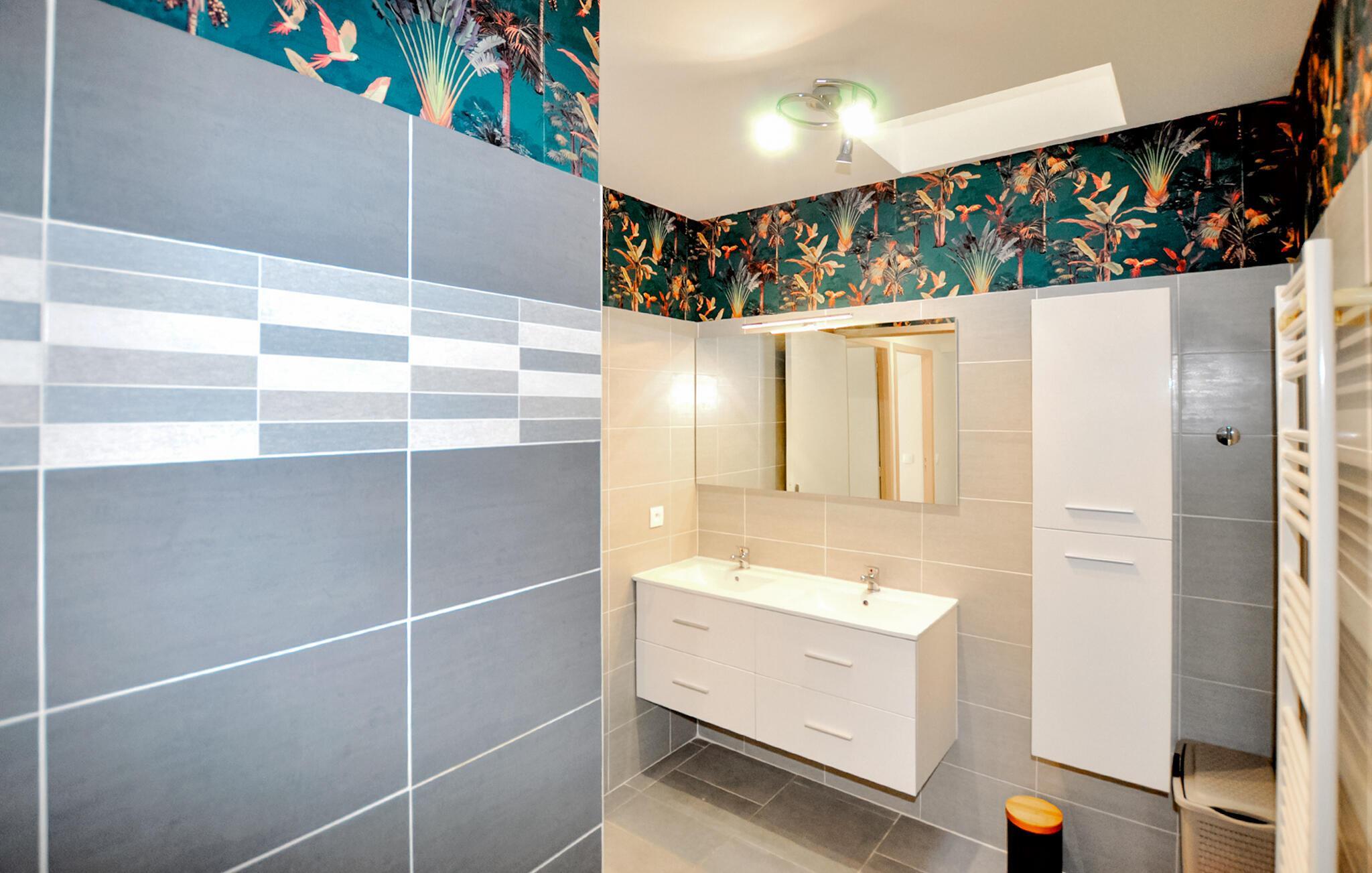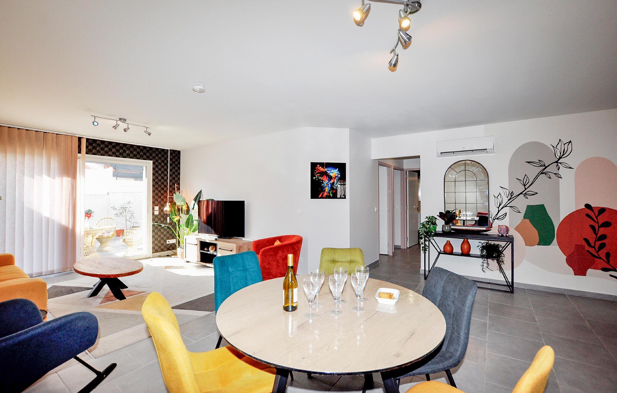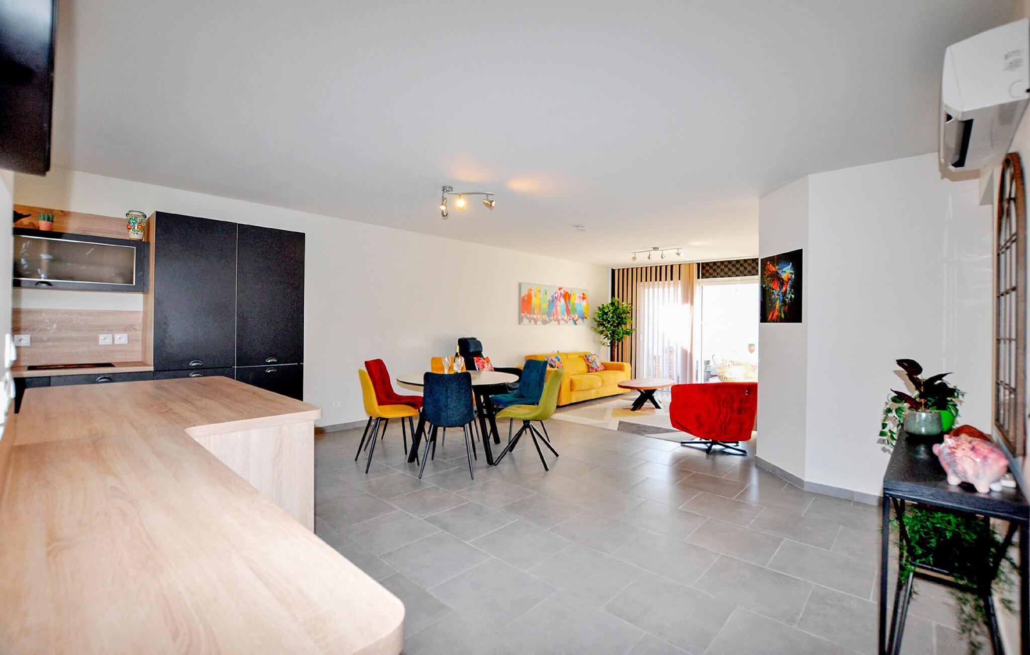Træd ind og føl jer hjemme fra dag ét i dette indbydende feriehus, der byder jer velkommen med farverige accenter og moderne bekvemmeligheder. Tilbered jeres yndlingsretter sammen i det åbne, fuldt udstyrede køkken og fejr jeres måltider ved det stilfulde spisebord. Efter en begivenhedsrig dag med udflugter kan I føle jer godt tilpas i sofaen og tilbringe tid sammen med at spille et brætspil eller se en spændende film.