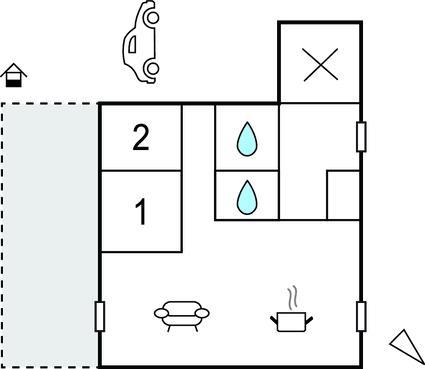 Opholdsstue 40m2 - 2 Sovepladser. (Sofa, madras eller lignende).