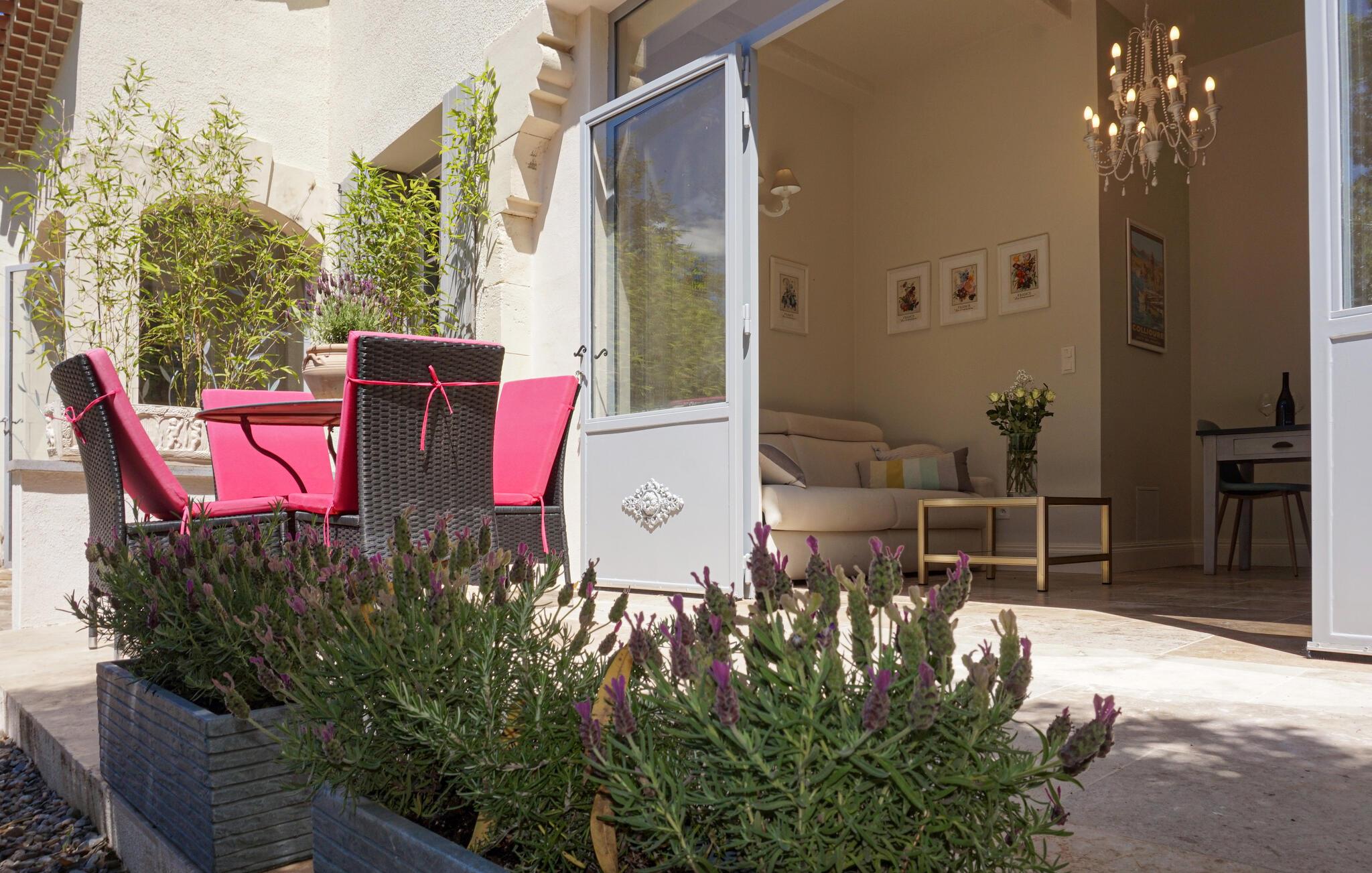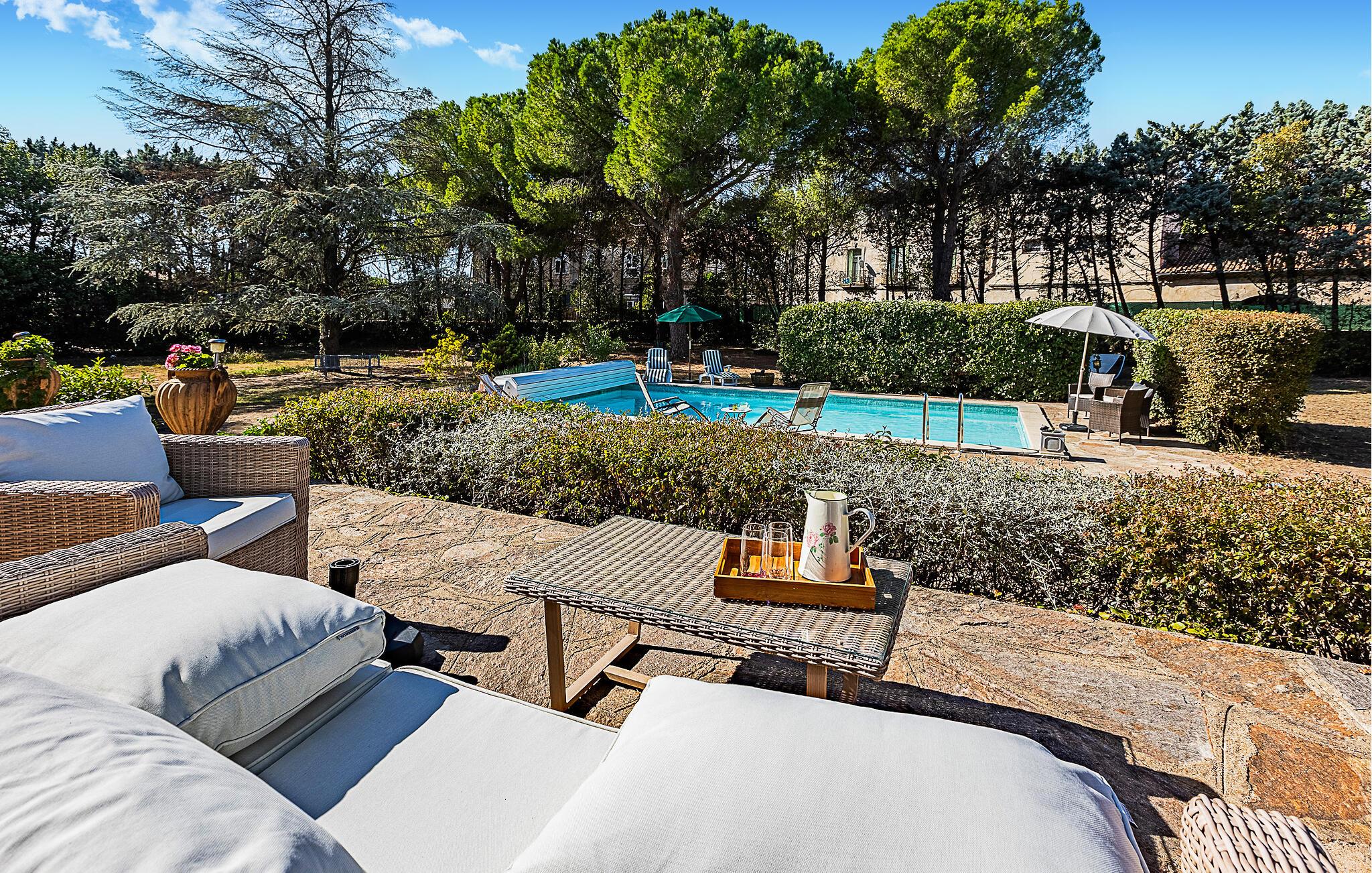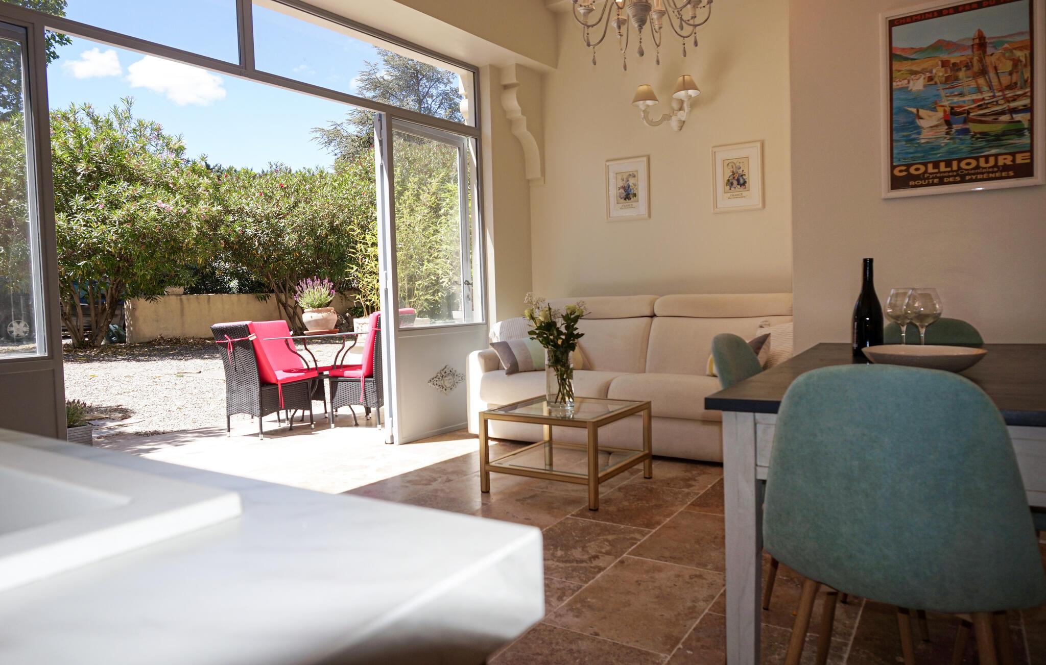 Tag hele familien med på ferie i det charmerende hus i Laurens. De stilfulde værelser indbyder til afslapning, når I vender hjem efter en aktiv dag i det smukke område. Huset byder på masser af plads, og det ene soveværelse har eget badeværelse. Start jeres morgen med en forfriskende dukkert i poolen, inden I samles om en lækker morgenmad enten i spisestuen eller på terrassen. Senere vil det være oplagt at nyde eftermiddagssolen ved poolen, hvor liggestolene sørger for komforten og de store træer tilbyde et skyggefuldt sted på de varmeste dage. I tilbygningen finder I en lille lejlighed, hvor to af gæsterne kan indlogeres, hvis I ønsker lidt mere privatliv. Sommeraftenerne vil helt sikkert tilbringes på en af terrasserne, hvor I let kan tilberede friske, lokale råvarer i udekøkkenet.