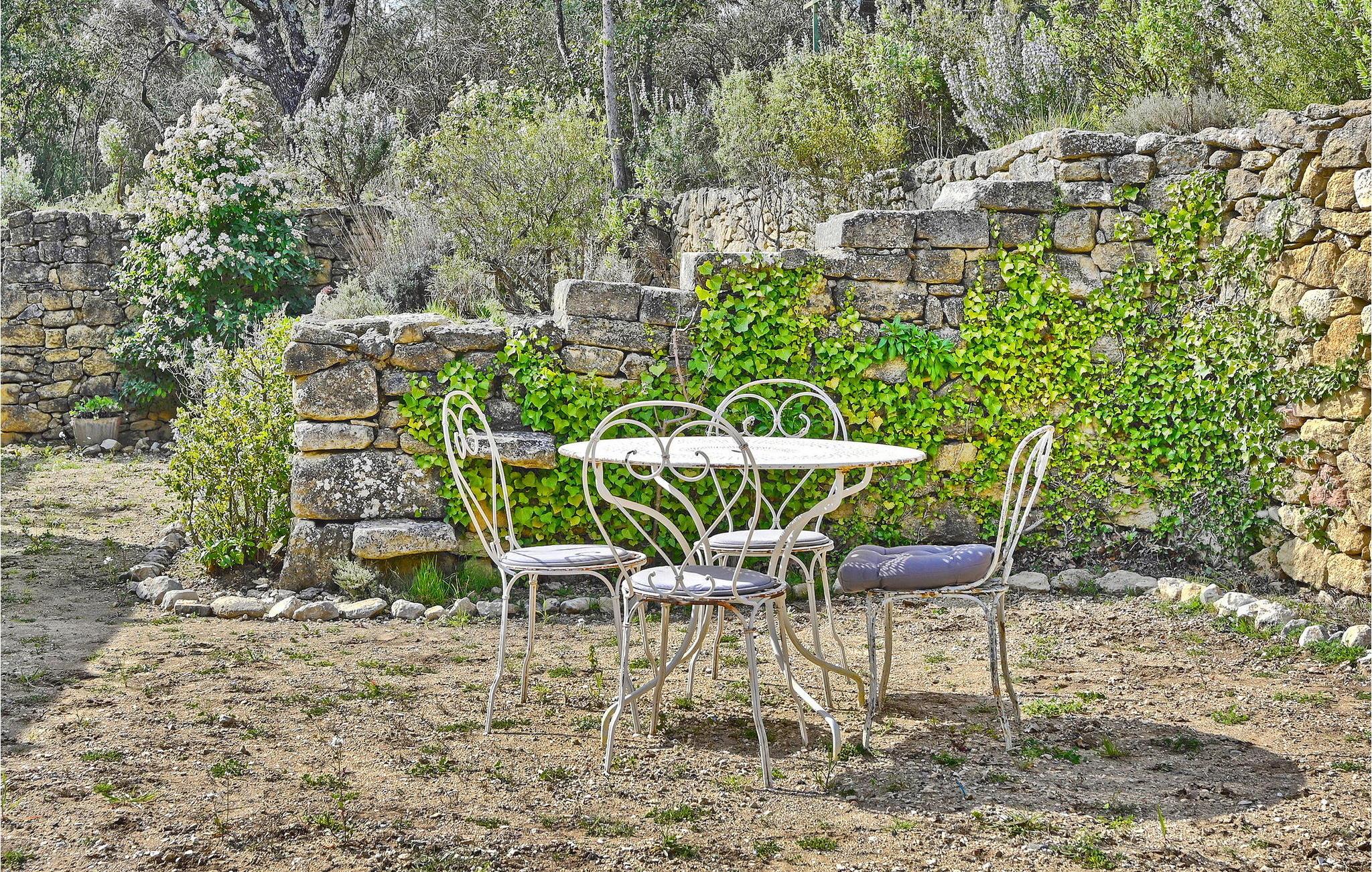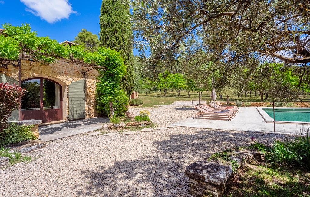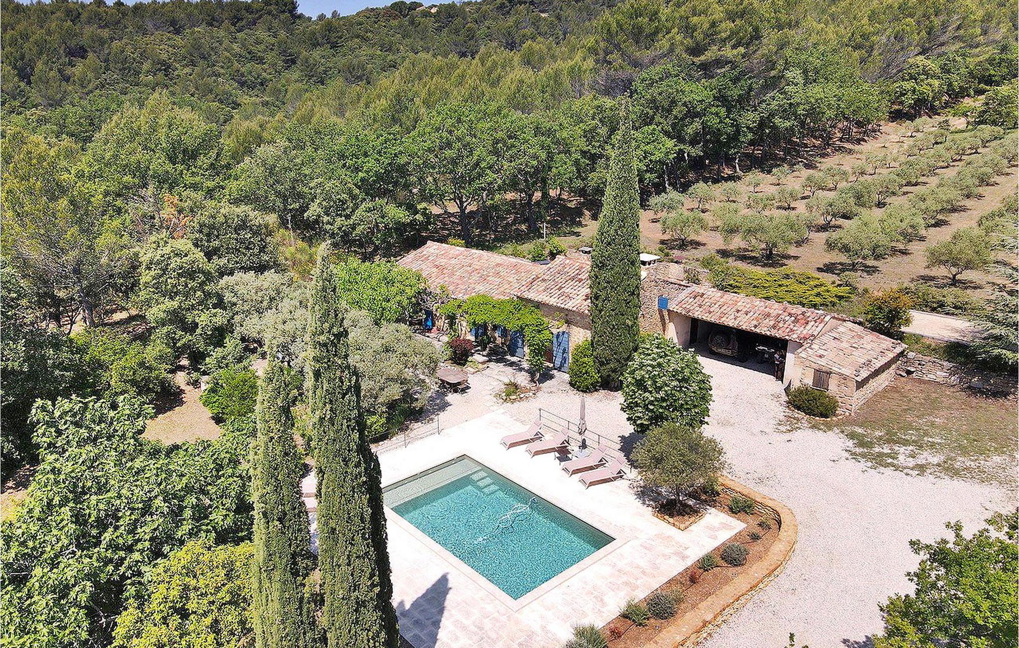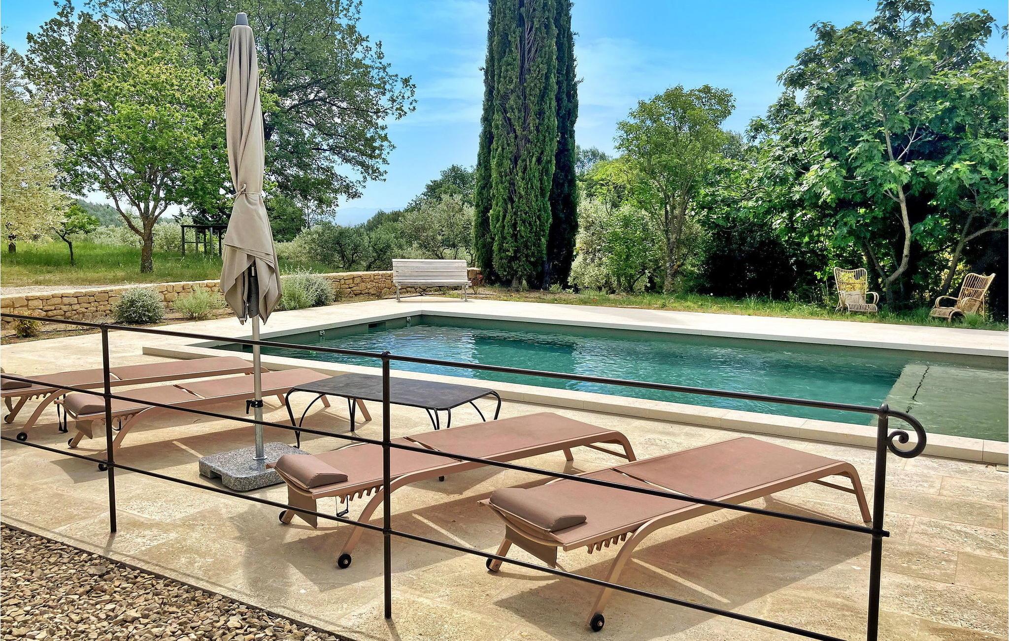 Poolen (8m x 4.5m) er sikret med en rulleskodde og har liggestole til afslapning. Huset er beliggende i hjertet af et skovområde med direkte adgang til vandre- og vandrestierne i Luberon.