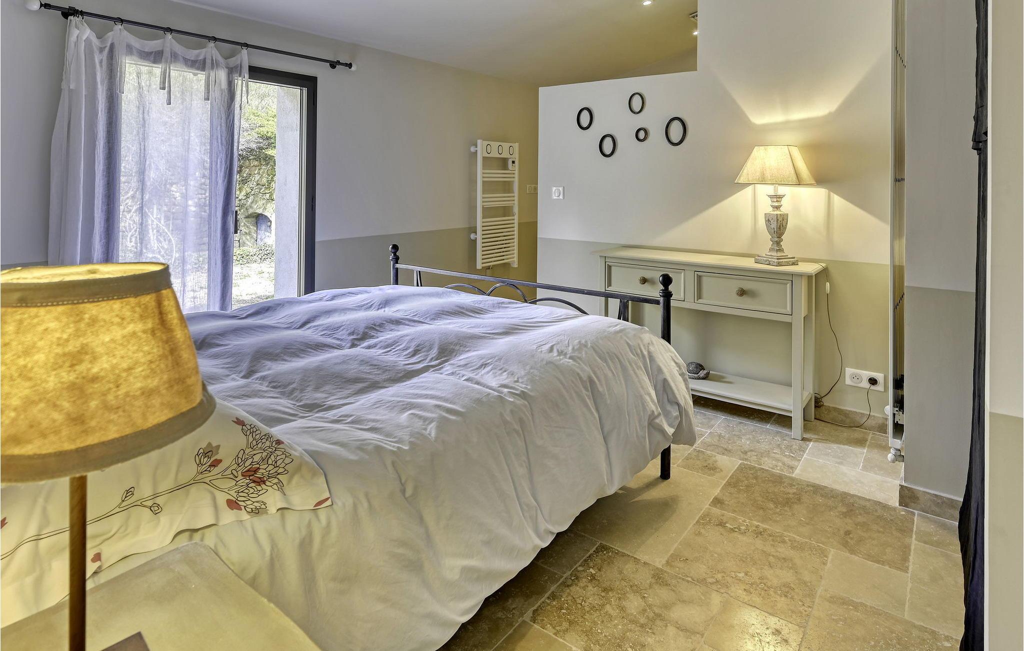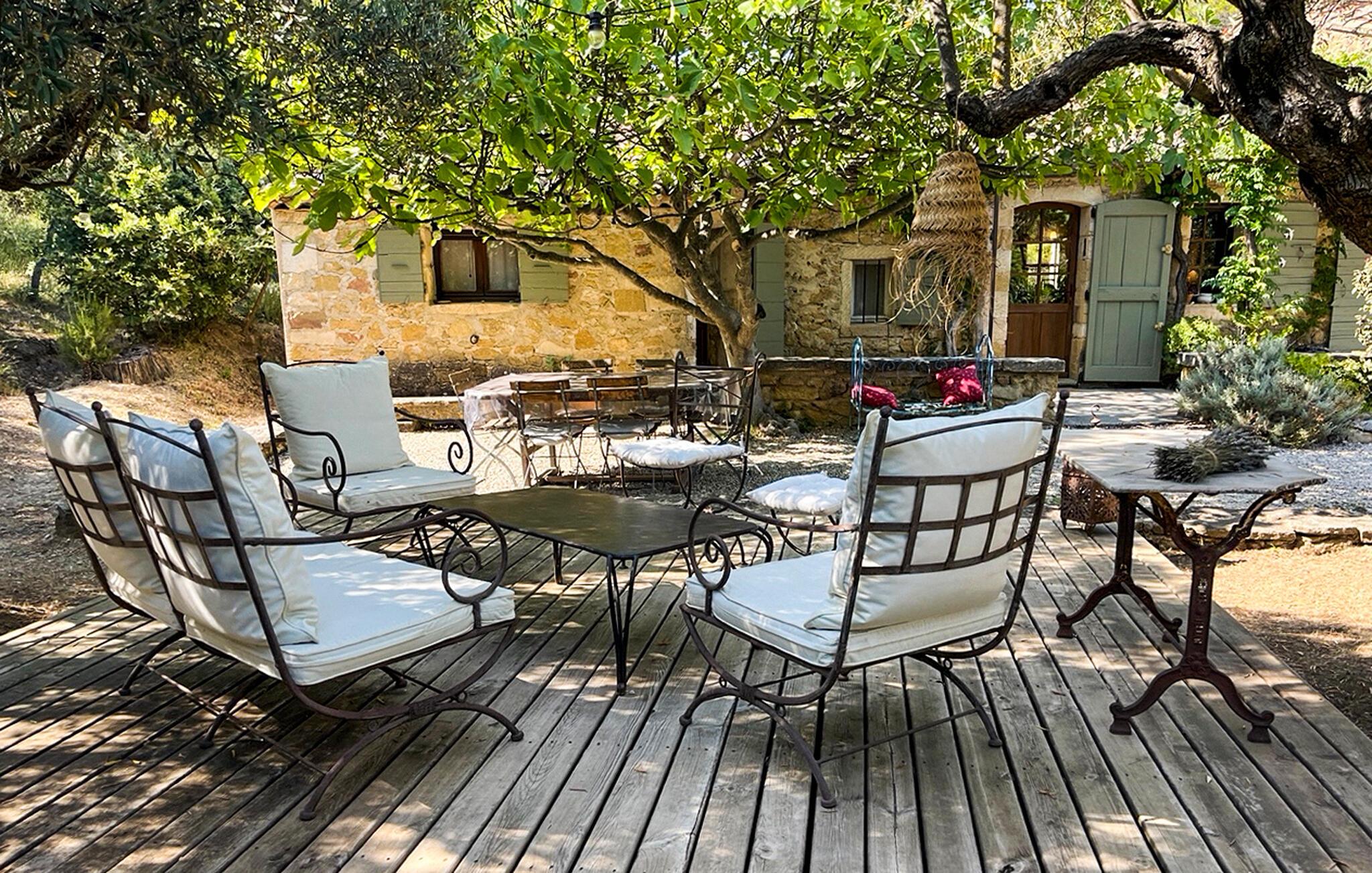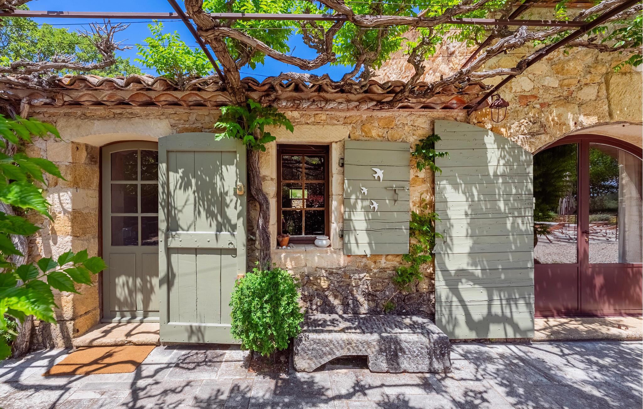 Poolen (8m x 4.5m) er sikret med en rulleskodde og har liggestole til afslapning. Huset er beliggende i hjertet af et skovområde med direkte adgang til vandre- og vandrestierne i Luberon.