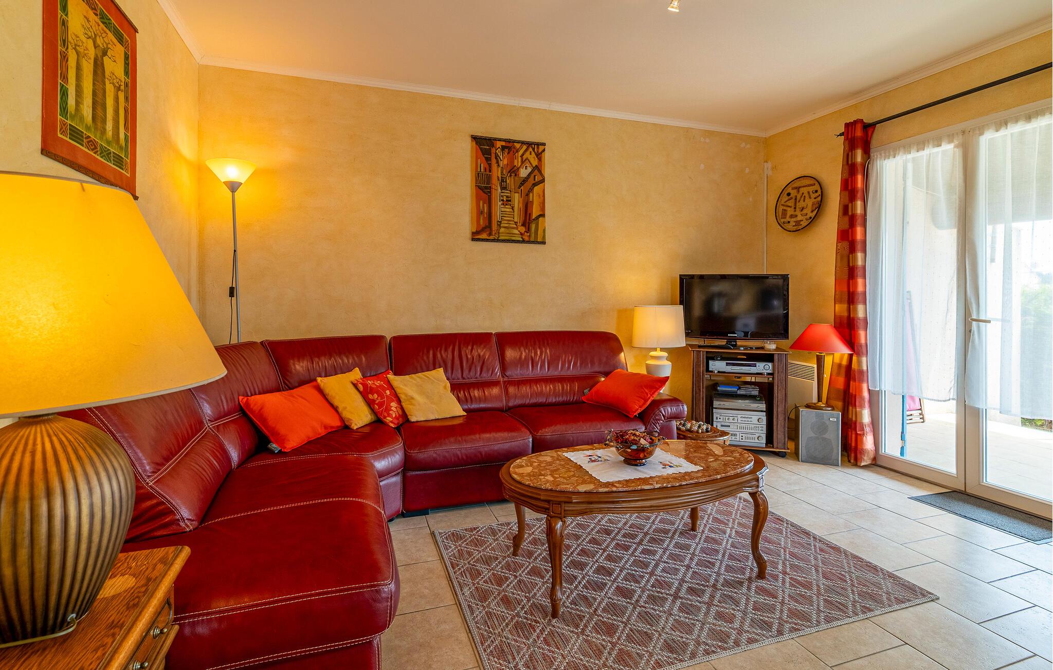 Dette behagelige og veludstyrede feriehus ligger i et roligt boligområde i udkanten af ??Lauris. I bor på første sal i dette rolige hus, som er semi-adskilt fra ejeren (der er en privat garage i haveniveau). I kan nyde den store, murede have samt et bordtennisbord, en klatrestativ, spil og selvfølgelig den vidunderlige swimmingpool med fuldstændig privatliv.