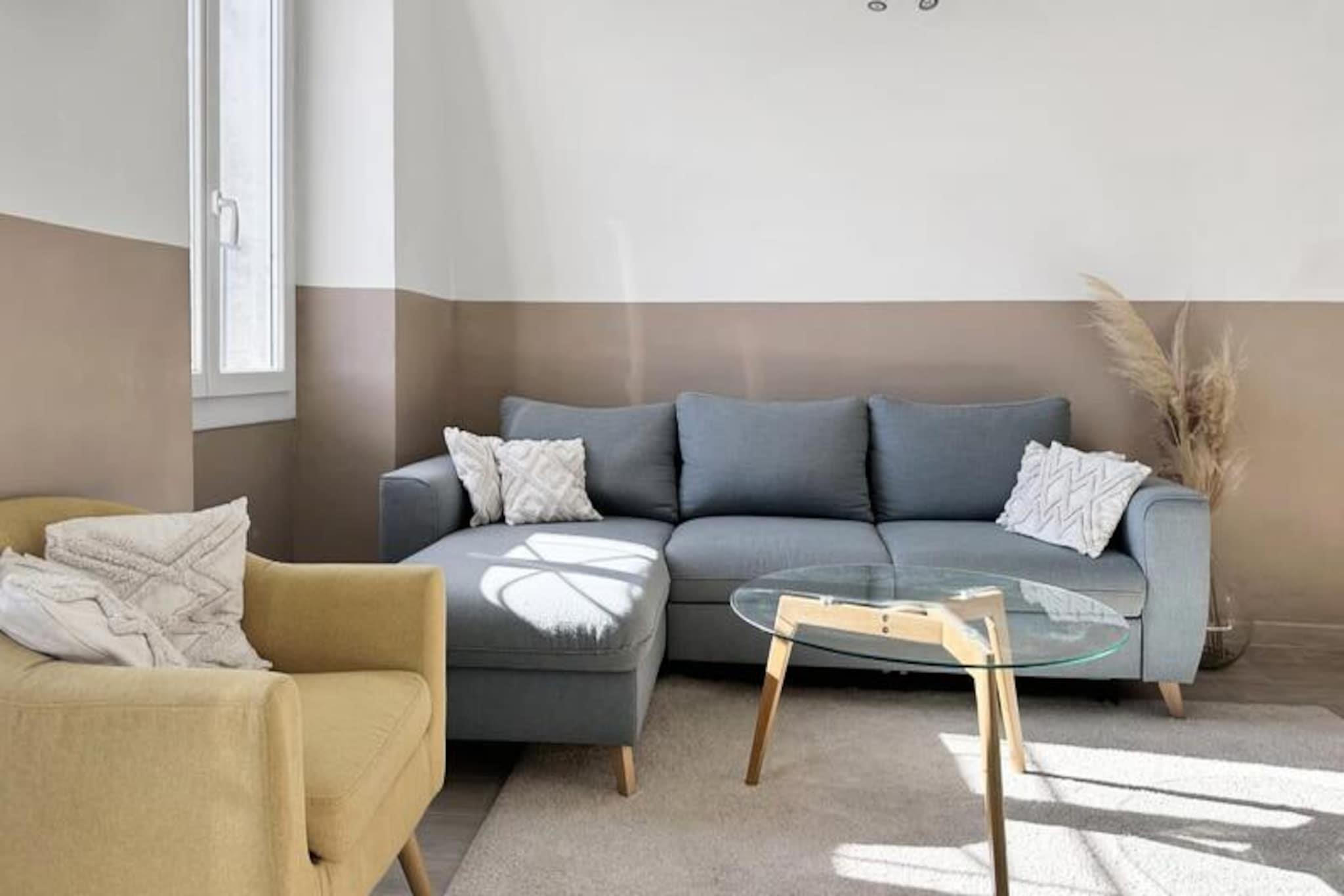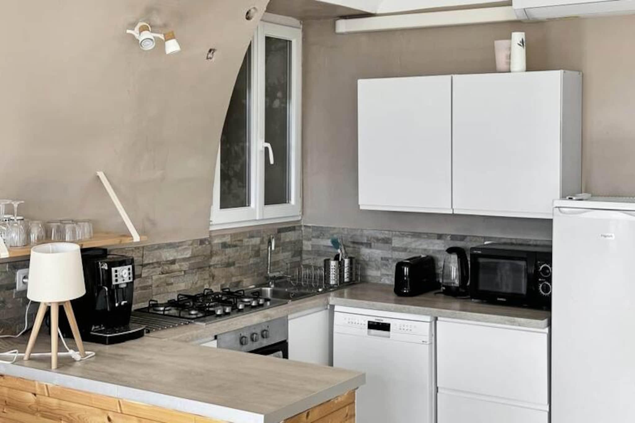 Denne charmerende hvælvede lejlighed, beliggende i hjertet af Lauris, tilbyder en fantastisk udsigt over Durance-dalen, der strækker sig fra Sainte-Victoire til Alpilles. Den kan komfortabelt rumme op til 4 gæster, med fleksibilitet til at være vært for op til 7, takket være en sovesofa og ekstra seng. Ejendommen er kæledyrsvenlig, hvilket giver mulighed for et mere afslappet og behageligt ophold. Lejligheden er perfekt beliggende for at udforske lokalområdet, med nærliggende attraktioner såsom lokale caféer, markeder og den smukke landsby Lauris. Den omkringliggende region Provence er fuld af naturskønhed, hvilket gør den til en ideel base for udendørsaktiviteter og kulturel udforskning. Du kan nemt få adgang til nærliggende attraktioner såsom Sainte-Victoire-bjerget og Alpilles samt charmen ved lokale vinmarker og landsbyer. Indvendigt har lejligheden en rummelig stue med sofa, lænestol og tv. Det veludstyrede køkken omfatter ovn, mikroovn, køleskab, kaffemaskine og mere, perfekt til at tilberede måltider. De to soveværelser tilbyder komfortable sovearrangementer, mens badeværelset har en dobbelt håndvask, badekar, håndklædetørrer og hårtørrer. En privat terrasse og gårdhave tilbyder et fredeligt udendørsområde.