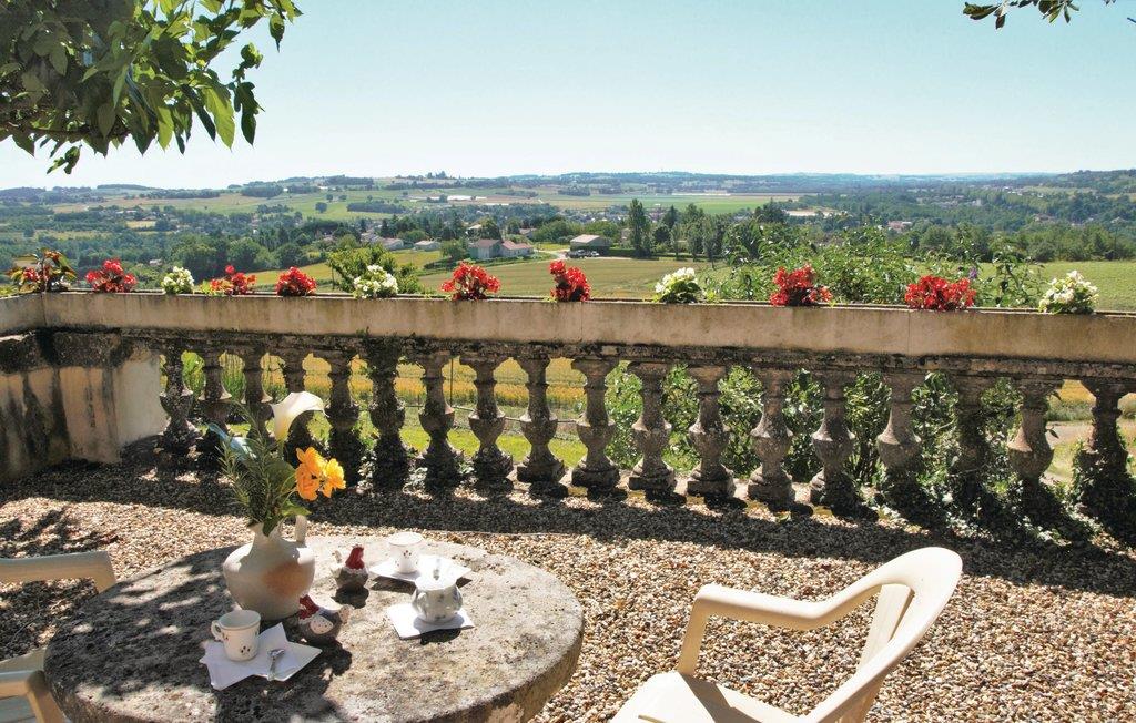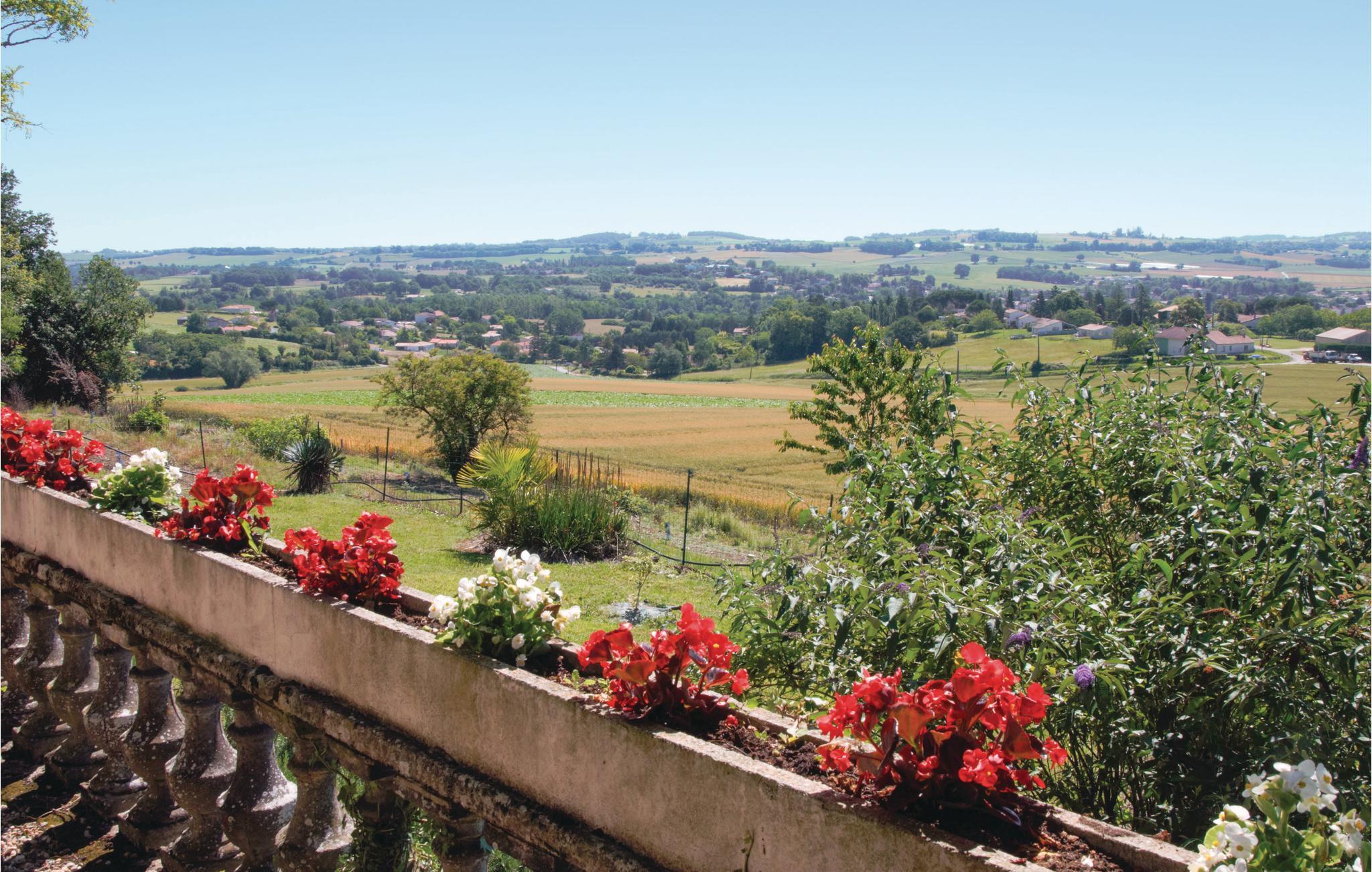 Nyd frokosten på terrassen med udsigt over det omkringliggende landskab. En trappe forbinder den panoramaterrassen med haven nedenfor. To af de fire soveværelser er indbyrdes forbundet.
