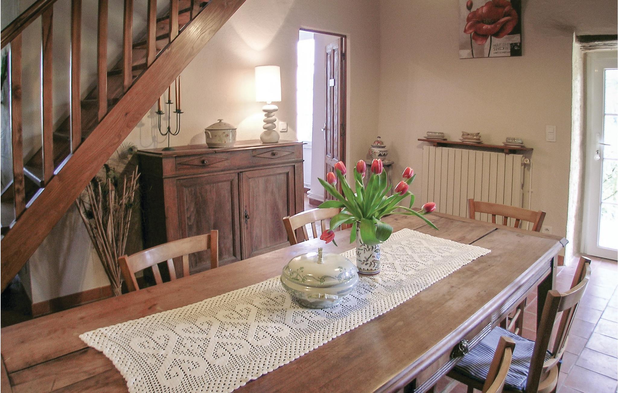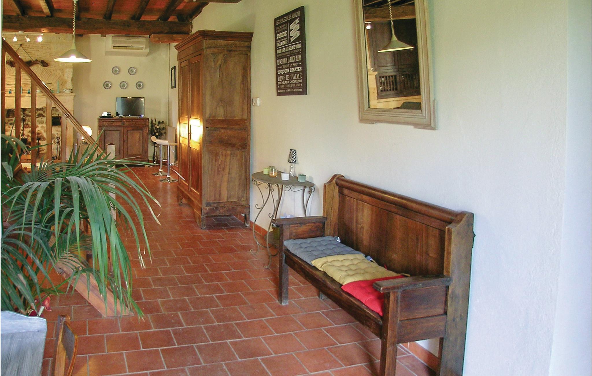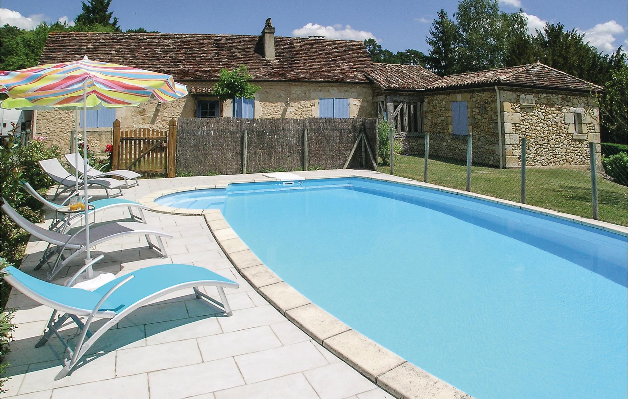 Dette dejlige feriehus er bygget af sten og ligger 12 km nord for Bergerac, i udkanten af den rolige landsby Laveyssière. Huset, der tidligere var et forsamlingshus, har gennemgået en omhyggelig renovering med bevarelse af fortidens charme: med en gammel vask, en pejs, stenvægge og frilagte træbjælker. Det tager to minutter at gå til jeres private pool med udsigt over landeskabet og landsbyen. De to soveværelser i stueetagen er komfortabelt indrettede og har en behageligt kølig temperatur i de varme sommermåneder. Om morgenen kan kaffen og de nybagte croissanter nydes på den overdækkede terrasse. Bortset fra en traktor nu og da, er der meget lidt trafik. Her er der fred og ro til spadsereture gennem landskaberne. Prøv også en tur i svævebanen i Acrozabres 1 km væk. Monbazillac (22 km), Bergerac (12 km), Clos des Elfes restaurant (200 meter) er åben hele året rundt. Issigeac, golfbane 35 km, Château des Vigiers 31 km, Eymet 39 km. Brantôme (65 km), også kendt som Perigords Venedig, er en vidunderlig destination med souvenirbutikker, restauranter, kanoudlejning, guidede bådture og et smukt kloster