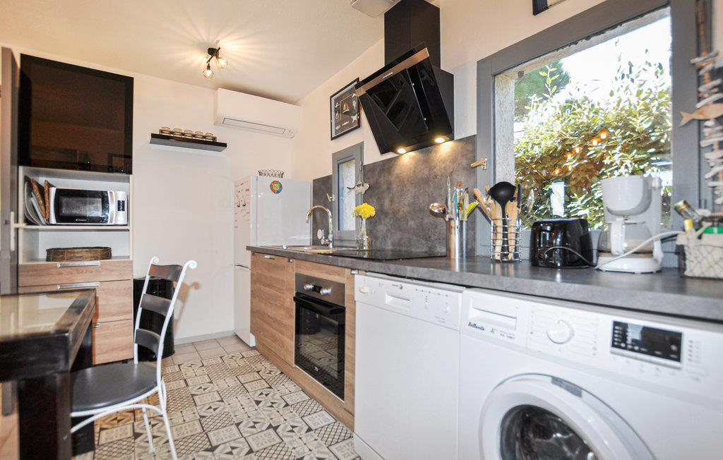Fra huset har I udgang til en charmerende og komfortabelt møbleret terrasse med udsigt til vandet og en grill til hyggelige grillaftener. I kan også anvende poolen og liggestolene i fællesområdet.