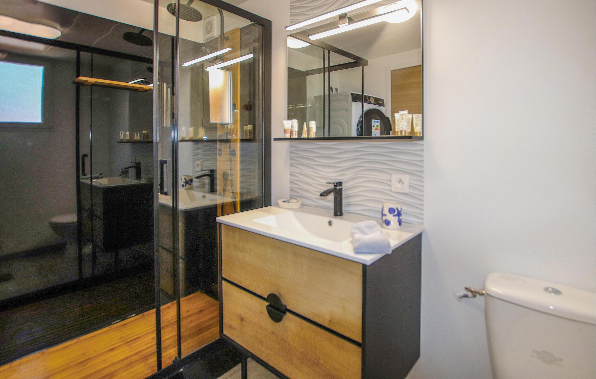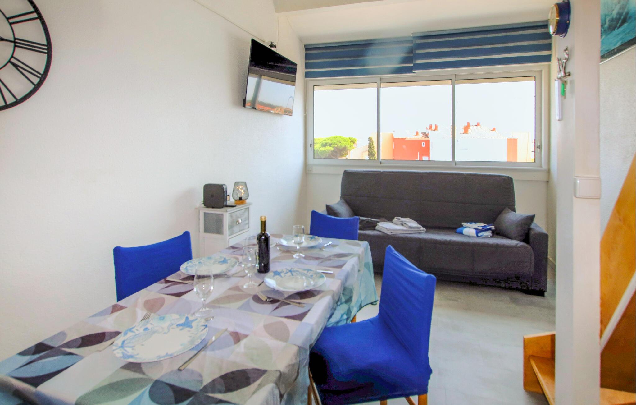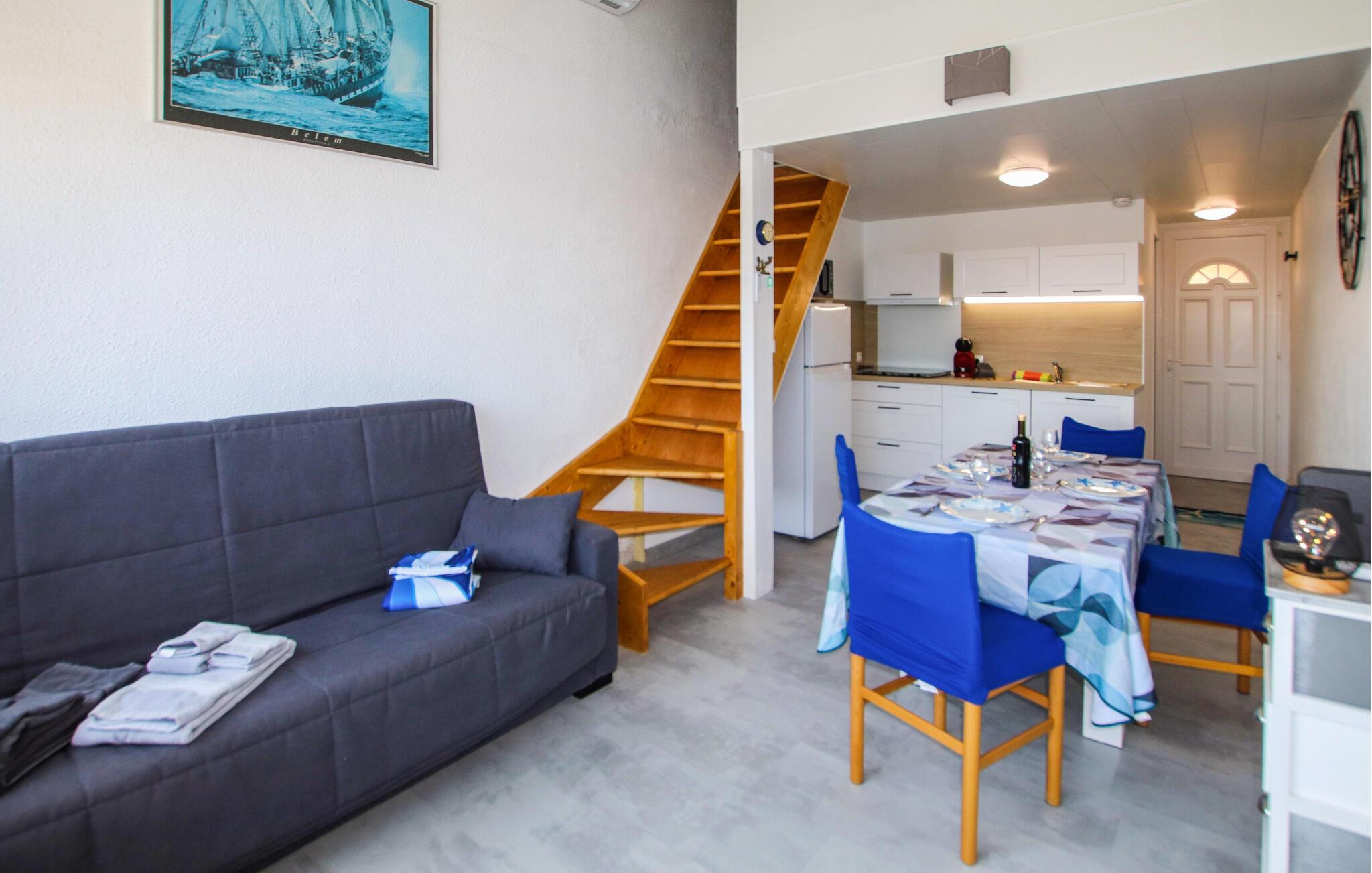 Nyd nogle afslappende dage i denne ferielejlighed, der giver jer de ideelle rammer for en afslappende ferie. Faciliteterne, herunder et funktionelt køkken, en komfortabel sofa og et tv, skaber en behagelig atmosfære, hvor I straks vil føle jer hjemme. Begynd dagene med en velduftende espresso eller gør et lækkert måltid klar, måske ledsaget af et glas fransk vin.