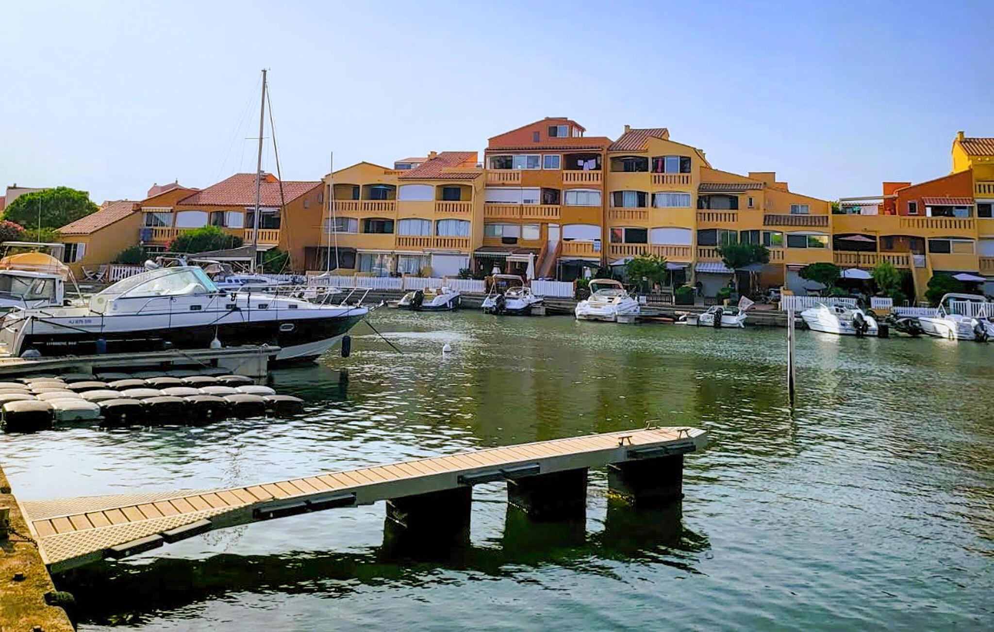 Dæk op til morgenmad, aftensmad eller tilbring nogle afslappende timer i solen på den charmerende, delvist overdækkede tagterrasse med lille sommerkøkken. Herfra kan I nyde en vidunderlig udsigt over vandet. Den fælles pool giver mulighed for en forfriskende dukkert i solen. Børnene vil finde et udvalg af underholdning i deres eget legeområde, mens teenagere kan boltre sig i skateparken.