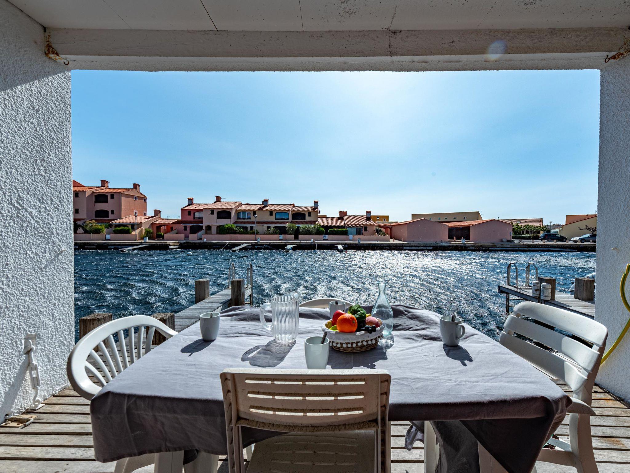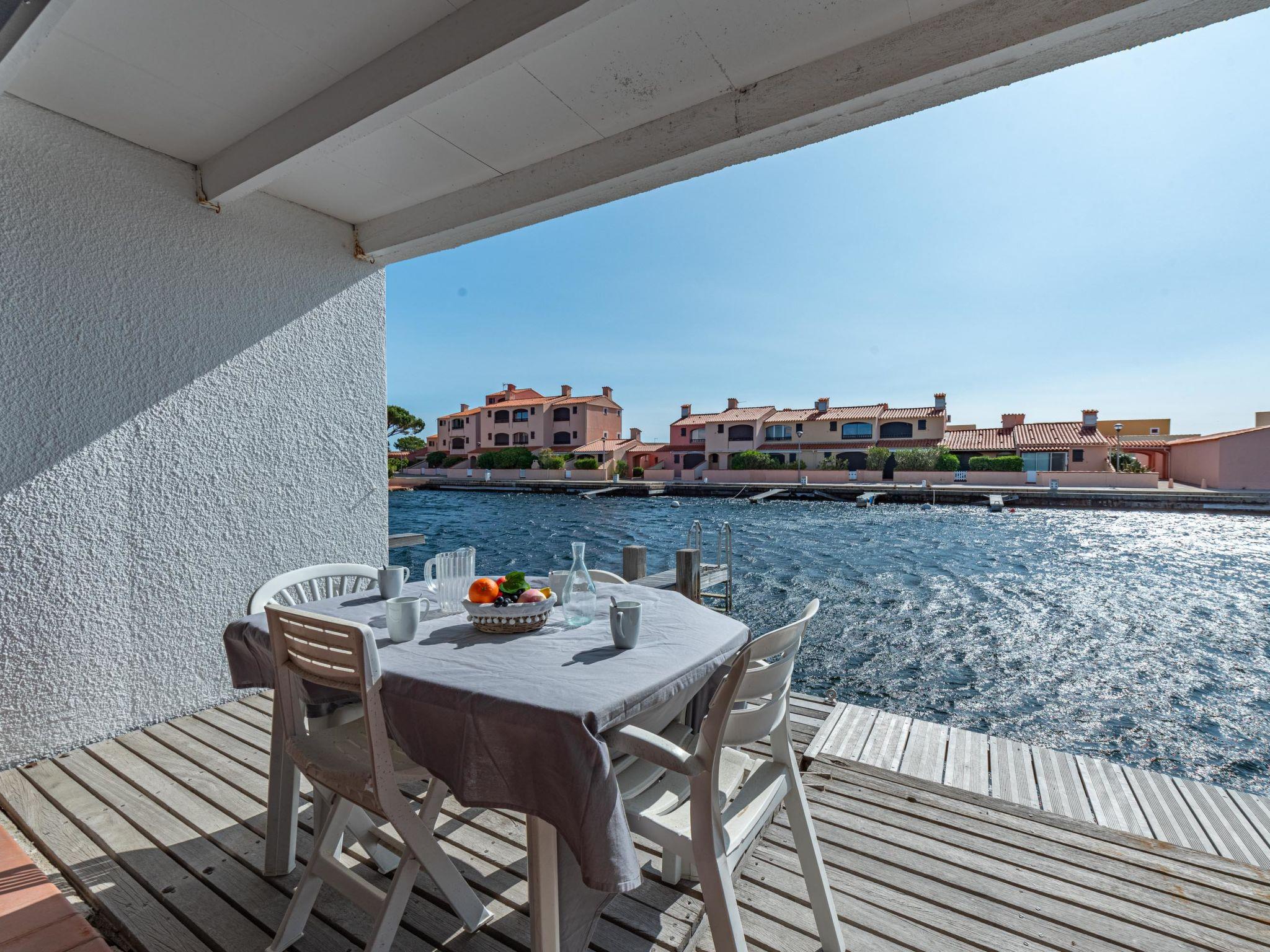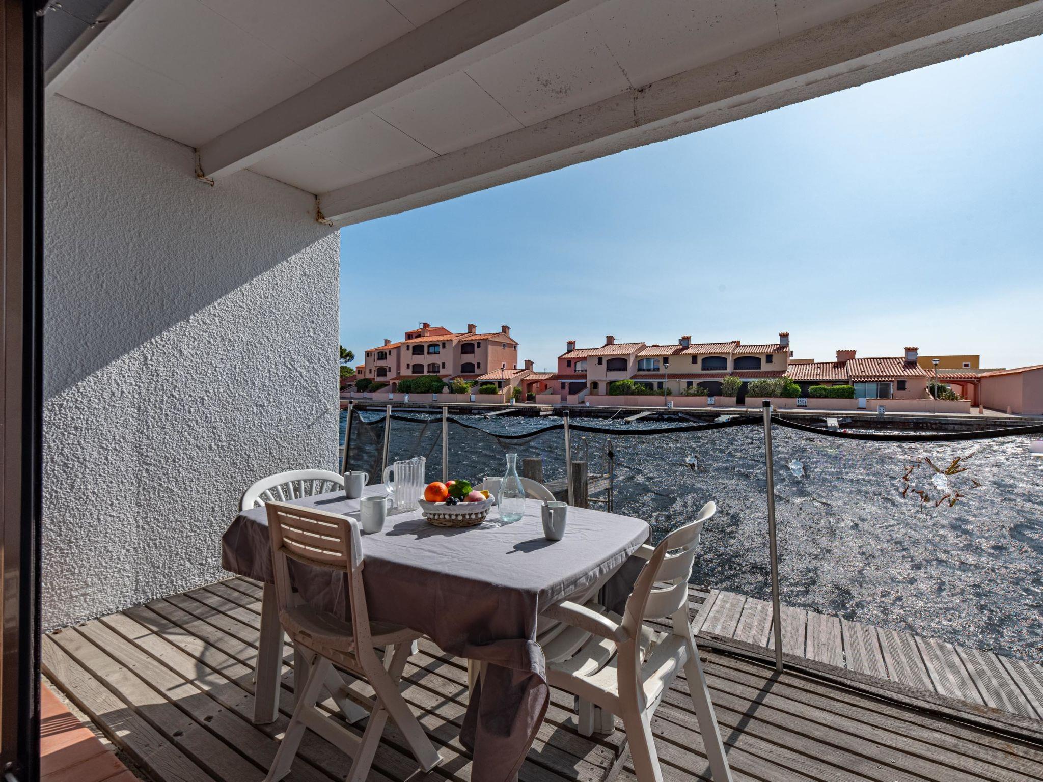 Residence "Les Brigantins". On the outskirts, 3 km from the sea, 50 m from the lake, 3 km from the beach, in a cul-de-sac. For shared use: natural pond, public parking 80 m. Grocery 3 km, supermarket 5 km, shopping centre 4 km, restaurant 2 km, bar 2 km, bakery 3 km, bus stop "Le Barcarès" 600 m, railway station "La Franqui" 16 km, sandy beach 3 km, diving center 6 km, outdoor swimming pool 4 km, nudist beach 5 km. Sports harbour 7 km, surf school 1 km, sailing school 3 km, tennis 3 km, minigolf 5 km, riding stable 9 km. Nearby attractions: Aqualand Port Leucate 7 km, Réserve Africaine de Sigean 41 km, Fort de Salses 20 km, Narbonne 55 km, Perpignan 25 km, Barcelone 215 km. Well-known lakes can easily be reached: Etang de Leucate ou Salses 7 km, Lac de Villeneuve de La Raho 28 km. Hiking paths: Sentier du guetteur 8 km, Station meteorologique de Opoul Perillos 25 km, Sentier du littoral Collioure 40 km. Please note: car recommended. Residence with electric gates. The photograph shows a typical example. Additional accommodations can be booked. Protection barrier on the pontoon.