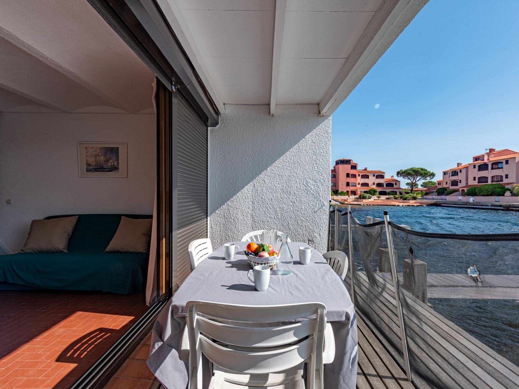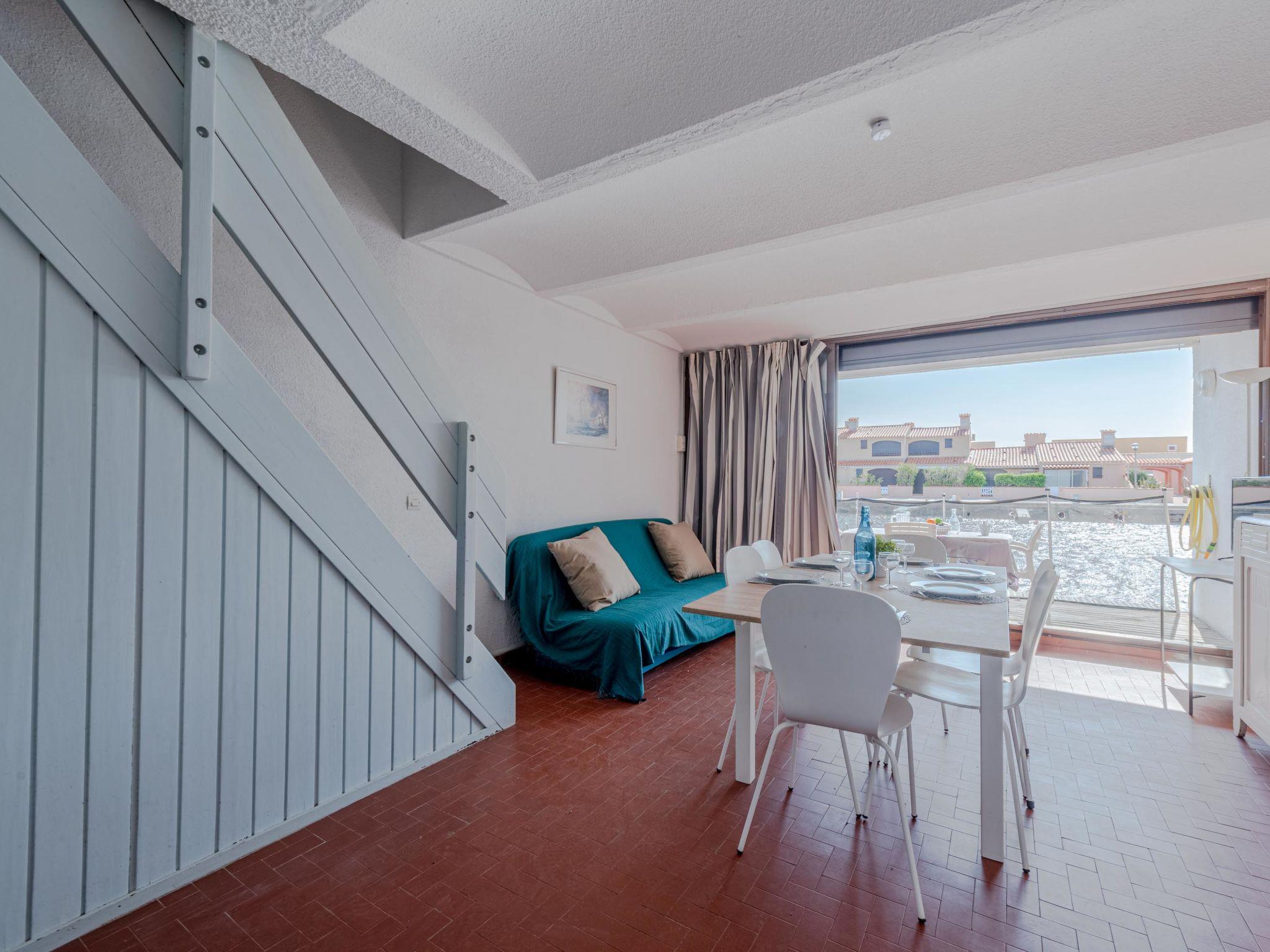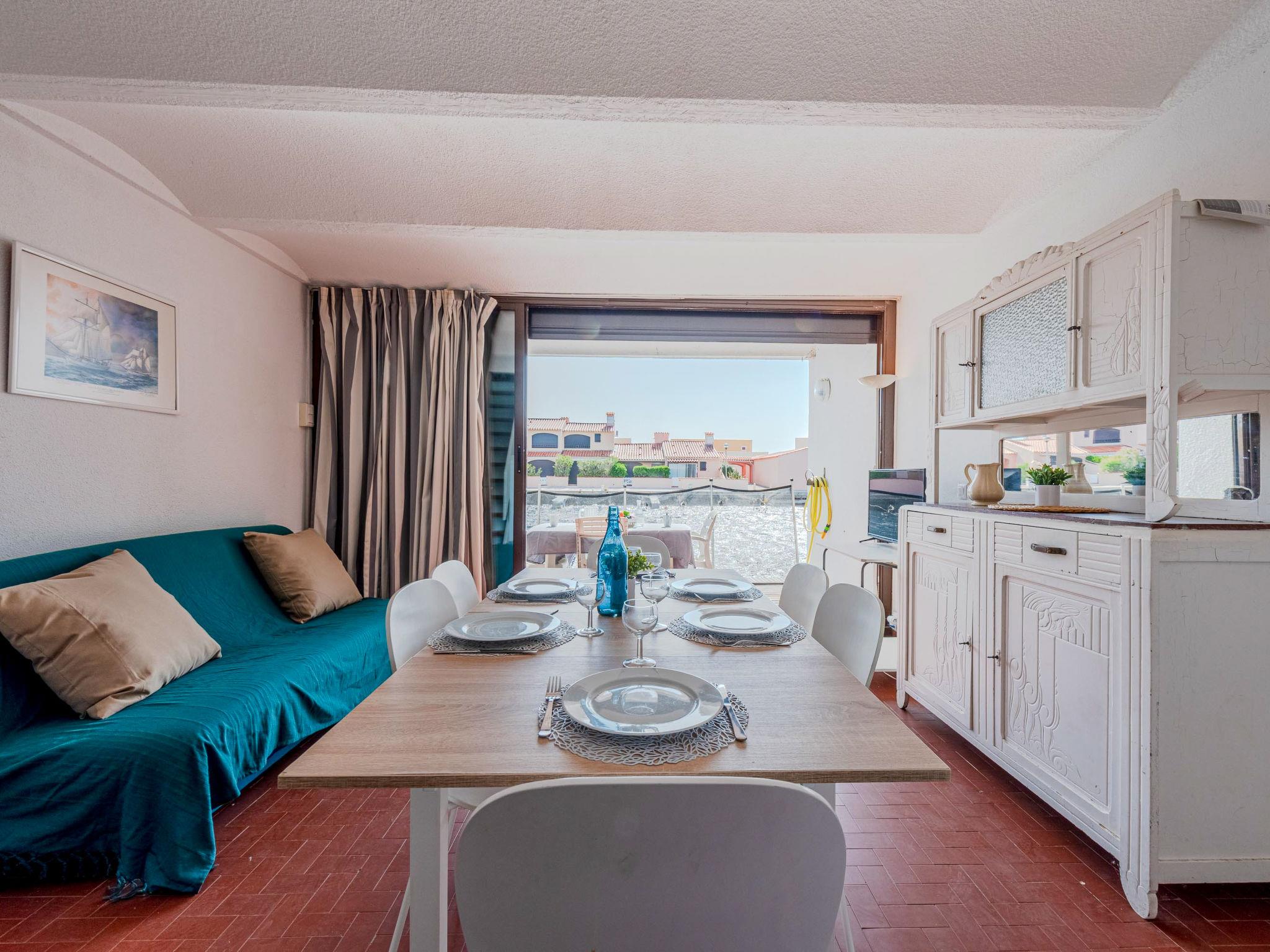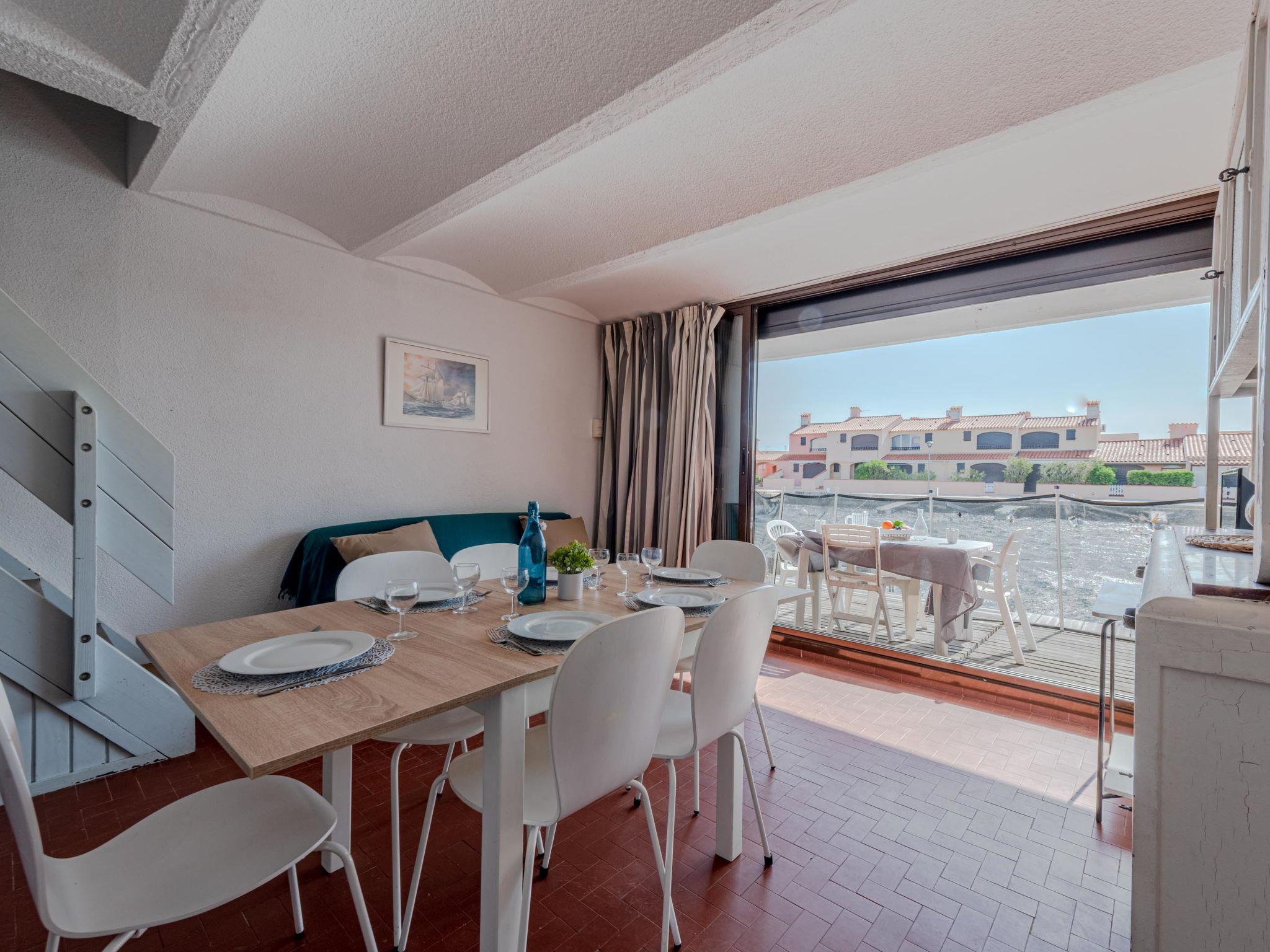 Residence "Les Brigantins". On the outskirts, 3 km from the sea, 50 m from the lake, 3 km from the beach, in a cul-de-sac. For shared use: natural pond, public parking 80 m. Grocery 3 km, supermarket 5 km, shopping centre 4 km, restaurant 2 km, bar 2 km, bakery 3 km, bus stop "Le Barcarès" 600 m, railway station "La Franqui" 16 km, sandy beach 3 km, diving center 6 km, outdoor swimming pool 4 km, nudist beach 5 km. Sports harbour 7 km, surf school 1 km, sailing school 3 km, tennis 3 km, minigolf 5 km, riding stable 9 km. Nearby attractions: Aqualand Port Leucate 7 km, Réserve Africaine de Sigean 41 km, Fort de Salses 20 km, Narbonne 55 km, Perpignan 25 km, Barcelone 215 km. Well-known lakes can easily be reached: Etang de Leucate ou Salses 7 km, Lac de Villeneuve de La Raho 28 km. Hiking paths: Sentier du guetteur 8 km, Station meteorologique de Opoul Perillos 25 km, Sentier du littoral Collioure 40 km. Please note: car recommended. Residence with electric gates. The photograph shows a typical example. Additional accommodations can be booked. Protection barrier on the pontoon.