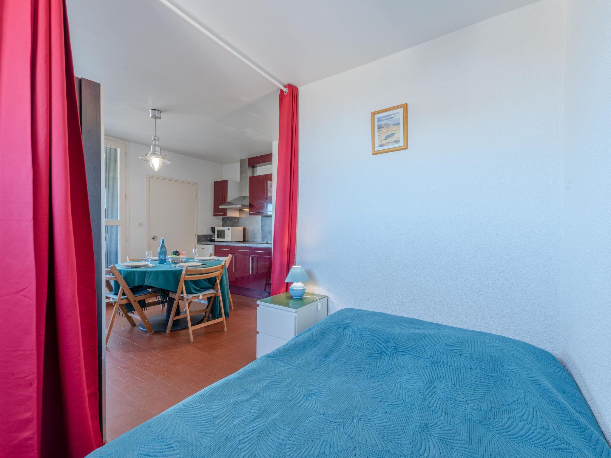 Residence "Les Marines", built in 1970. 200 apartments in the residence. In the district of la place du tertre, 200 m from the sea, 150 m from the beach. Parking. Shop, grocery 300 m, supermarket 5 km, restaurant, bar, bakery, café 300 m, bus stop "Les Marines" 230 m, railway station "Perpignan" 32 km, sandy beach "150", diving center 5 km, nudist beach 7 km. Sports harbour 7 km, surf school 2 km, tennis 4 km, minigolf 4 km, riding stable 8 km. Nearby attractions: Aqualand Port Leucate 7 km, Réserve Africaine de Sigean 41 km, Fort de Salses 20 km, Narbonne 55 km, Perpignan 25 km, Barcelone 215 km. Well-known lakes can easily be reached: Etang de Leucate ou Salses 7 km, Lac de Villeneuve de La Raho 28 km. Hiking paths: Sentier du guetteur 8 km, Station meteorologique de Opoul Perillos 25 km, Sentier du littoral Collioure 40 km. Please note: main road close by.