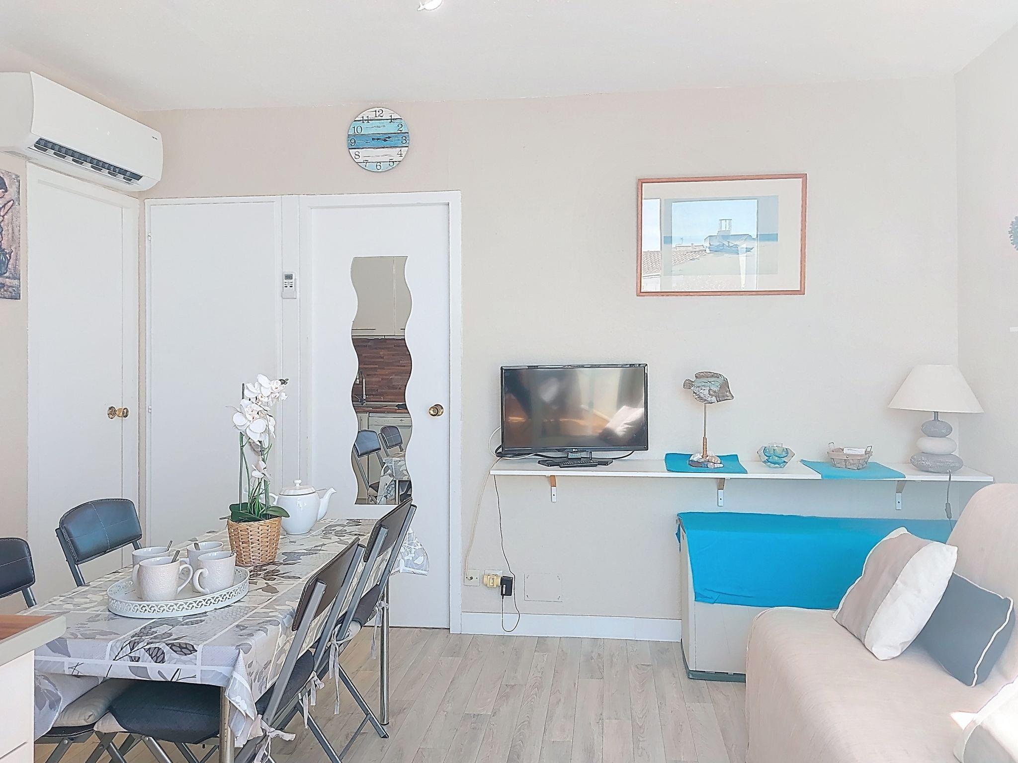 Residence "Les Supers Marines", built in 1970. 200 apartments in the residence. In the district of La place du Tertre, 150 m from the sea, 150 m from the beach. Parking. Shop, grocery 100 m, supermarket 5 km, restaurant, bar, bakery, café 100 m, bus stop "Les Marines" 300 m, railway station "Perpignan" 32 km, diving center 5 km, nudist beach 7 km. Sports harbour 7 km, surf school 2 km, tennis 4 km, minigolf 4 km, riding stable 8 km. Nearby attractions: Aqualand Port Leucate 7 km, Réserve Africaine de Sigean 41 km, Fort de Salses 20 km, Narbonne 55 km, Perpignan 25 km, Barcelone 215 km. Well-known lakes can easily be reached: Etang de Leucate ou Salses 7 km, Lac de leucate ou de salses 28 km. Hiking paths: Sentier du guetteur 8 km, Station meteorologique de Opoul Perillos 25 km, Sentier du littoral Collioure 40 km.
