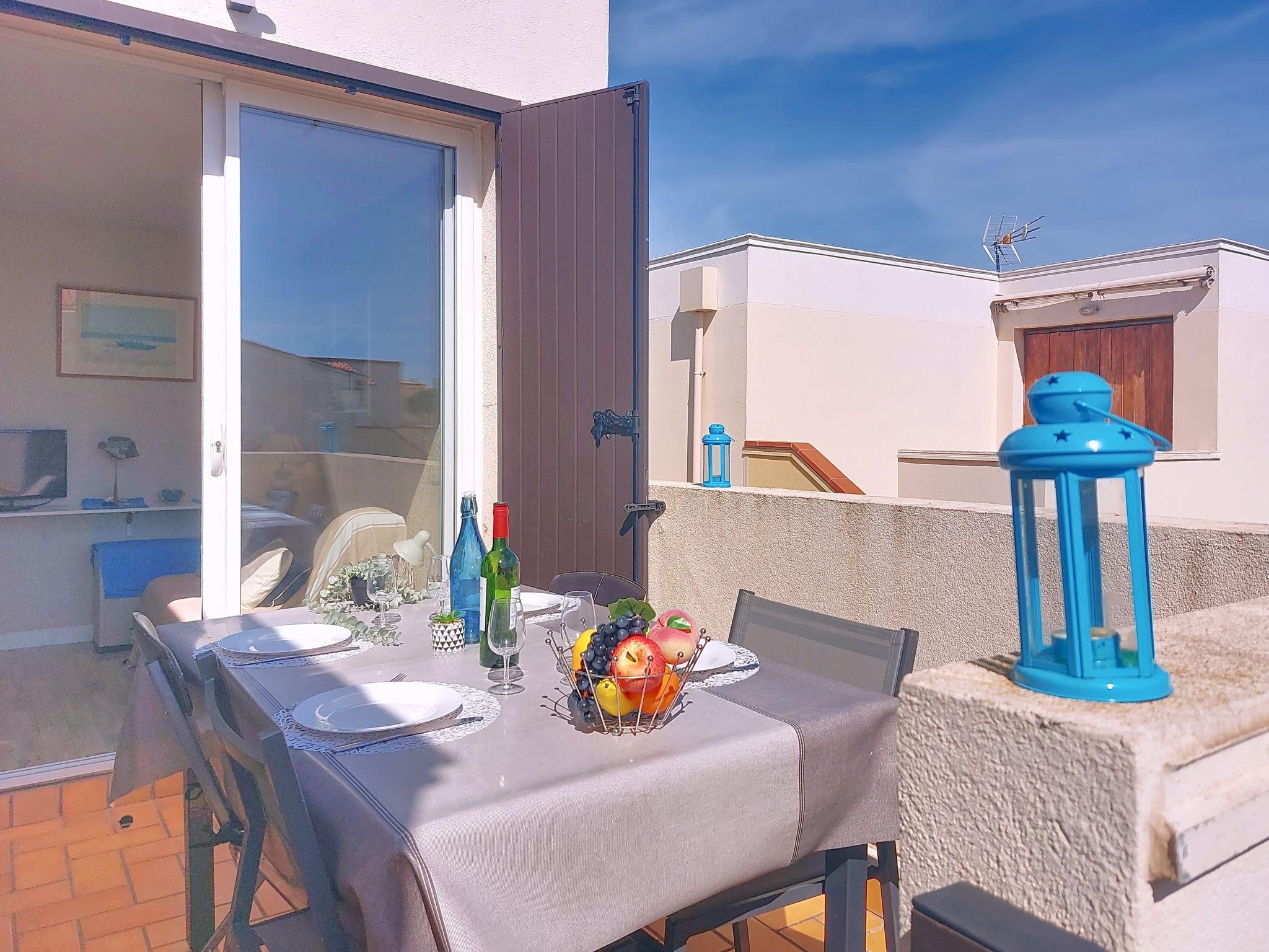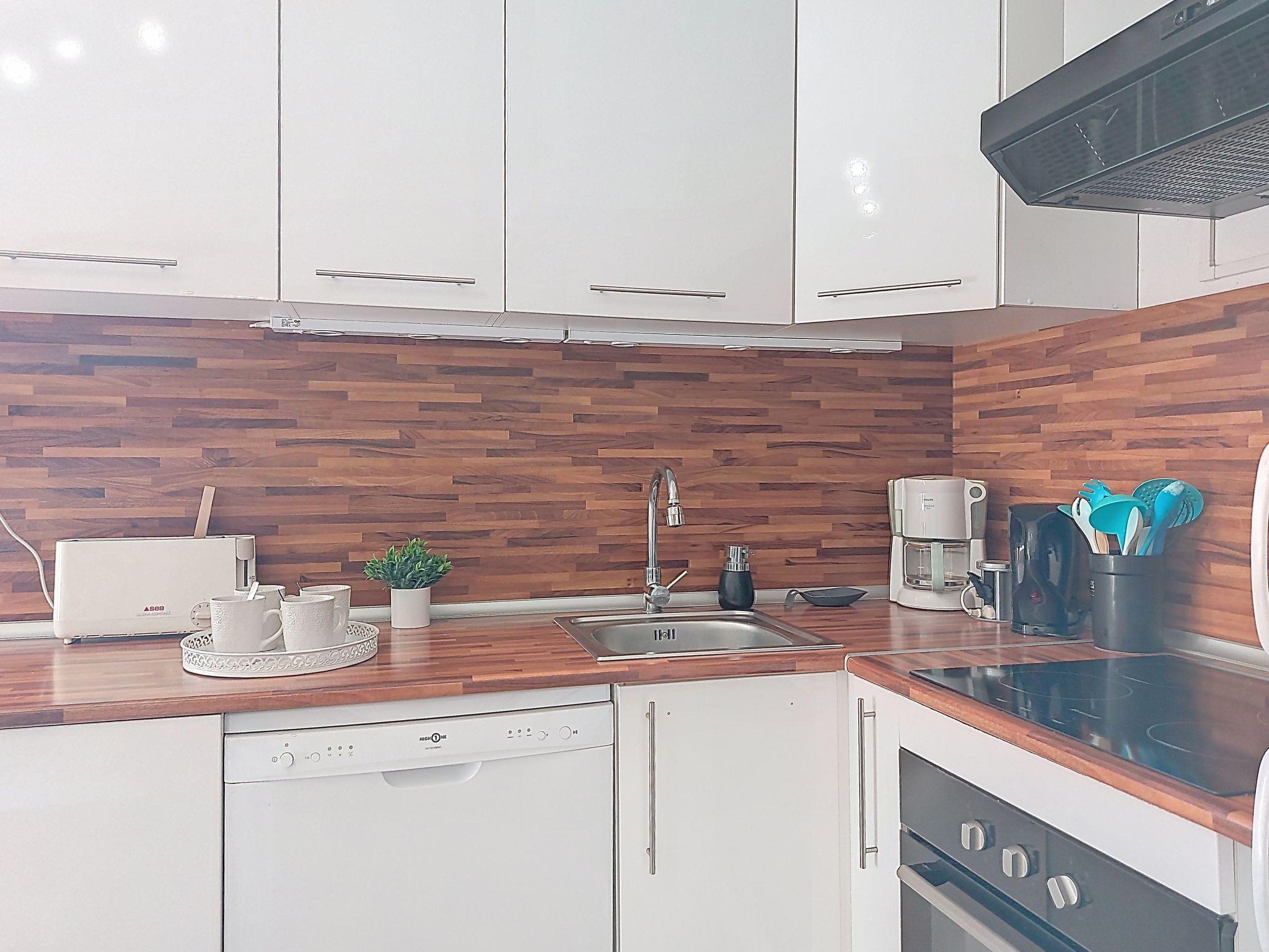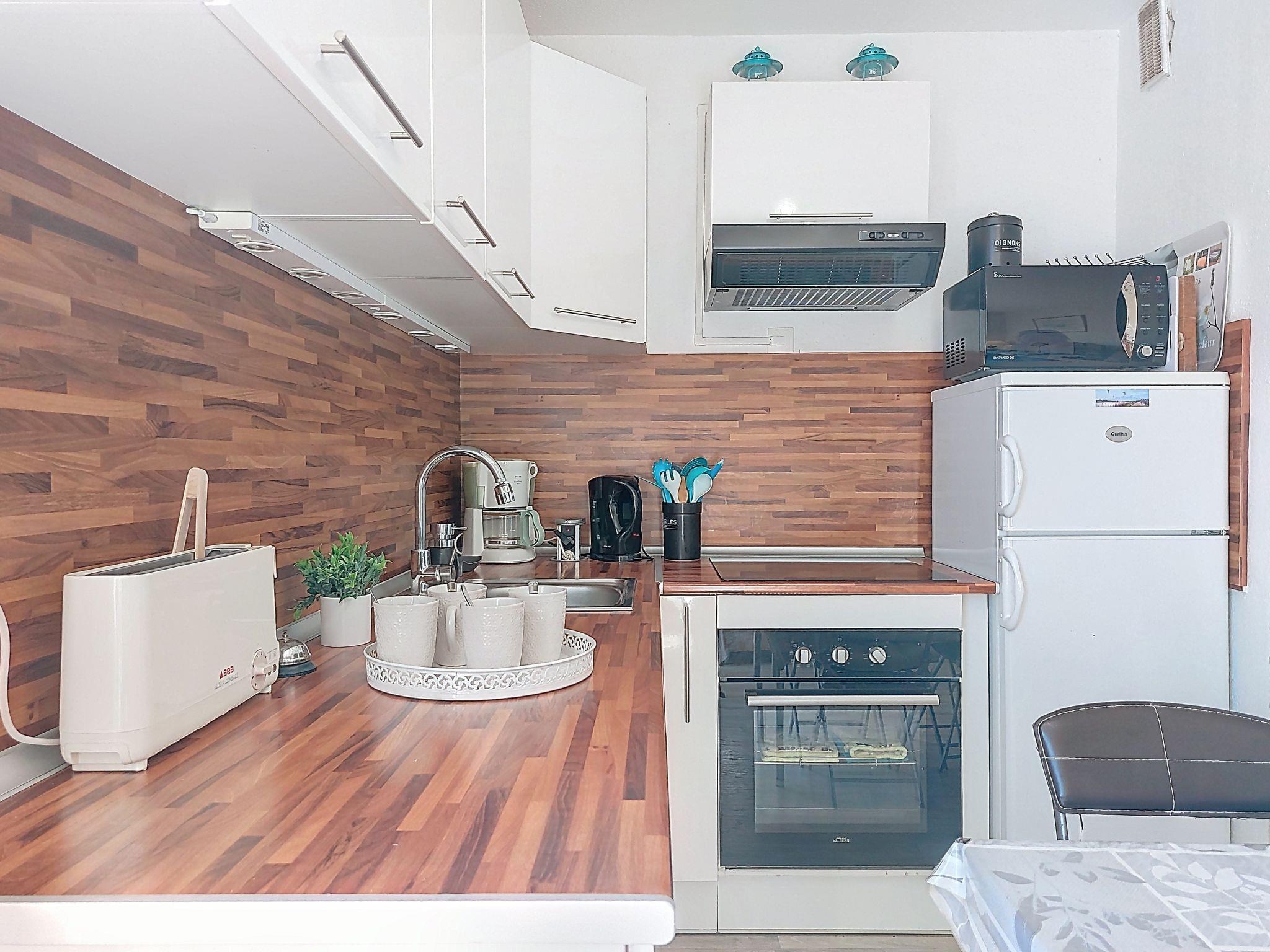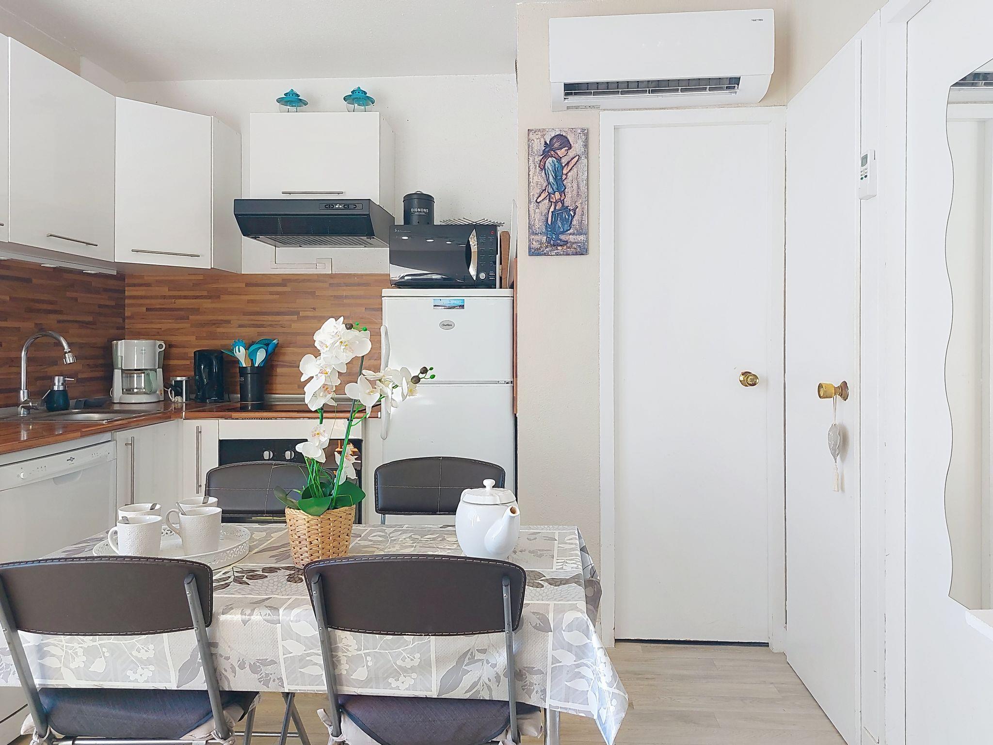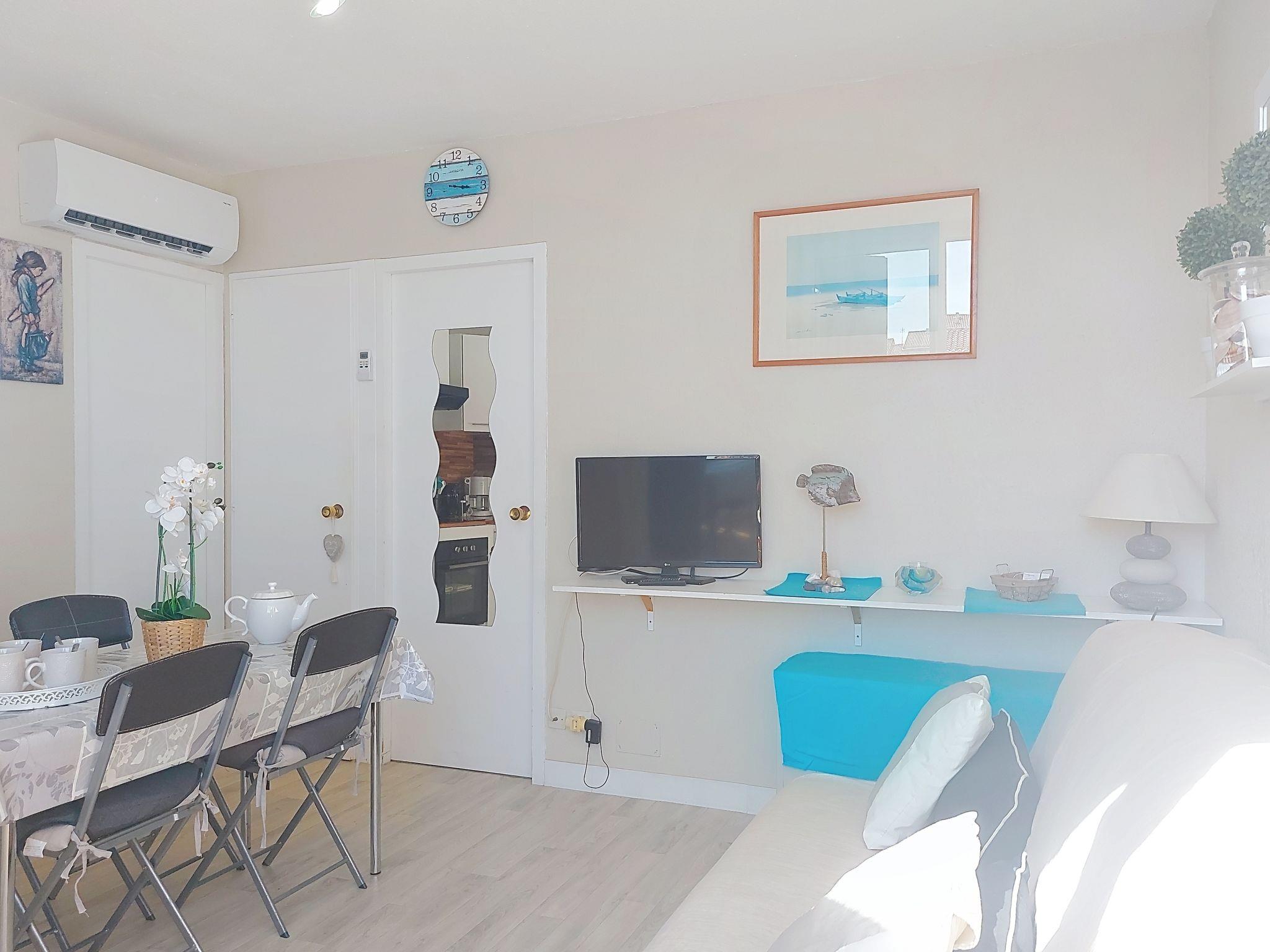 2-room apartment 30 m2 on 1st floor, east facing position. Living/dining room with 1 double sofabed (1 x 140 cm, length 190 cm), TV (flat screen). Exit to the terrace. 1 room with 1 double sofabed (1 x 140 cm, length 190 cm), TV (flat screen). Open kitchen (dishwasher, 4 induction hot plates, toaster, kettle, microwave, electric coffee machine). Shower/WC. Air-conditioning. Terrace 7 m2. Terrace furniture, electric barbecue. View. Facilities: washing machine. Internet (WiFi, extra). Parking. Please note: smoke alarm. Offer by a private individual according to Art. 155, IV of CGI.