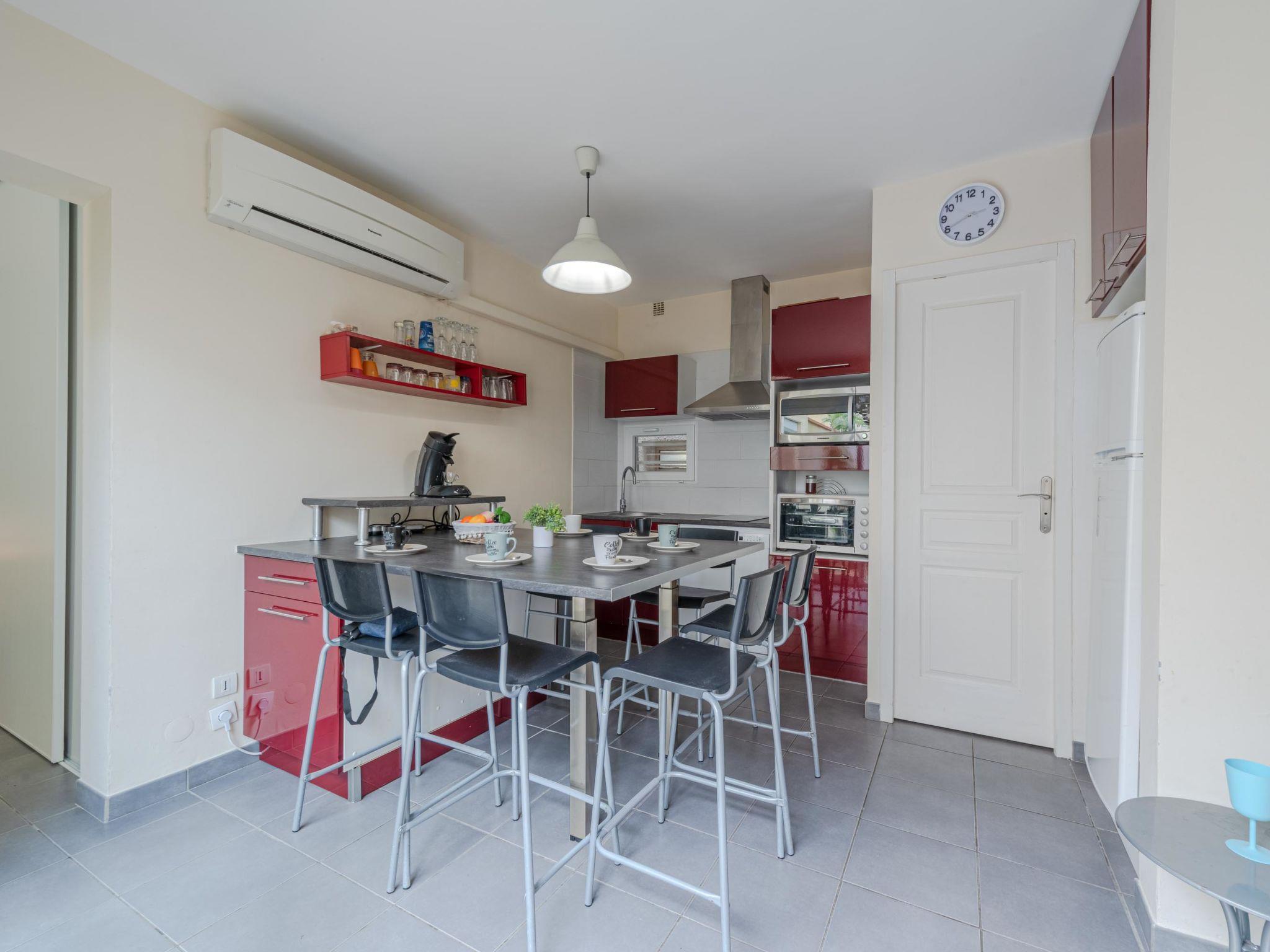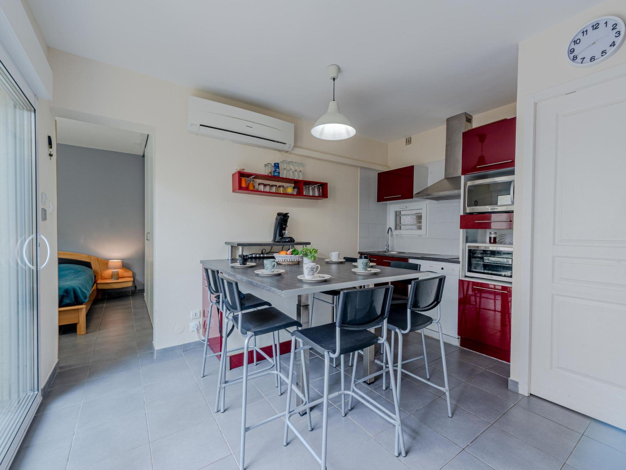 3-room apartment 42 m2, on the ground floor. Beautiful furnishings: living/dining room with TV (flat screen). Exit to the terrace. 1 room with 1 french bed (1 x 140 cm, length 190 cm). 1 room with 1 x 1 bunk beds (90 cm, length 190 cm), 1 french bed (1 x 140 cm, length 190 cm). Kitchenette (mini-oven, oven, 2 ceramic glass hob hotplates, toaster, kettle, microwave, electric coffee machine, cooking island). Exit to the terrace. Shower/WC. Air-conditioning. Terrace 28 m2. Terrace furniture, barbecue. Facilities: washing machine. Internet (WiFi, extra). Parking. Please note: smoke alarm. Offer by a private individual according to Art. 155, IV of CGI.