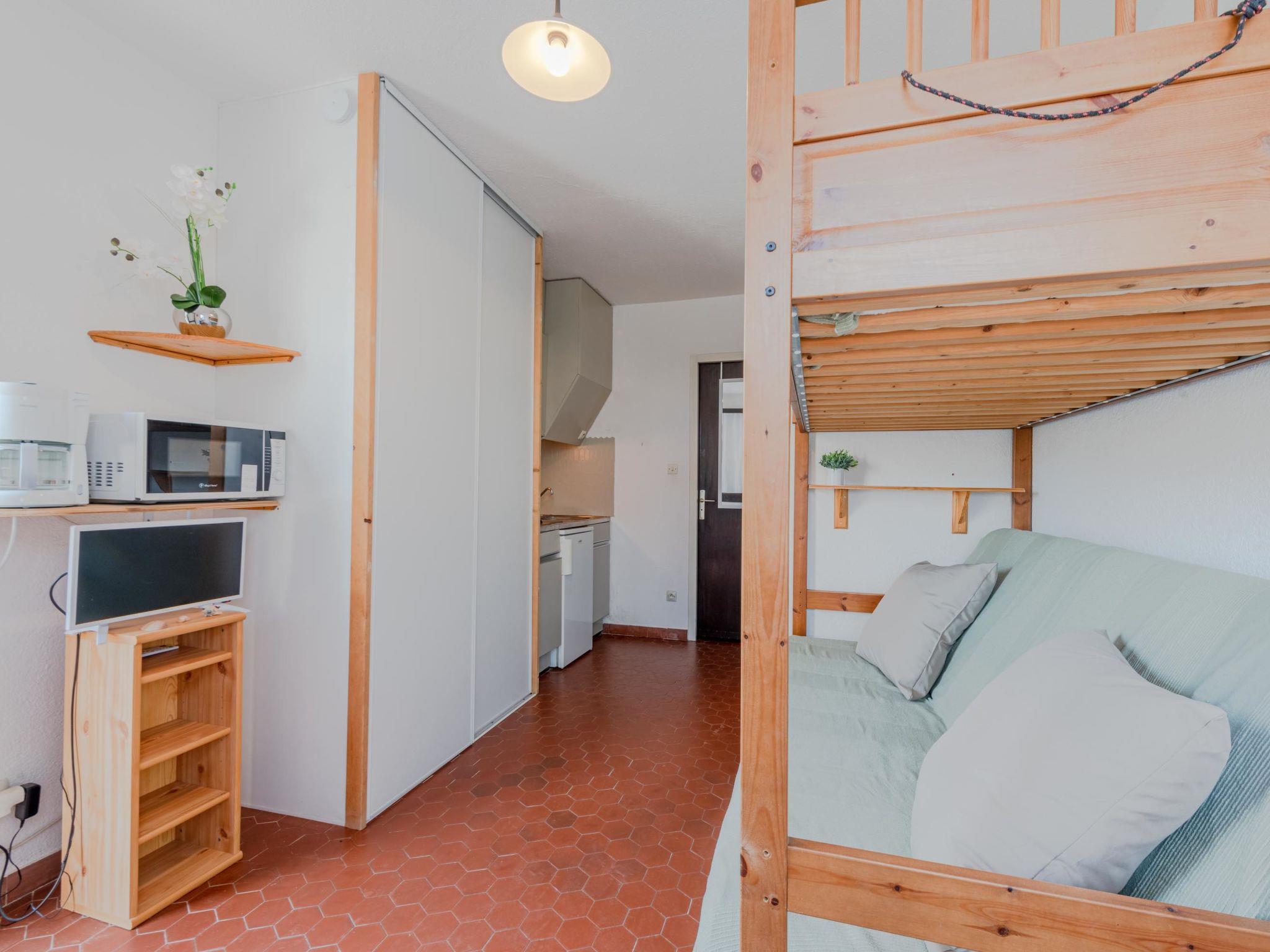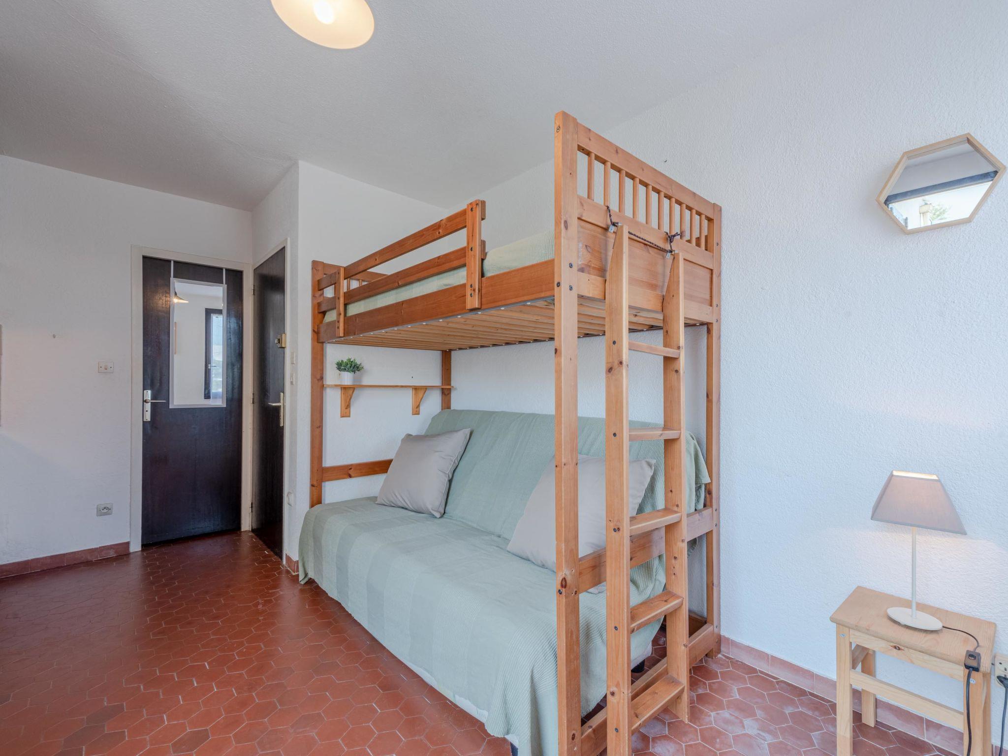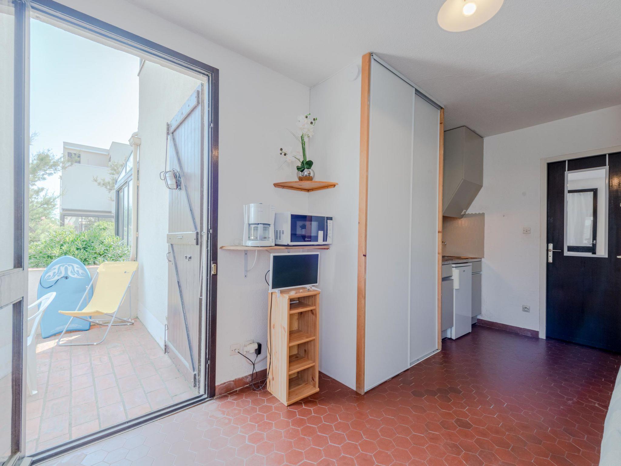 Cosy residence "Les Miramars", surrounded by trees. In the district of Lido, 50 m from the sea, 50 m from the beach, direct access to the beach, in the countryside. For shared use: garden, parking. Shop 500 m, grocery, restaurant, bakery 50 m, bus stop "St-Ange" 20 m, railway station "La Franqui" 15 km. Nearby attractions: Aqualand Port Leucate 7 km, Réserve Africaine de Sigean 41 km, site des dosses 4 km, téléski nautique 5 km. Well-known lakes can easily be reached: Etang de Leucate ou salses 11 km, Lac de Villeneuve de la Raho 28 km. Hiking paths: Sentier du guetteur 8 km, la forteresse de salses 15 km, Sentier du littoral Collioure 40 km.