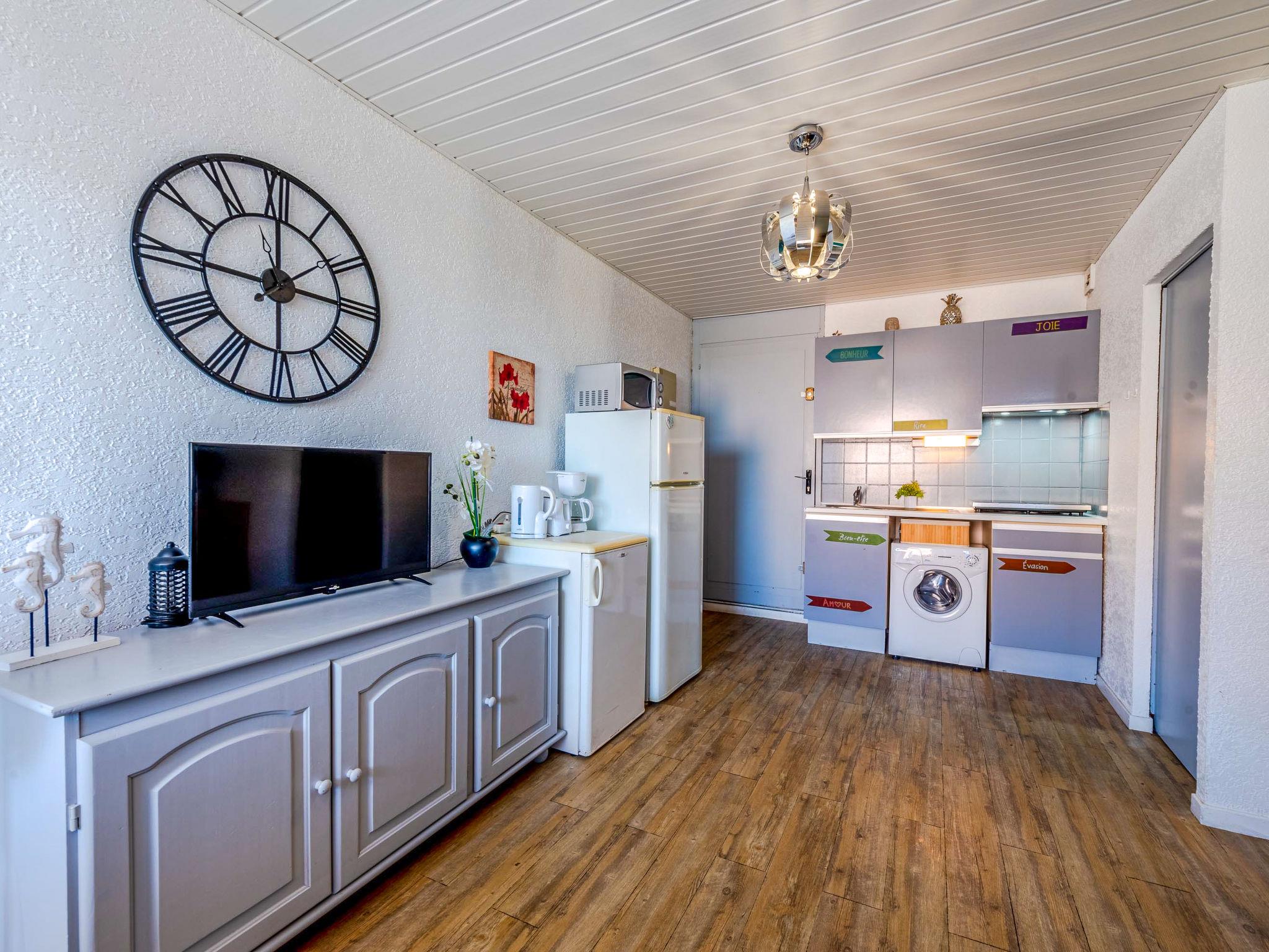 Residence "Front de Mer", 3 storeys. In the district of Grande Plage, in a busy position, 100 m from the sea, 100 m from the beach. In the complex: parking. Shop, grocery 50 m, supermarket 6 km, restaurant, bar, bakery, café 50 m, bus stop "Les Marines" 300 m, railway station "Perpignan" 24 km, sandy beach 50 m. Surf school 2 km, sailing school 3 km, tennis 3 km, indoor tennis centre 3 km, minigolf 2.5 km, riding stable 12 km. Nearby attractions: Aqualand Port Leucate 7 km, Réserve Africaine de Sigean 41 km, cinéma 1.2 km, téléski nautique 5 km, parcours aventure 5 km, Spot de windsurf 4 km. Well-known lakes can easily be reached: Etang de Leucate ou salses 3 km, Lac de Villeneuve de la Raho 34 km. Hiking paths: Sentier du guetteur 8 km, la forteresse de salses 15 km, Sentier du littoral Collioure 40 km. Please note: no lift. Entertainment in the season. The photograph shows a typical example. Additional accommodations can be booked.