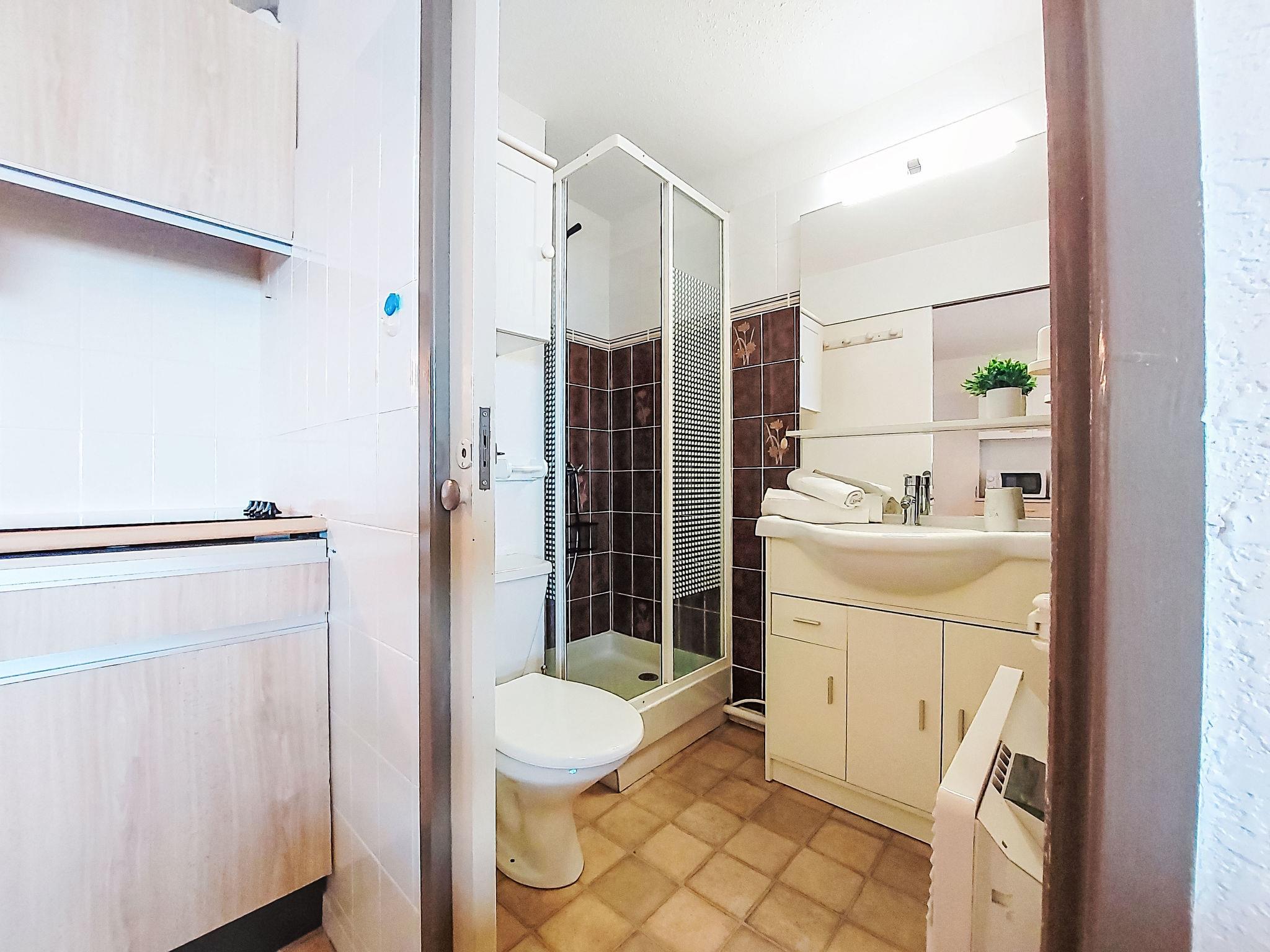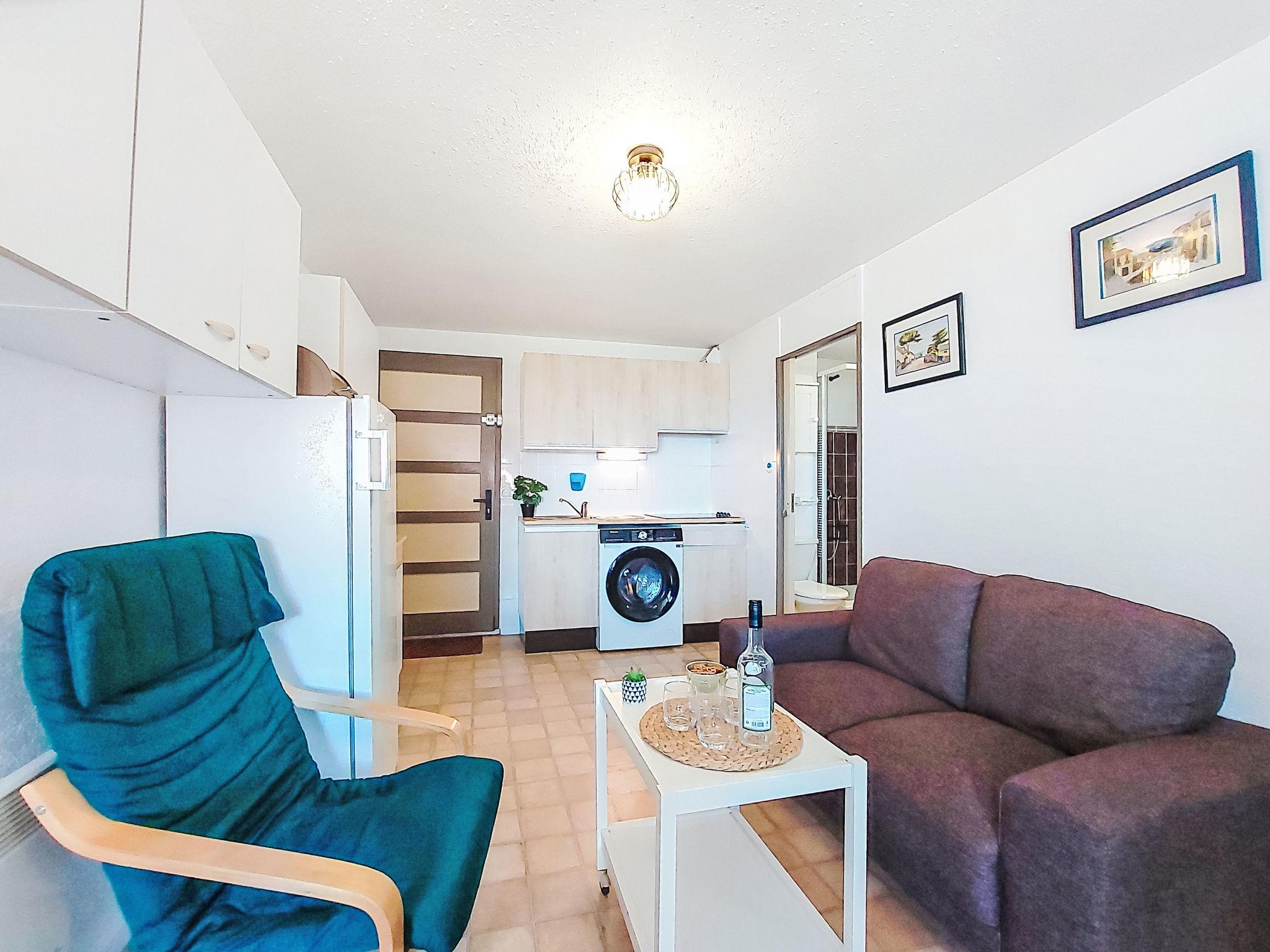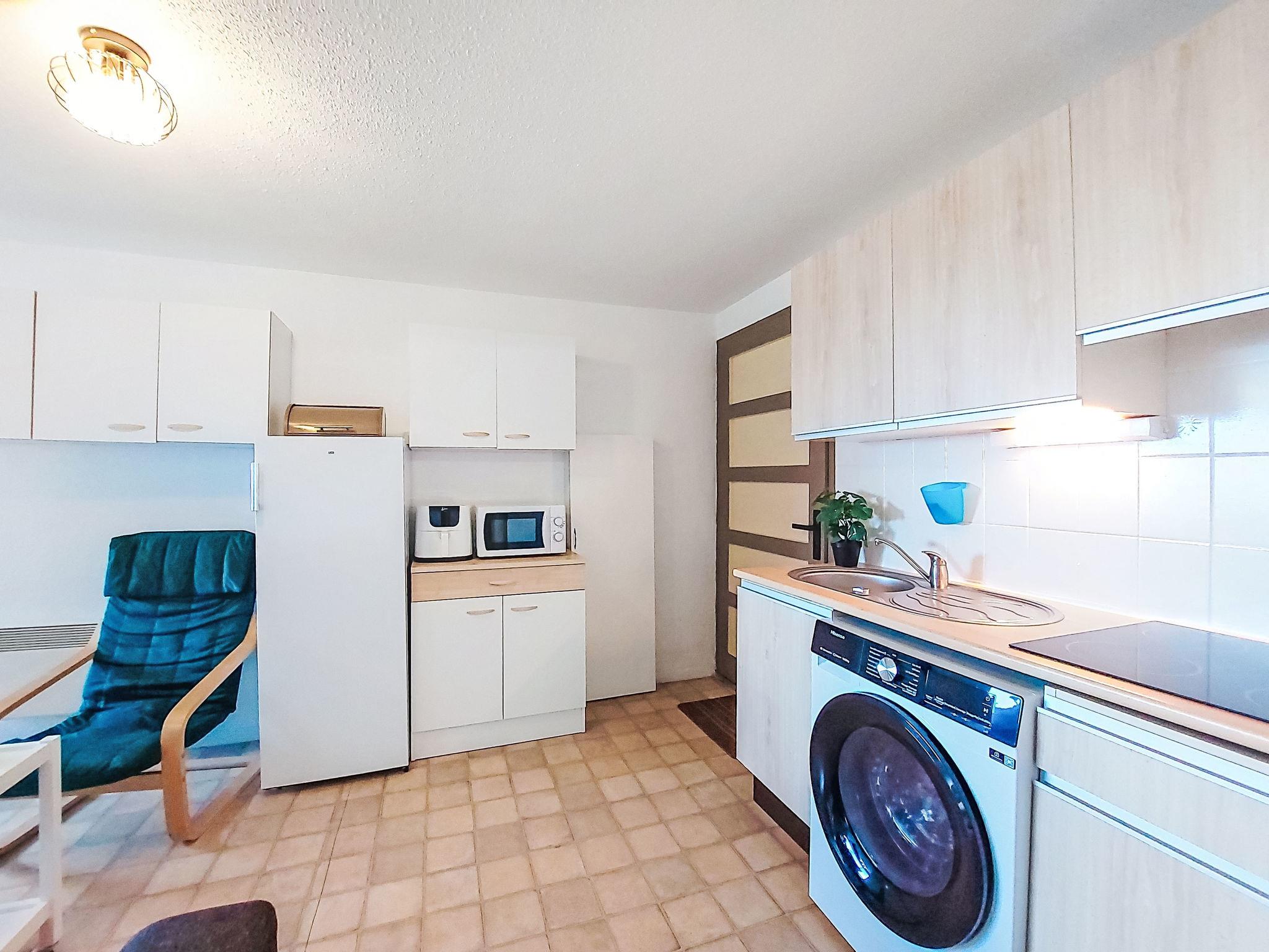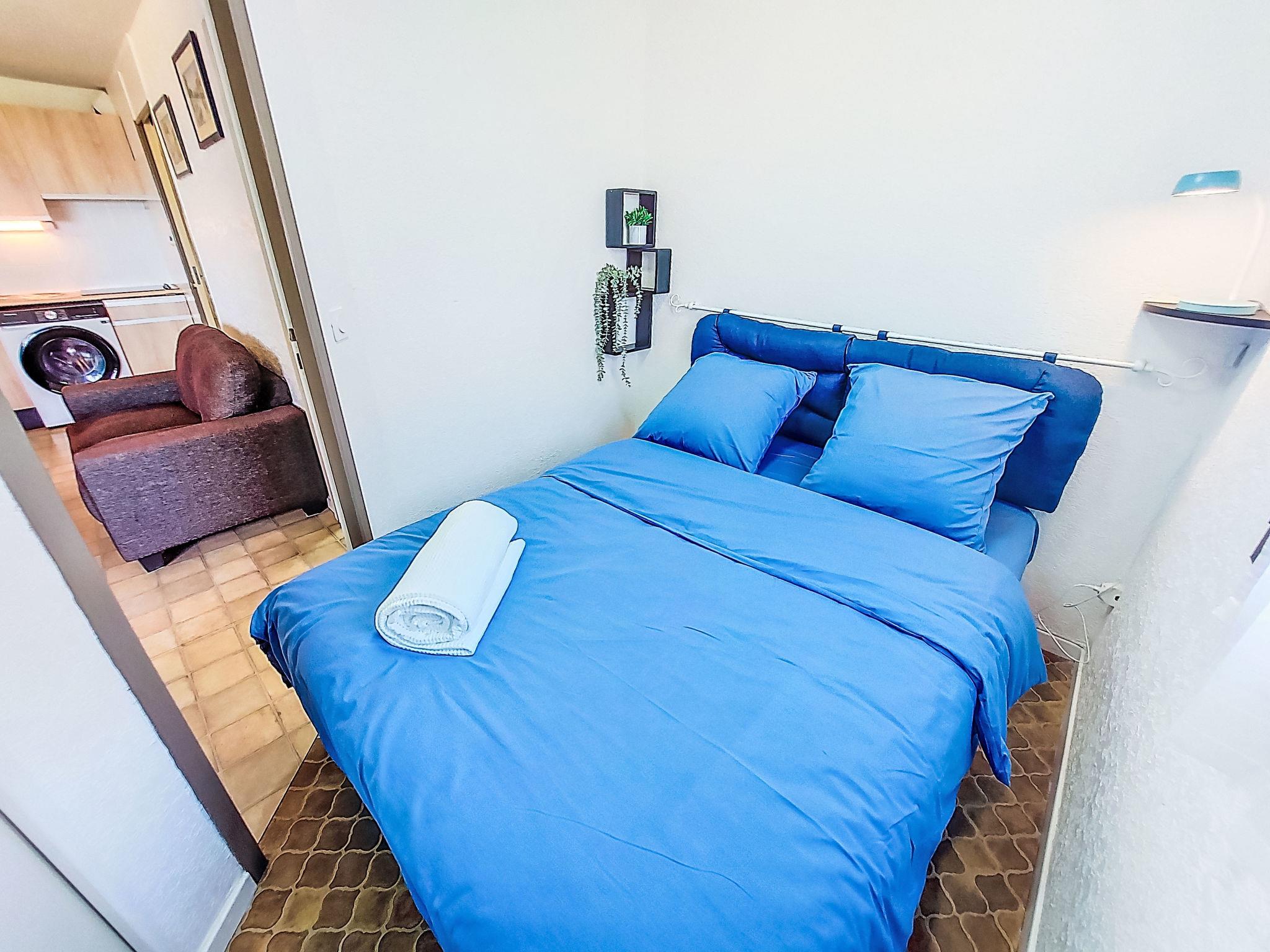2-room apartment 28 m2 on 2nd floor, north-east facing position. Dining room with TV (flat screen). 1 room with 1 french bed (1 x 140 cm, length 190 cm). Sleeping alcove with 1 x 2 bunk beds (80 cm, length 190 cm). Kitchenette (4 ceramic glass hob hotplates, toaster, kettle, freezer, electric coffee machine, combination microwave). Shower/WC. Beautiful view of the sea and the garden. Facilities: washing machine, dryer. Internet (WiFi). Parking. Please note: smoke alarm. Offer by a private individual according to Art. 155, IV of CGI.