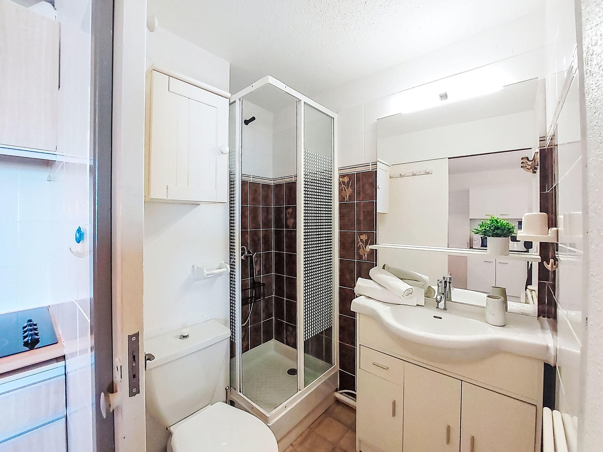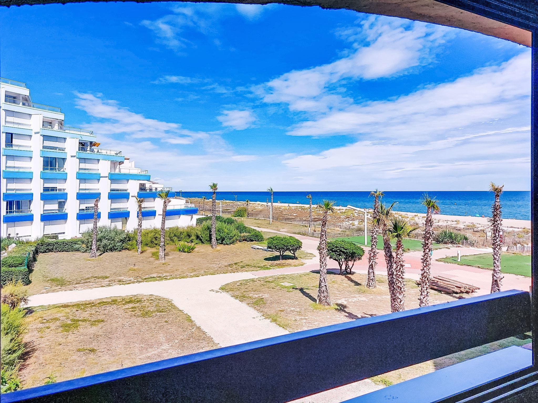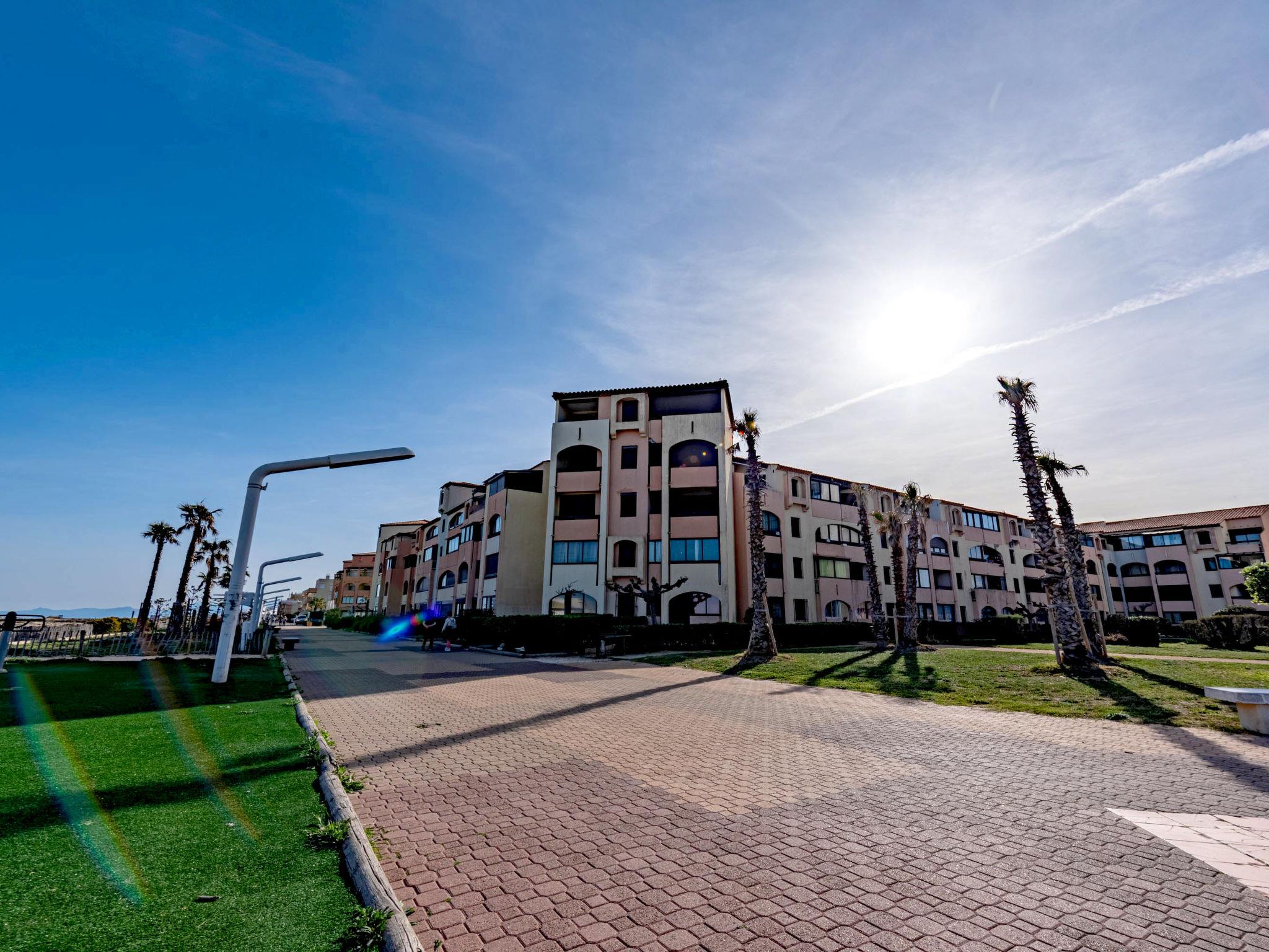 Residence "Front de Mer", 3 storeys. In the district of Grande Plage, in a busy position, 100 m from the sea, 100 m from the beach. In the complex: parking. Shop, grocery 50 m, supermarket 6 km, restaurant, bar, bakery, café 50 m, bus stop "Les Marines" 300 m, railway station "Perpignan" 24 km, sandy beach 50 m. Surf school 2 km, sailing school 3 km, tennis 3 km, indoor tennis centre 3 km, minigolf 2.5 km, riding stable 12 km. Nearby attractions: Aqualand Port Leucate 7 km, Réserve Africaine de Sigean 41 km, cinéma 1.2 km, téléski nautique 5 km, parcours aventure 5 km, Spot de windsurf 4 km. Well-known lakes can easily be reached: Etang de Leucate ou salses 3 km, Lac de Villeneuve de la Raho 34 km. Hiking paths: Sentier du guetteur 8 km, la forteresse de salses 15 km, Sentier du littoral Collioure 40 km. Please note: no lift. Entertainment in the season. The photograph shows a typical example. Additional accommodations can be booked.