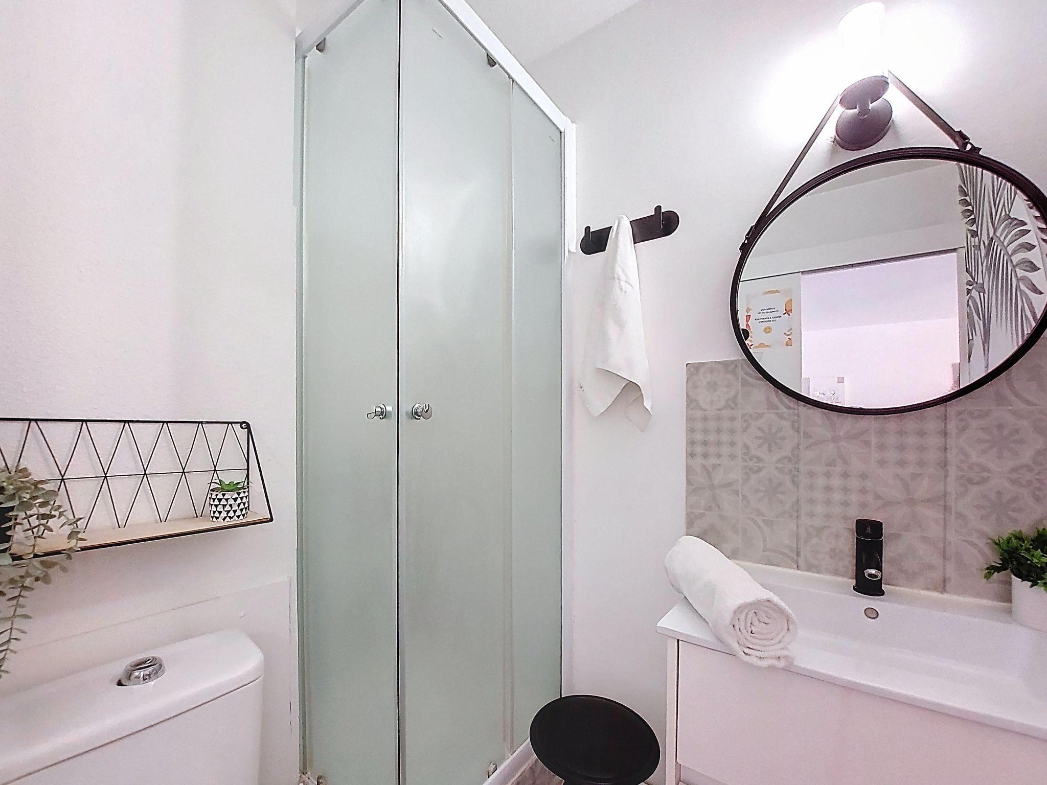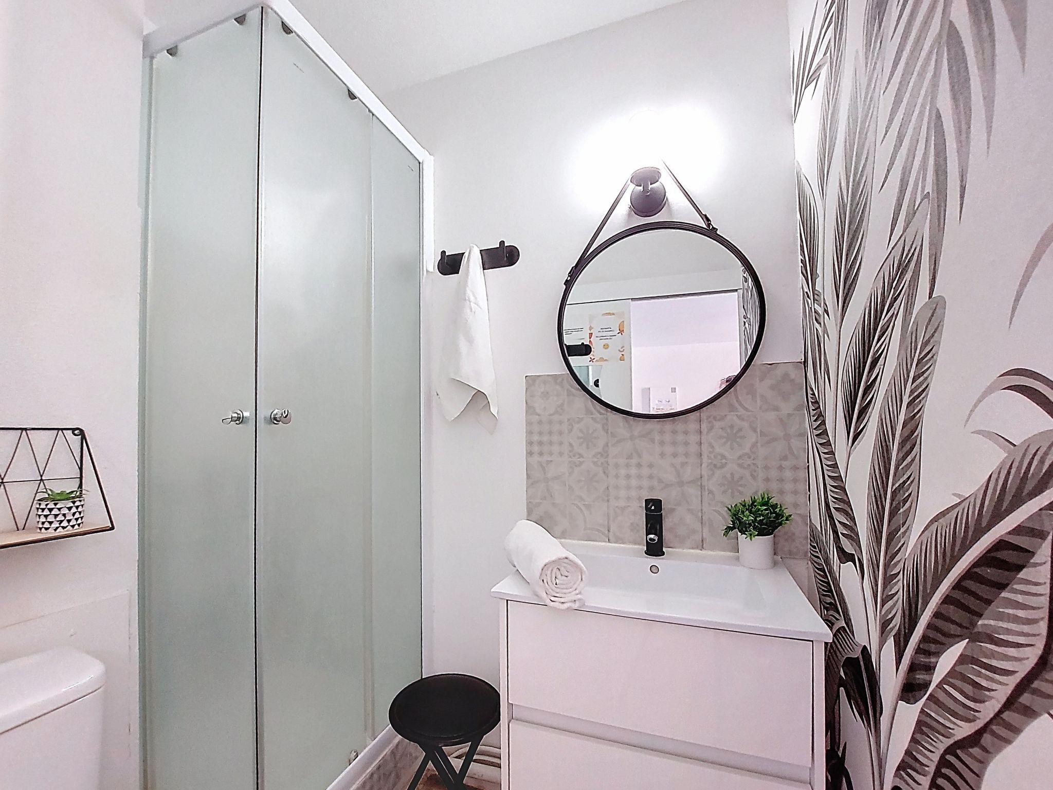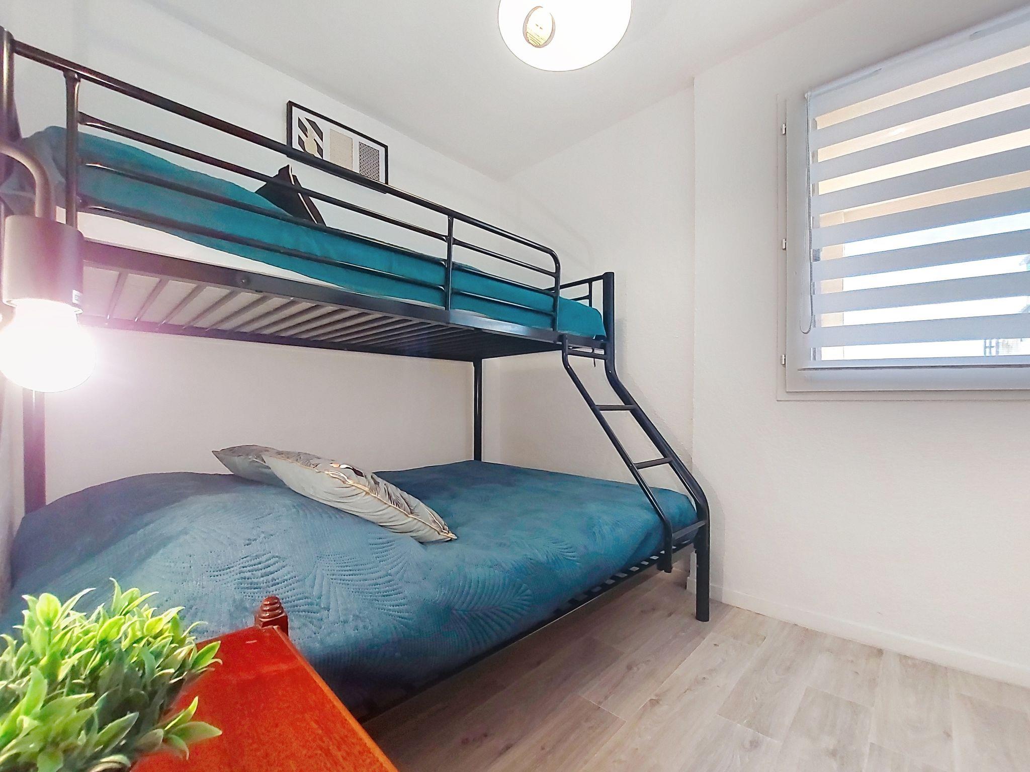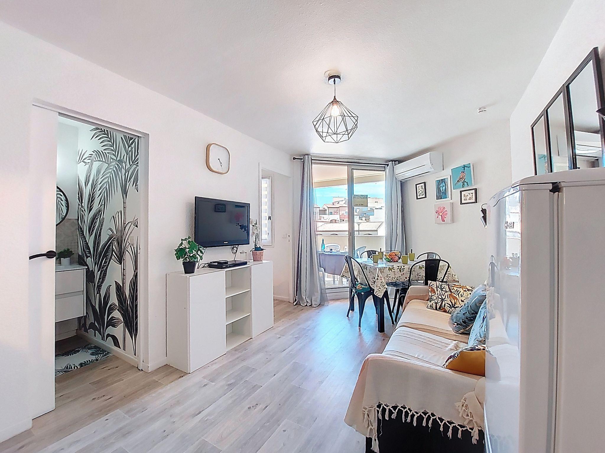 2-room apartment 27 m2 on 1st floor. Dining room with 1 sofabed (140 cm, length 190 cm), TV (flat screen). Exit to the terrace. 1 room with 1 french bed (1 x 140 cm, length 190 cm). Kitchenette (mini-oven, 2 ceramic glass hob hotplates, toaster, kettle, microwave, electric coffee machine). Shower/WC. Air-conditioning. Terrace 5 m2. Terrace furniture. Side view of the sea. Facilities: Internet (WiFi, extra). Parking. Please note: smoke alarm. Offer by a private individual according to Art. 155, IV of CGI.
