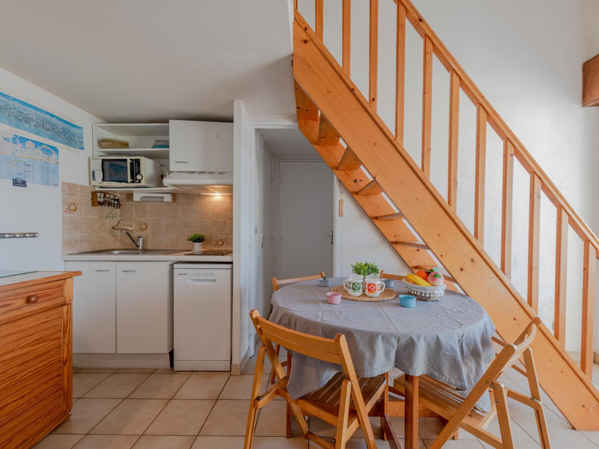 2-room apartment 35 m2 on 2nd floor, south facing position. Living/dining room with TV. Exit to the terrace. 1 room with 1 french bed (1 x 140 cm, length 190 cm). Kitchenette (2 hot plates, mini-oven, dishwasher, microwave, freezer, electric coffee machine). Shower, sep. WC. Electric heating. Upper floor: 1 small room with 1 x 2 bunk beds (90 cm, length 190 cm). 1 small room with 1 french bed (1 x 120 cm, length 190 cm). Terrace 8 m2. Terrace furniture. View of the swimming pool and the countryside. Facilities: washing machine. Internet (WiFi, extra). Parking space n 275. Please note: smoke alarm. FR6640.525.1