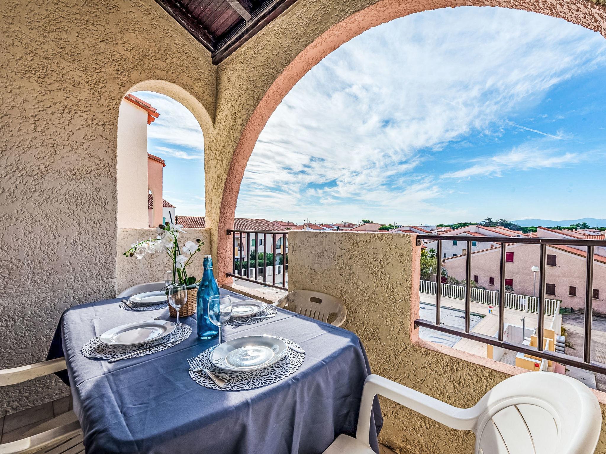 As part of the water restriction measures linked to drought in some of our departments, please note that the rental swimming pool may be closed by prefectural decree. Residence "Les Patios du Barcarès", 2 storeys. In the district of du village, 500 m from the sea, 4 km from the lake, 500 m from the beach. For shared use: swimming pool (18 x 10 m, depth 80 - 220 cm, seasonal availability: 01.Jun. - 30.Sep.). Children's pool, public parking 50 m. Shop 300 m, grocery, supermarket 200 m, restaurant, bar 250 m, bakery 300 m, café 250 m, bus stop "Mairie" 220 m, railway station "de Perpignan" 20 km, sandy beach "Barcarès village" 500 m. Sports harbour 2 km, sailing school 5 km, tennis 5 km, minigolf 5 km, riding stable 8 km. Nearby attractions: Aqualand Port Leucate 8 km, Réserve Africaine de Sigean 50 km, parcours aventure 7 km, téléski nautique 7 km, cinema 7 km, Spot de windsurf 7 km. Well-known lakes can easily be reached: Lac de Villeneuve de la Raho 28 km, Etang de Leucate ou salses 7 km. Hiking paths: Sentier du guetteur 8 km, la forteresse de salses 15 km, Sentier du littoral Collioure 40 km. Please note: no lift. Entertainment in the season. The photograph shows a typical example. Additional accommodations can be booked.