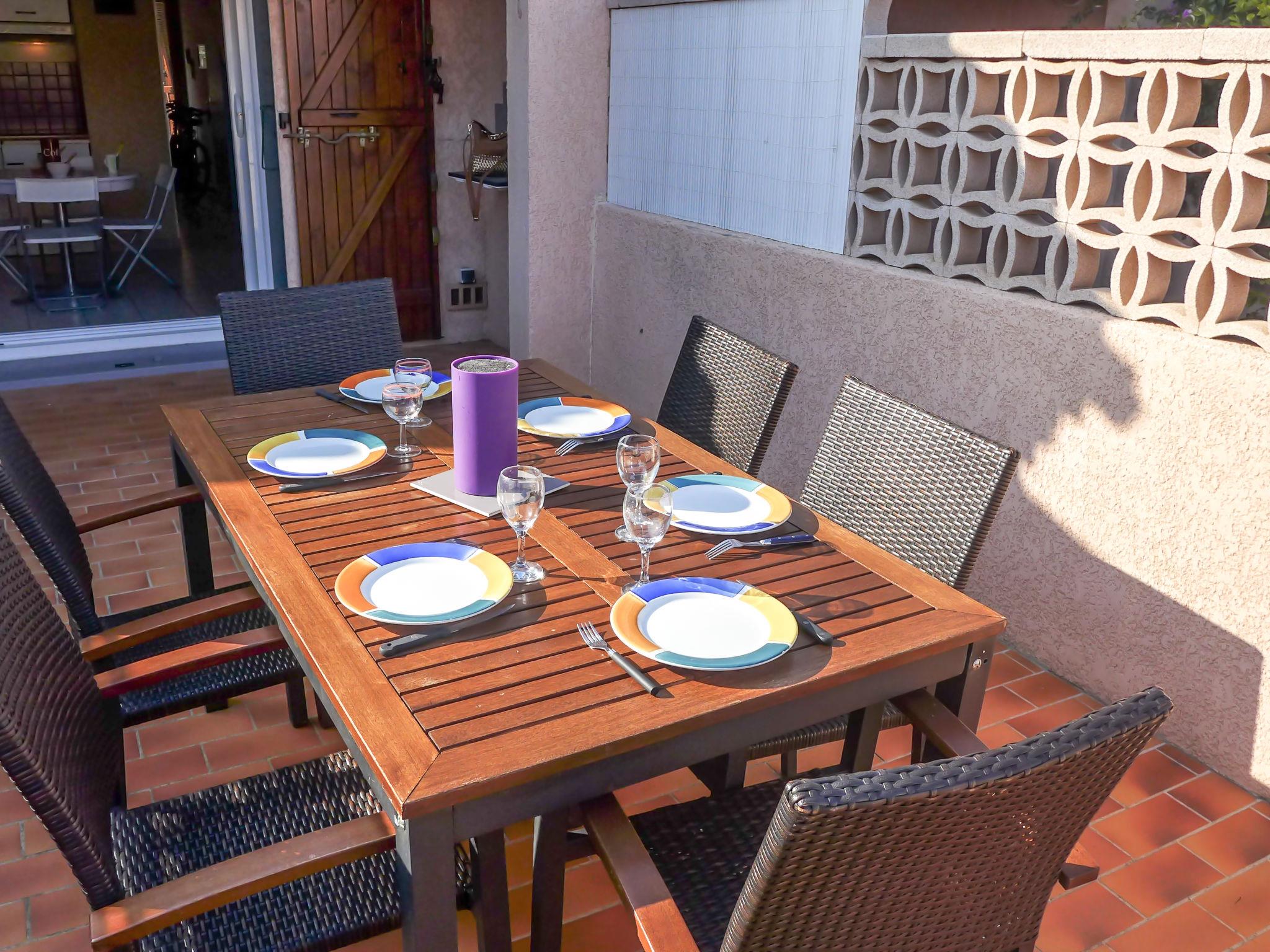 Residence "Hameau des Tamarins". In the district of village, 250 m from the sea, 200 m from the beach. Parking at the house. Grocery 200 m, supermarket 500 m, restaurant, bar, bakery 300 m, bus stop "Le Port" 400 m, railway station "Perpignan" 20 km. Sports harbour 500 m. Nearby attractions: Aqualand Port Leucate 7 km, Réserve Africaine de Sigean 40 km, site des dosses 7 km, parcours aventure 8 km, cinema 7 km. Well-known lakes can easily be reached: Lac de Villeneuve de la Raho 34 km, Etang de Leucate ou salses 11 km. Hiking paths: Sentier du guetteur 8 km, la forteresse de salses 15 km, Sentier du littoral Collioure 40 km.