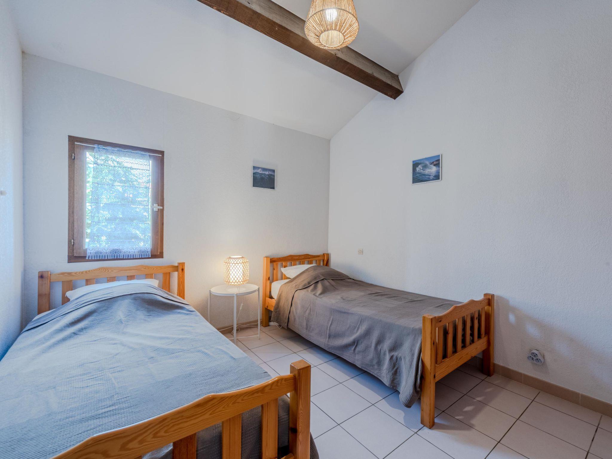 4-room terraced house 126 m2 on 2 levels. Living/dining room with TV (flat screen). Exit to the terrace. 1 room with 1 french bed (1 x 140 cm, length 190 cm). Kitchen (4 hot plates, mini-oven, dishwasher, freezer, electric coffee machine). Shower, sep. WC. Electric heating. Upper floor: 1 room with 2 beds (90 cm, length 190 cm). 1 room with 2 beds (90 cm, length 190 cm). Shower/WC. Terrace, garden 145 m2. Terrace furniture. Facilities: washing machine. Internet (WiFi, extra). Please note: smoke alarm.