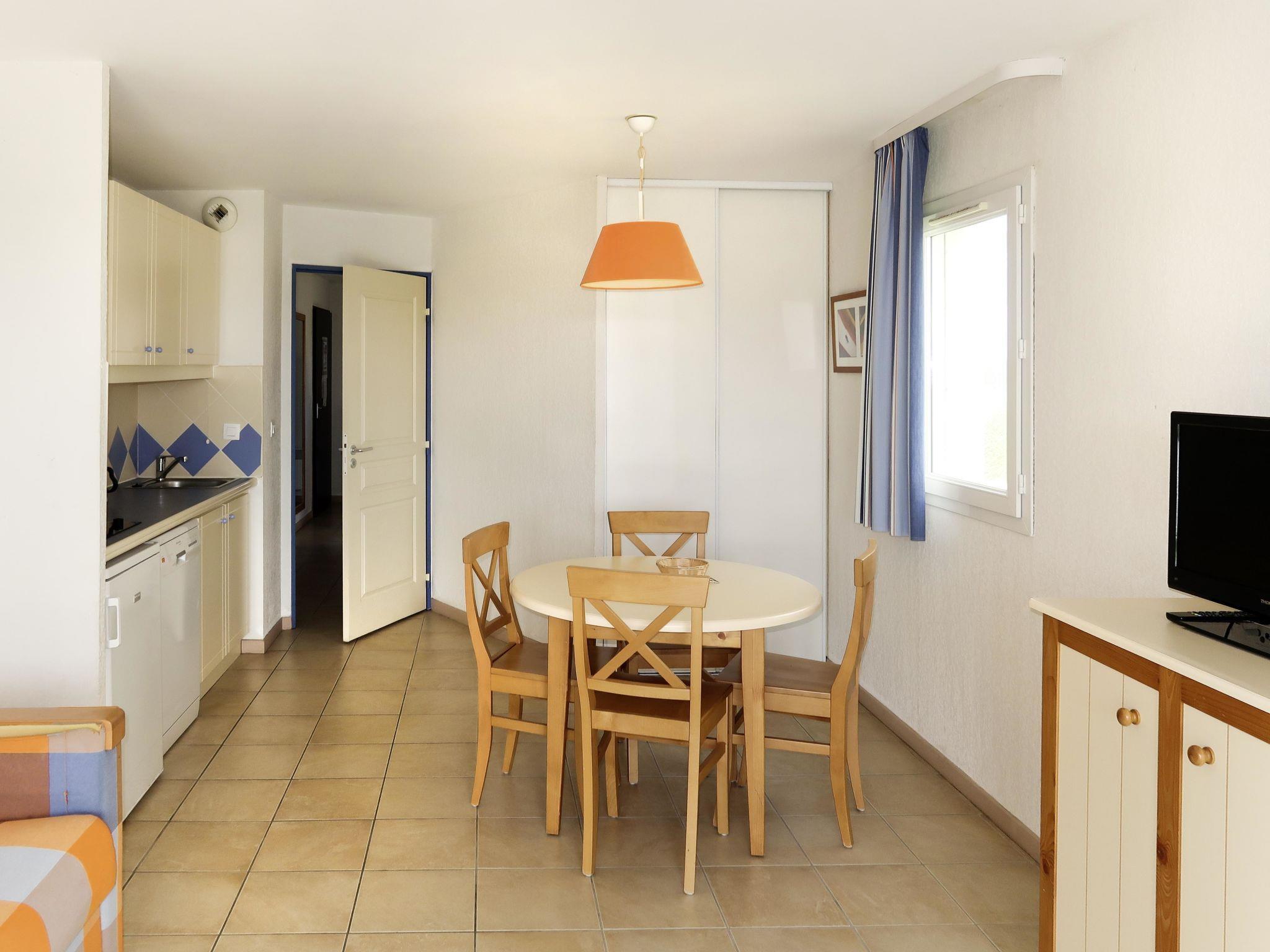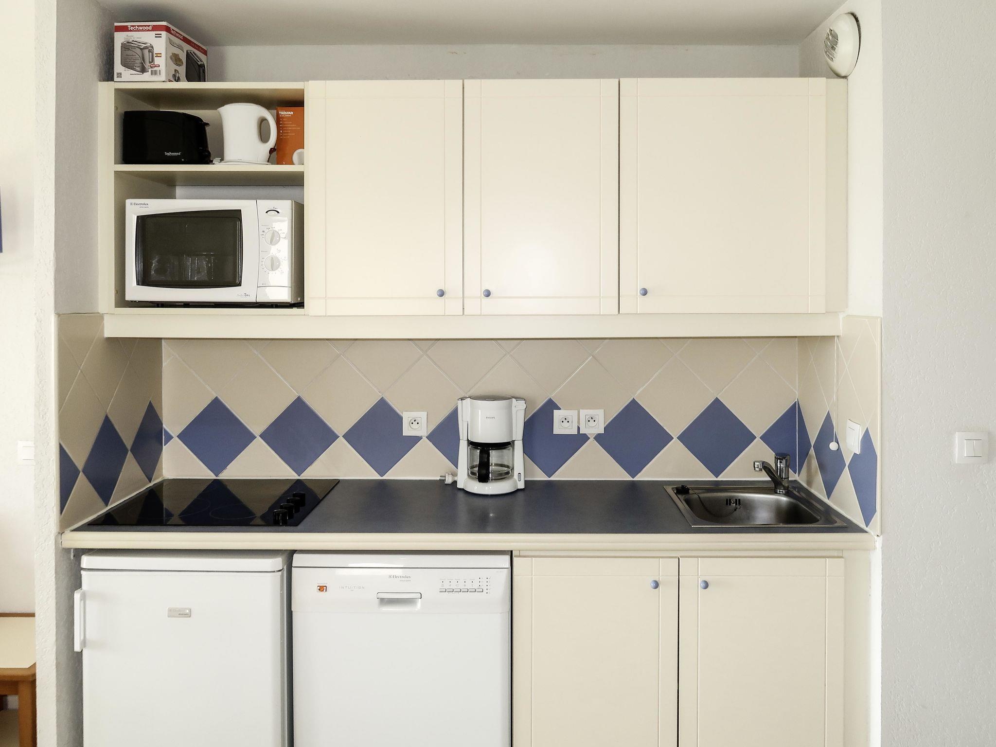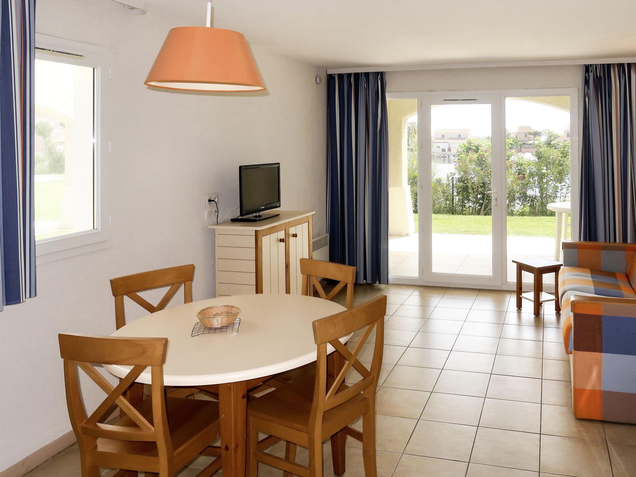 Resort "Catalana", 2 storeys. 4 houses in the resort. 60 apartments in the residence. 5 km from the centre of Le Barcarès, on the outskirts, 15 km from the centre of Canet-en-Roussillon, 25 km from the centre of Perpigang, 2 km from the sea. For shared use: well-kept garden with lawn and plants, 2 swimming pools (seasonal availability: 27.Jun. - 12.Sep.). In the complex: reception, washing machine, tumble dryer (for shared use, extra). Bread roll service. Parking. Supermarket 4 km, restaurant, bar, café 200 m, bus stop "Cap Coudalère" 210 m, sandy beach "Le Grand Large" 2 km, lake Étang de Salses 500 m. Marina 200 m, tennis 700 m. Please note: the photograph shows a typical example. The holiday properties may differ in living space, floorplan, equipment and furnishing.
