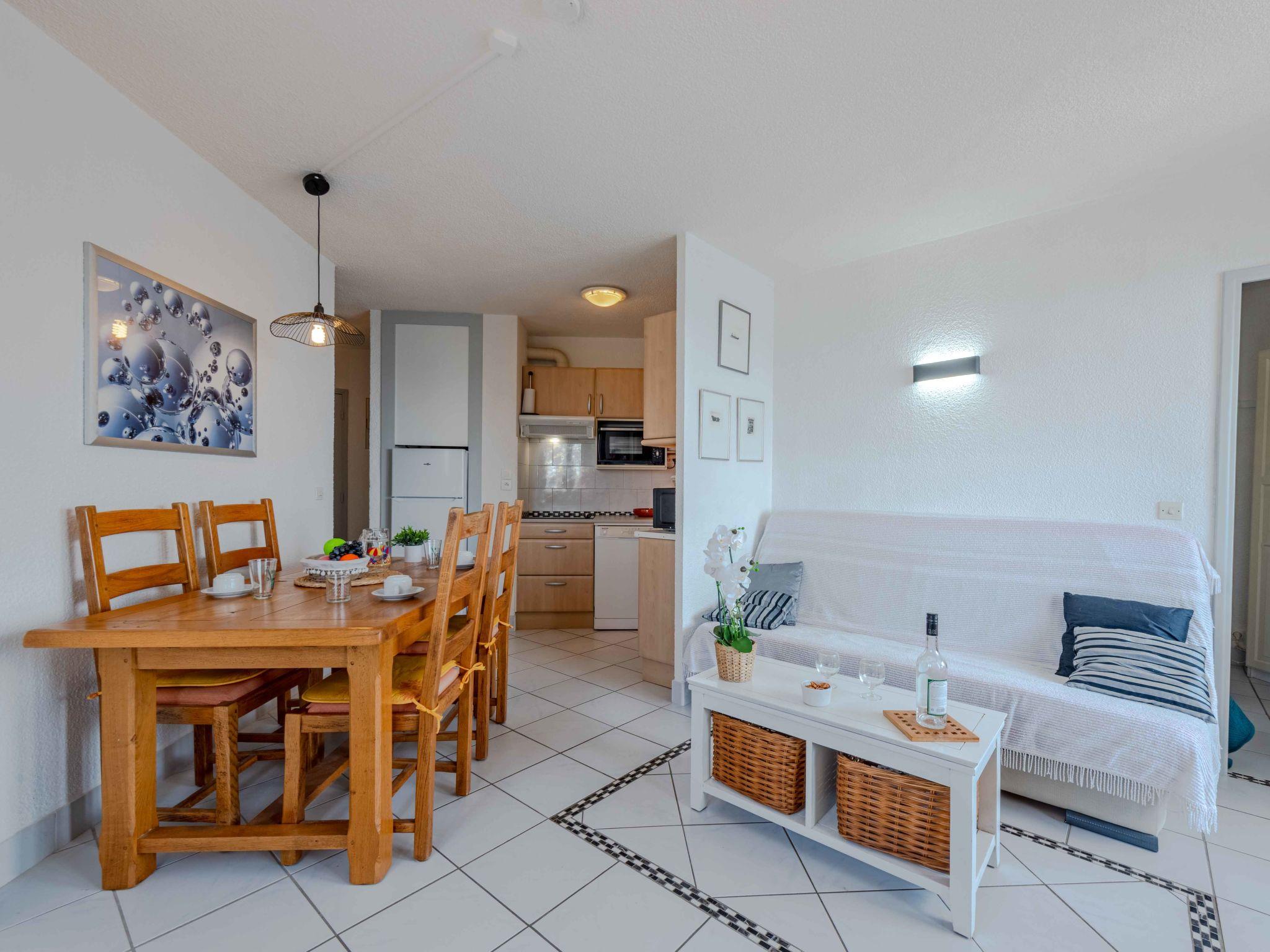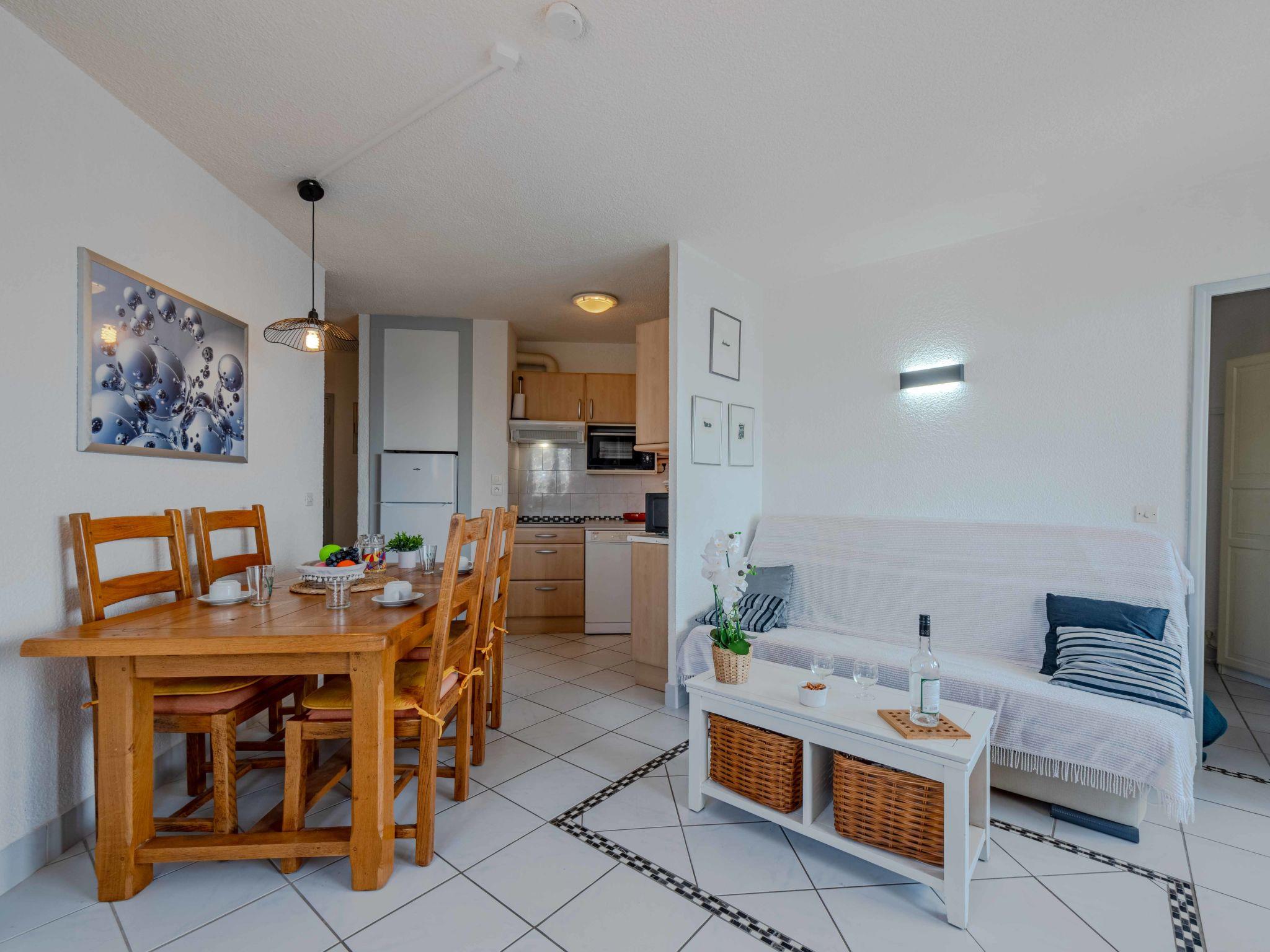 Coudalère 5 km from Barcarès centre: As part of the water restriction measures linked to the drought in some of our departments, please note that the rental swimming pool may be closed by prefectural decree. Set of residences with 3 heated swimming pools including 1 children's pool, 1 10m/15m pool and a 25m/15m pool (open from 15.04 to 15.10) free of charge and 5 paying tennis courts. Residence "Sombrero", 3 storeys. In the district of de la Coudalère, 2.5 km from the sea, 50 m from the lake, 2.5 km from the beach. For shared use: natural pond, 2 swimming pools (10 x 15 m, seasonal availability: 15.Apr. - 15.Oct.). Children's pool, tennis (extra), basketball (extra), children's playground (slide), public parking. Shop, grocery 100 m, supermarket 6 km, restaurant, bar, bakery, café 100 m, bus stop "La Coudalère" 950 m, railway station "Perpignan" 22 km, sandy beach 2.5 km. Sailing school 50 m, minigolf 1.3 km, riding stable 12 km. Nearby attractions: Réserve Africaine de Sigean 41 km, Aqualand Port Leucate 7 km, parcours aventure 7 km, cinéma 5 km, Téleski nautique site des dosses 5 km, Spot de windsurf 50 m. Well-known lakes can easily be reached: Lac de villeneuve de la Raho 34 km. Hiking paths: Sentier du guetteur 8 km, la forteresse de salses 15 km, Sentier du littoral Collioure 40 km. Please note: car recommended, no lift. Entertainment in the season. The keys‘ handover takes place by the agency Interhome Barcares 3 km. The apartment is located in a zone with limited traffic. The photograph shows a typical example. Additional accommodations can be booked.