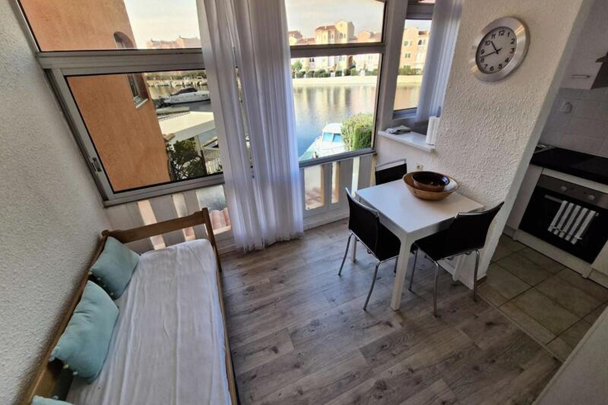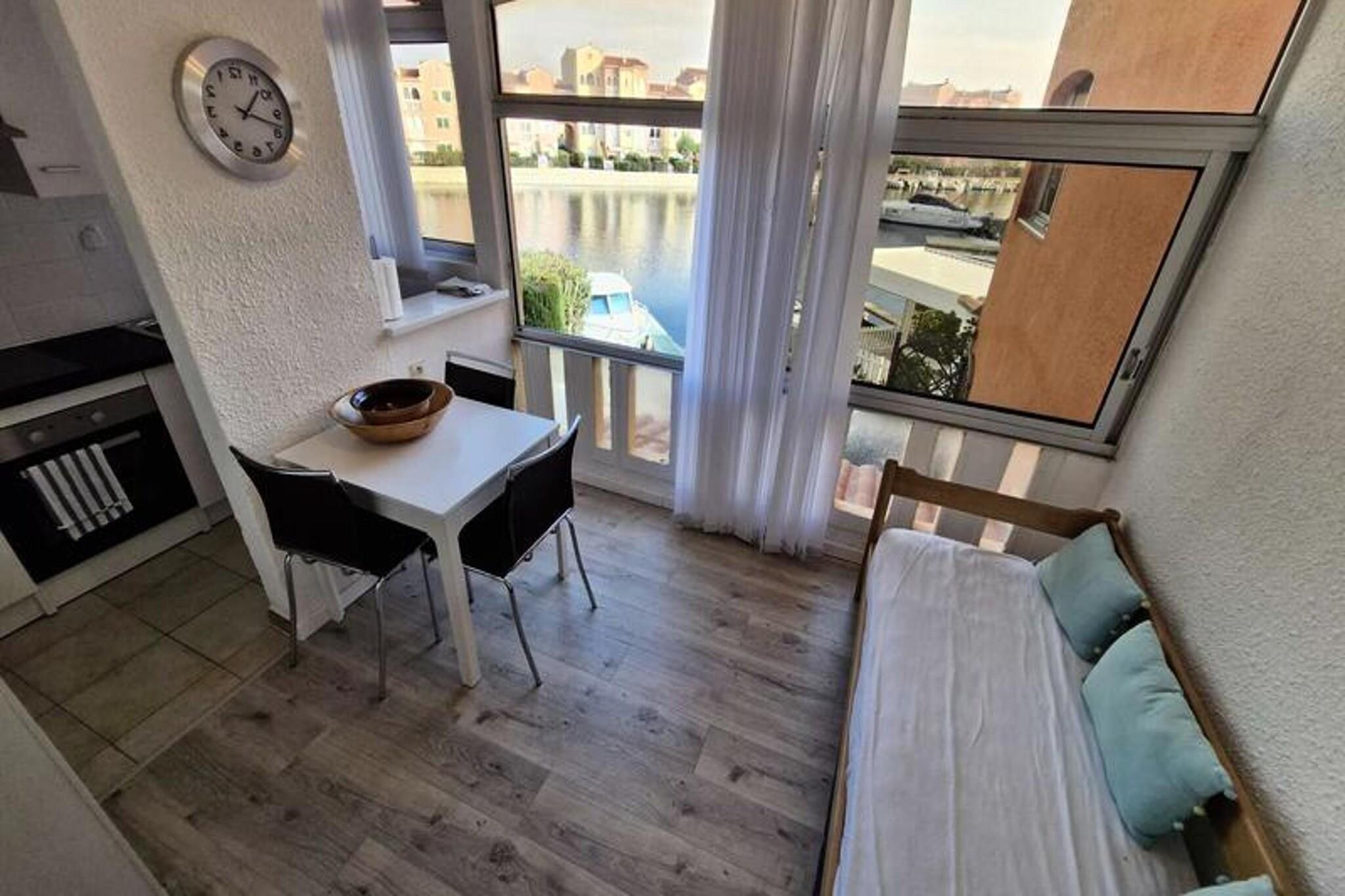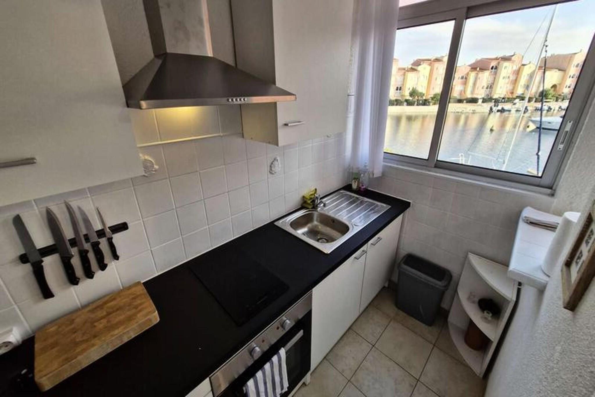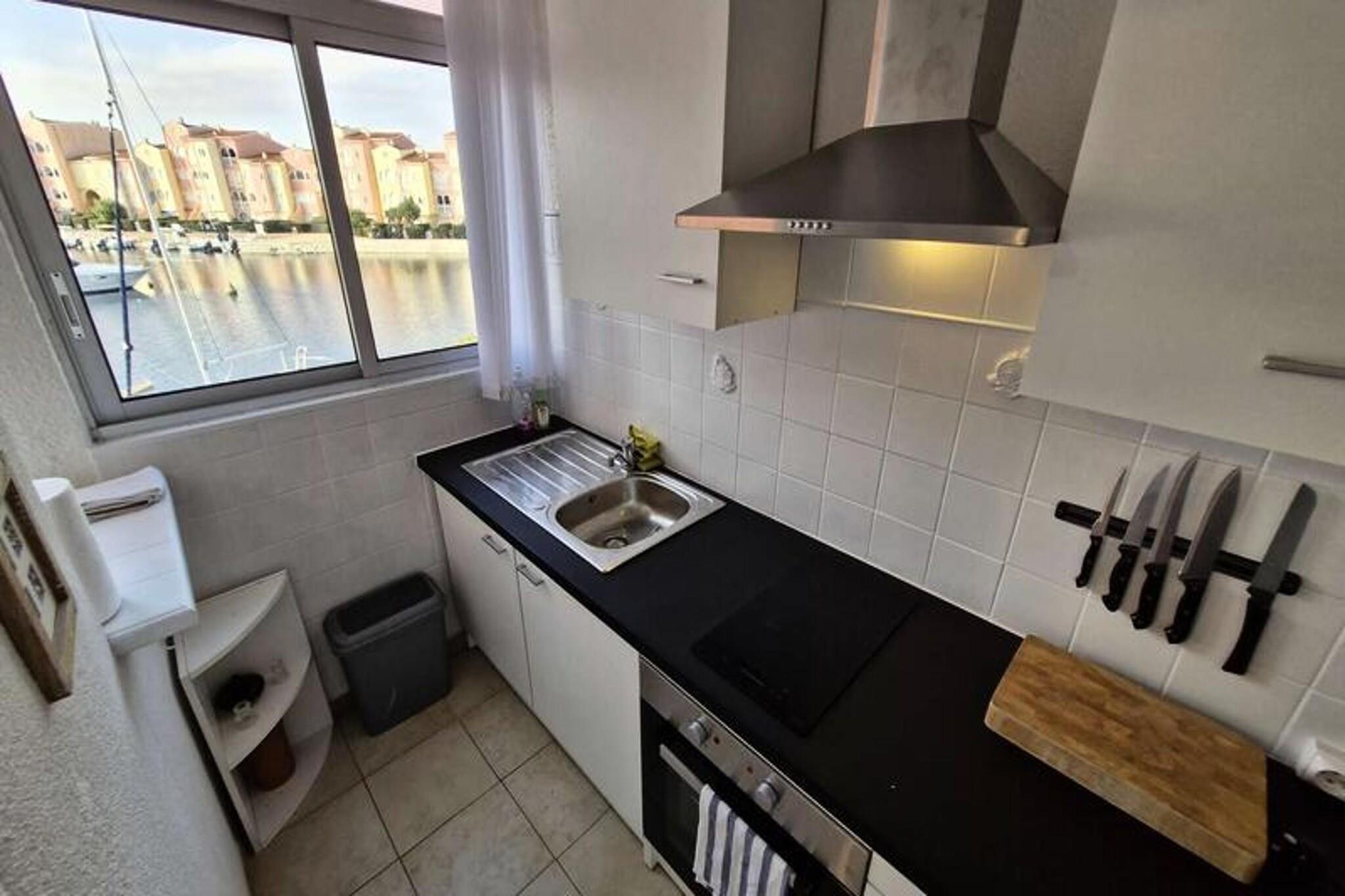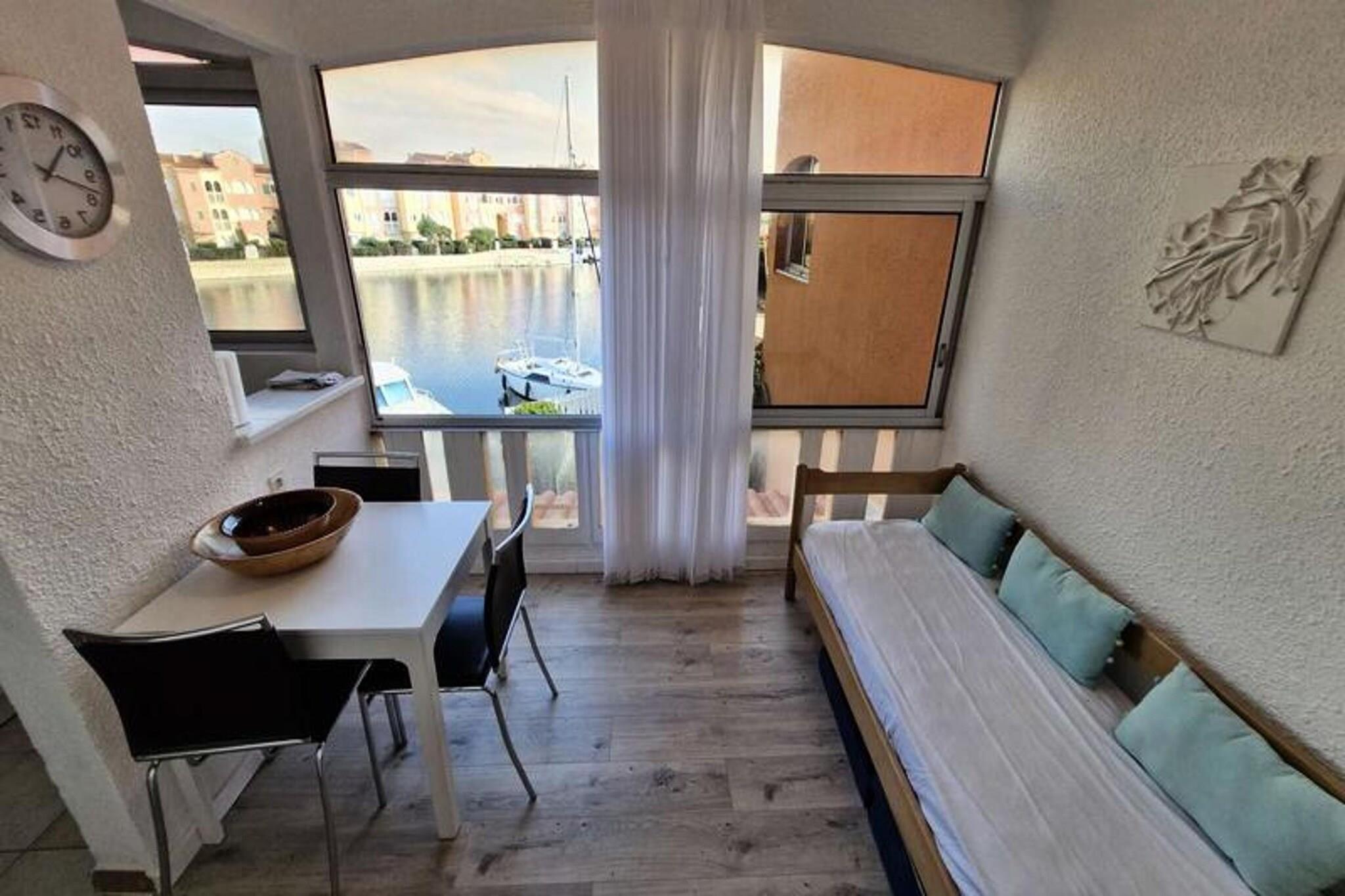 Denne studiolejlighed, designet til at rumme op til tre personer, tilbyder et komfortabelt tilflugtssted med en smuk udsigt over kanalen og den marine sø. Den har en stue med en sovesofa til 2 personer samt en loggia med en enkeltseng udelukkende til et barn. Lejligheden er udstyret med væsentlige faciliteter, herunder aircondition, keramisk kogeplade, ovn, køleskab med fryser og en vaskemaskine. Det ligger på første sal i en bolig uden elevator, hvilket giver en rolig og hyggelig atmosfære. Beliggende kun 2 km fra stranden, er ejendommen bekvemt tæt på lokale butikker, med et marked kun 300 meter væk. Gæsterne kan nemt udforske nærliggende caféer og restauranter, der tilbyder en række spisemuligheder. Placeringen giver også adgang til naturskønne udendørs aktiviteter langs kysten, perfekt for dem, der søger afslapning eller eventyr. Lejligheden er udstyret med et tekøkken til at tilberede måltider, og loggiaen tilbyder ekstra plads til at nyde omgivelserne. Badeværelset er udstyret med grundlæggende faciliteter, og den kollektive parkering ved boligen sikrer nem adgang. I de varmere måneder kan gæsterne nyde ejerlejlighedens swimmingpools, men bemærk venligst, at adgangen kan være begrænset på grund af vandbesparende foranstaltninger.